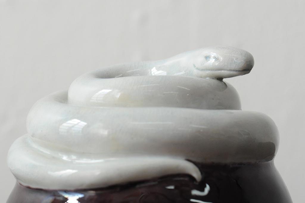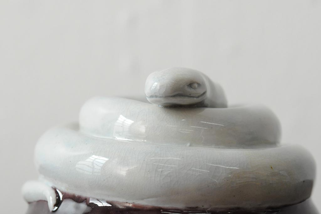 九谷焼 二代徳田八十吉 勇馬 干支蛇置物 丁巳(R-043763)