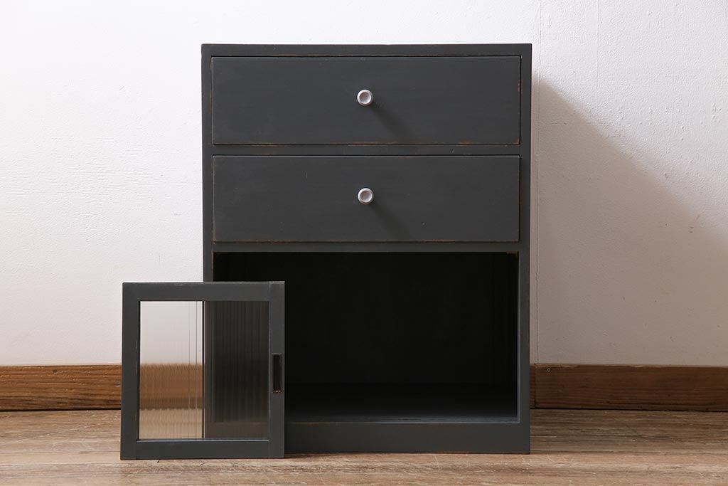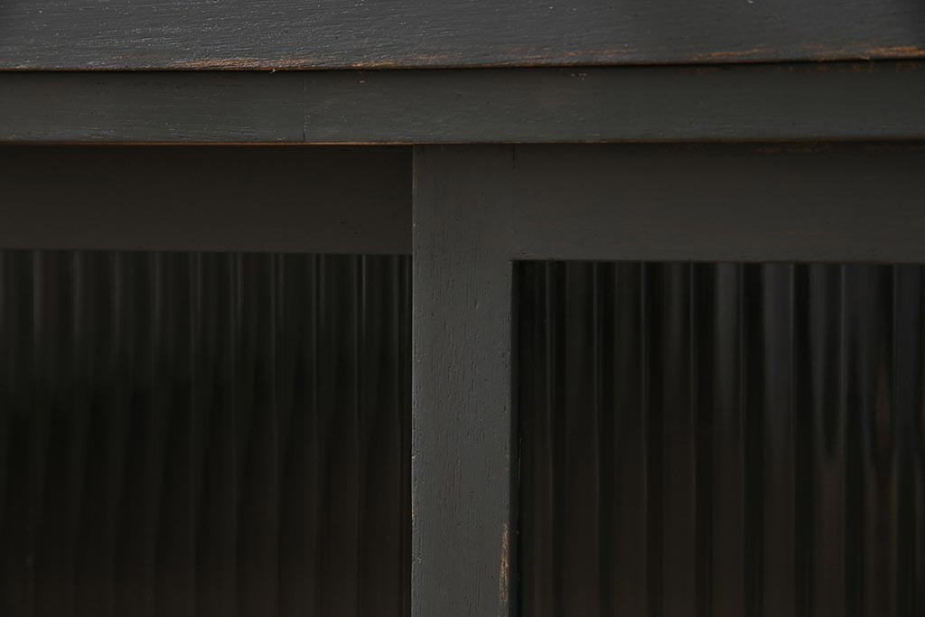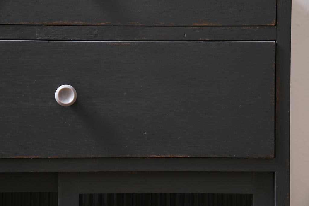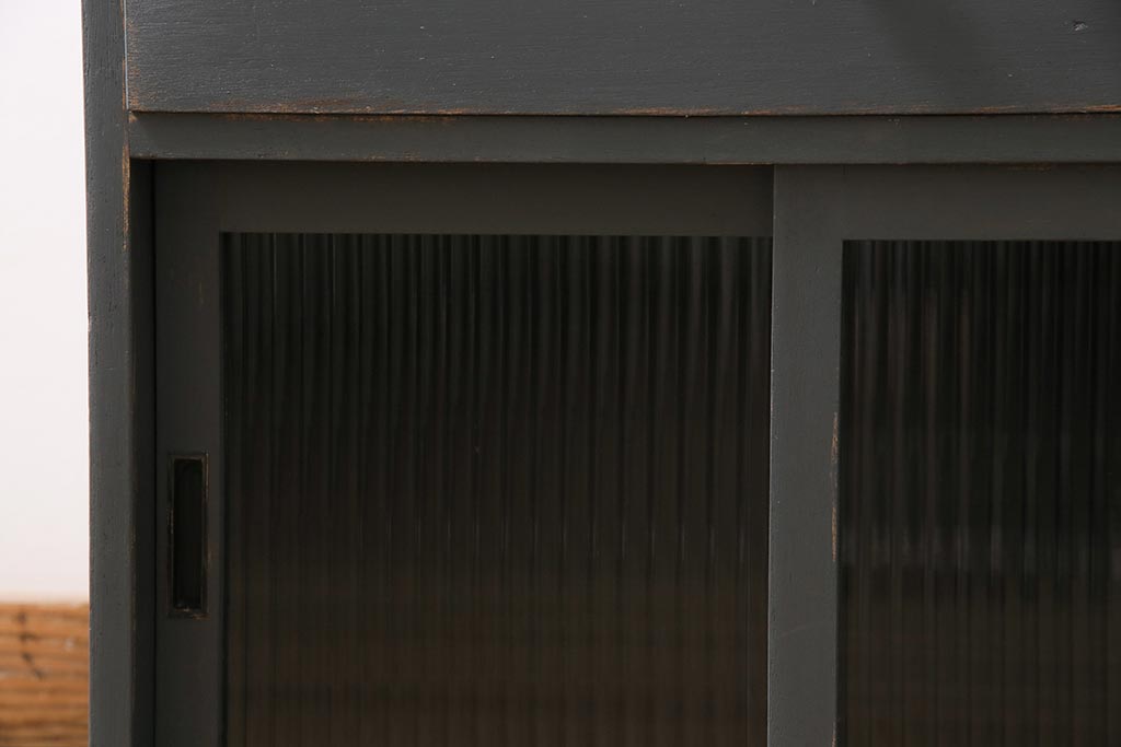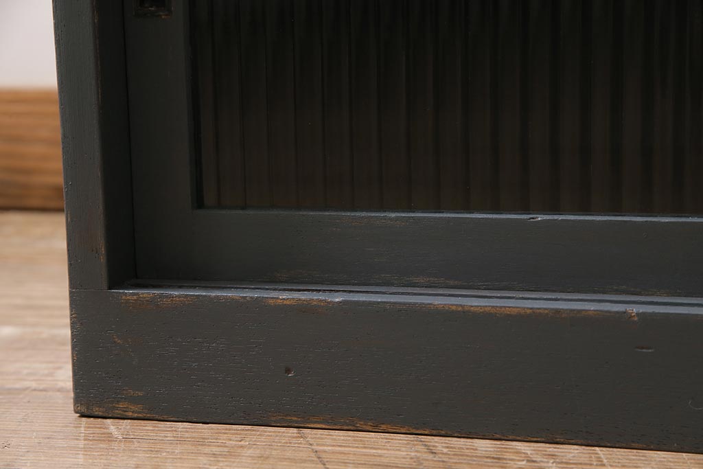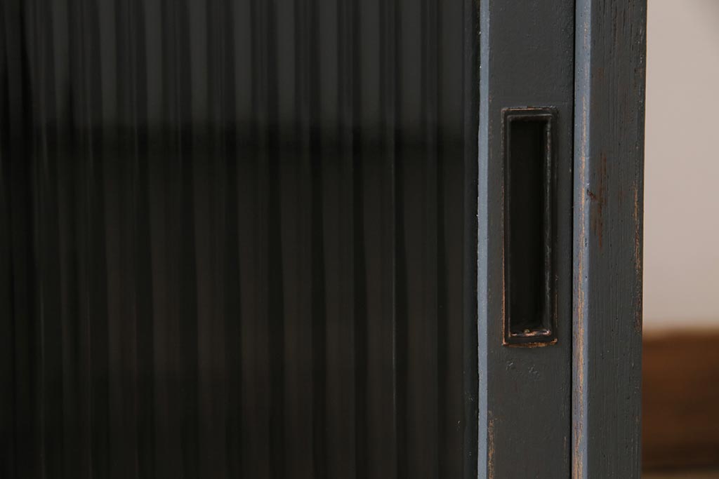 アンティーク家具 モールガラス入り シャビーなペイントがおしゃれなサイドキャビネット(サイドチェスト、戸棚)(R-043741)です。