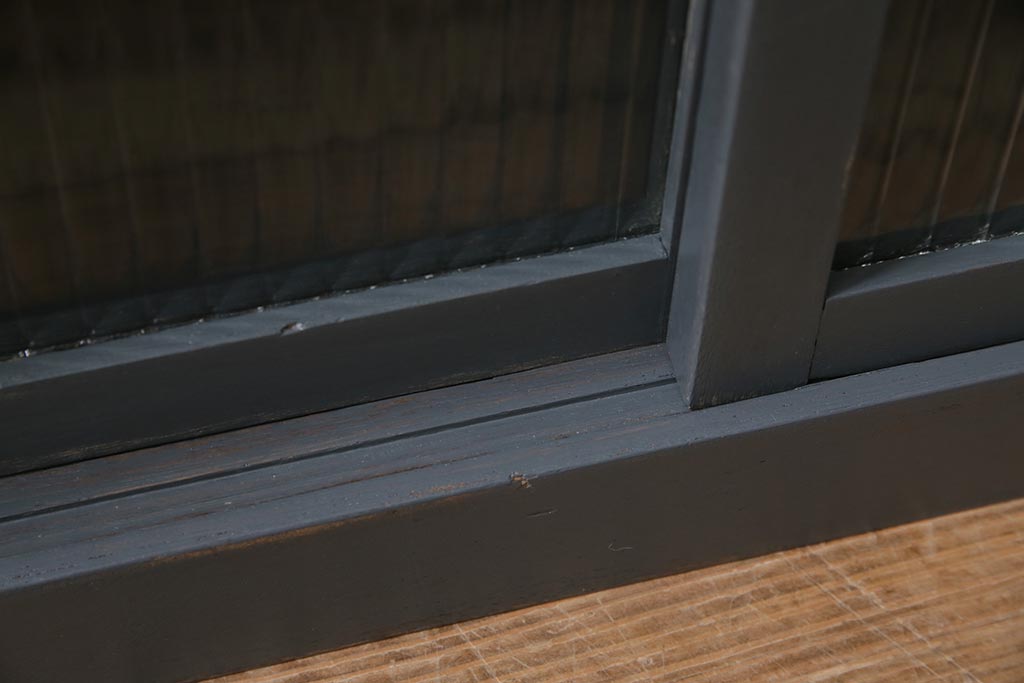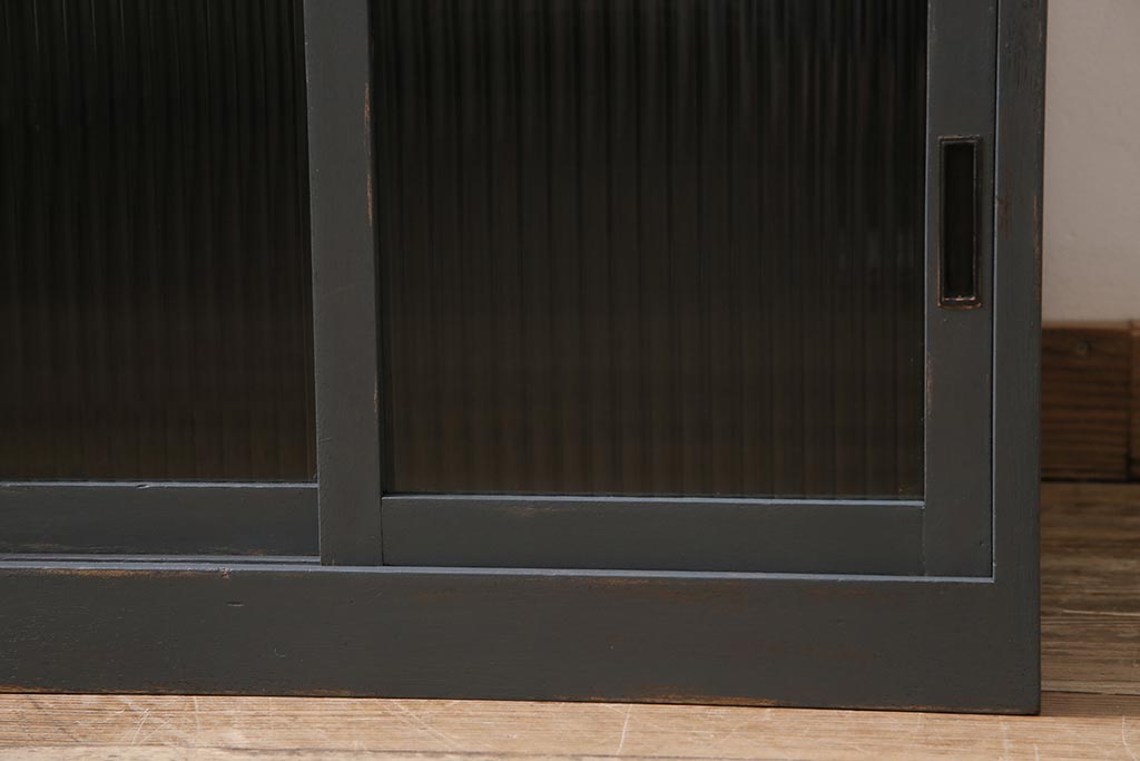 アンティーク家具 モールガラス入り シャビーなペイントがおしゃれなサイドキャビネット(サイドチェスト、戸棚)(R-043741)