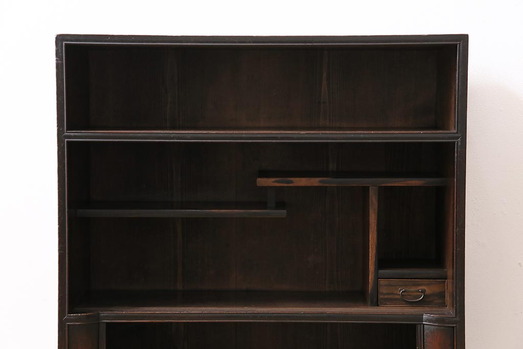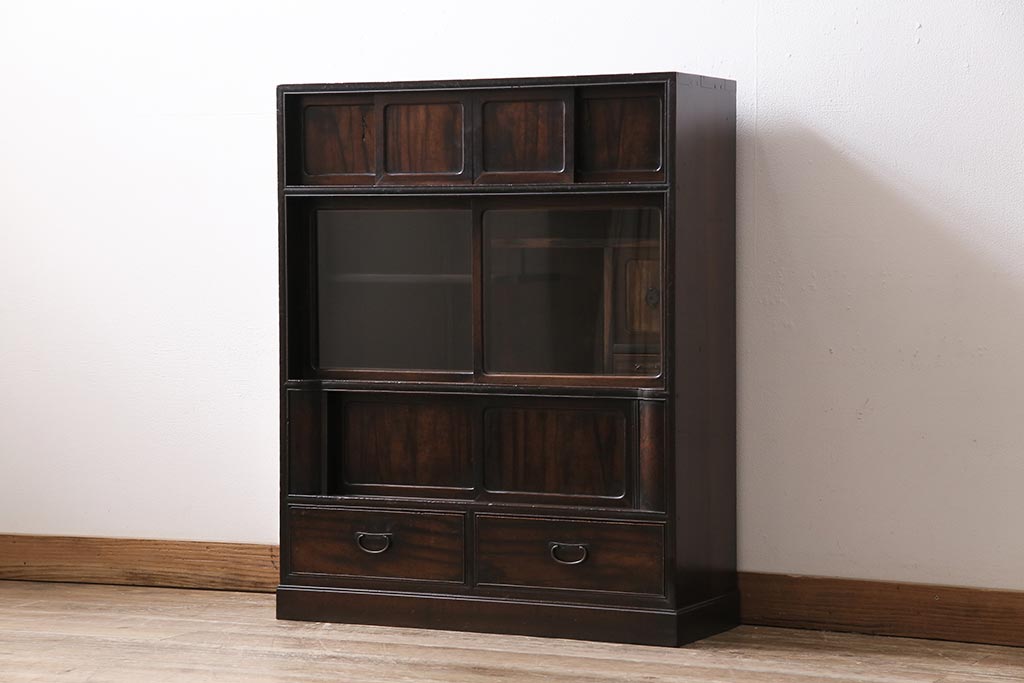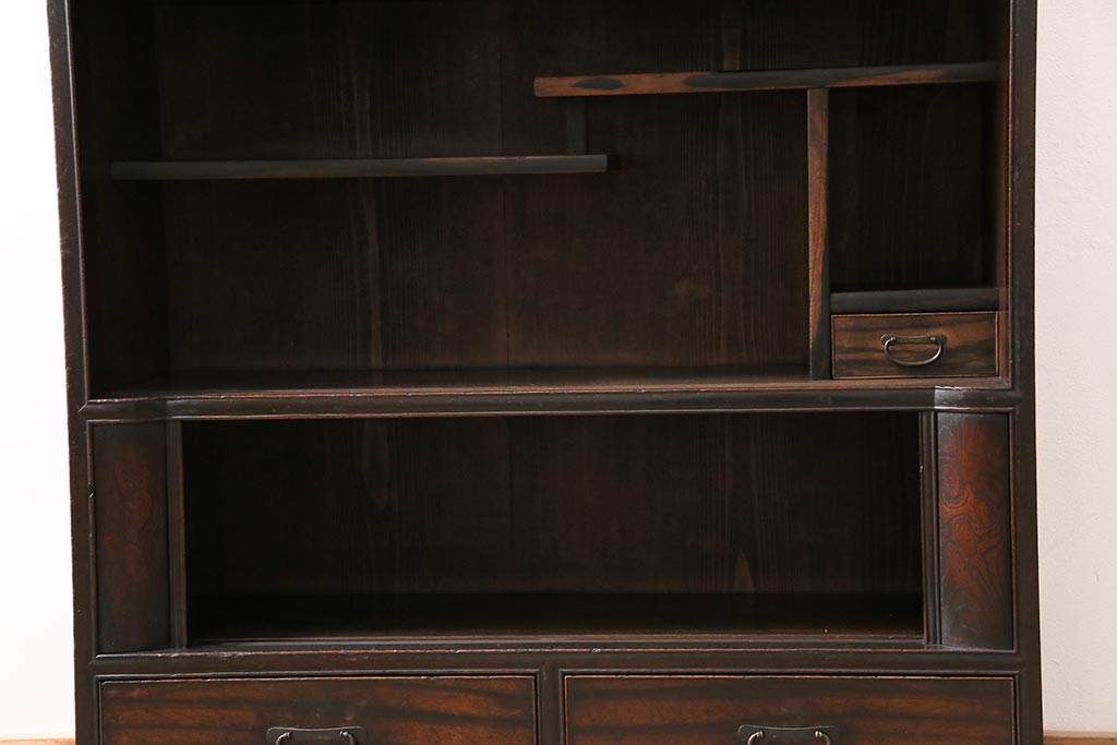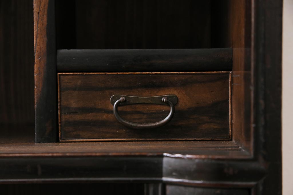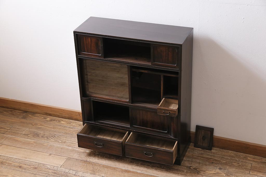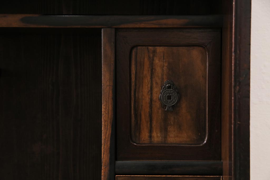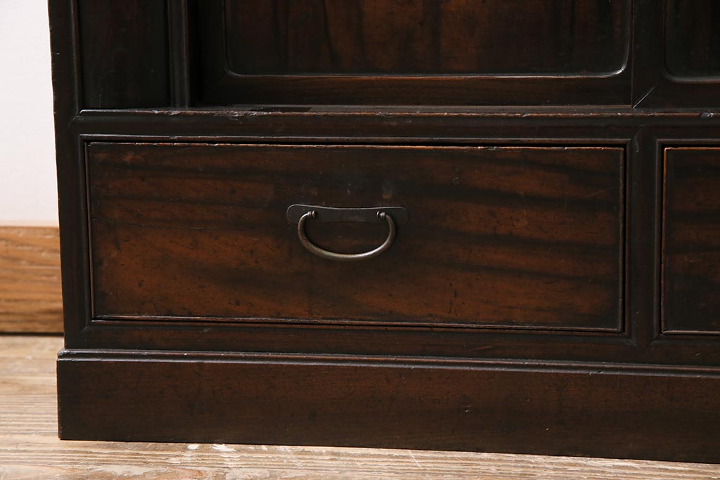 アンティーク家具 前面黒柿材 黒々とした杢目が魅力的な渋い趣の茶箪笥(茶棚、飾り棚、戸棚、収納棚)(R-043742)