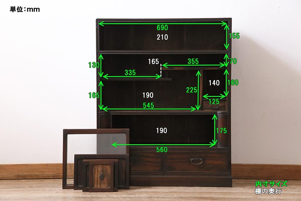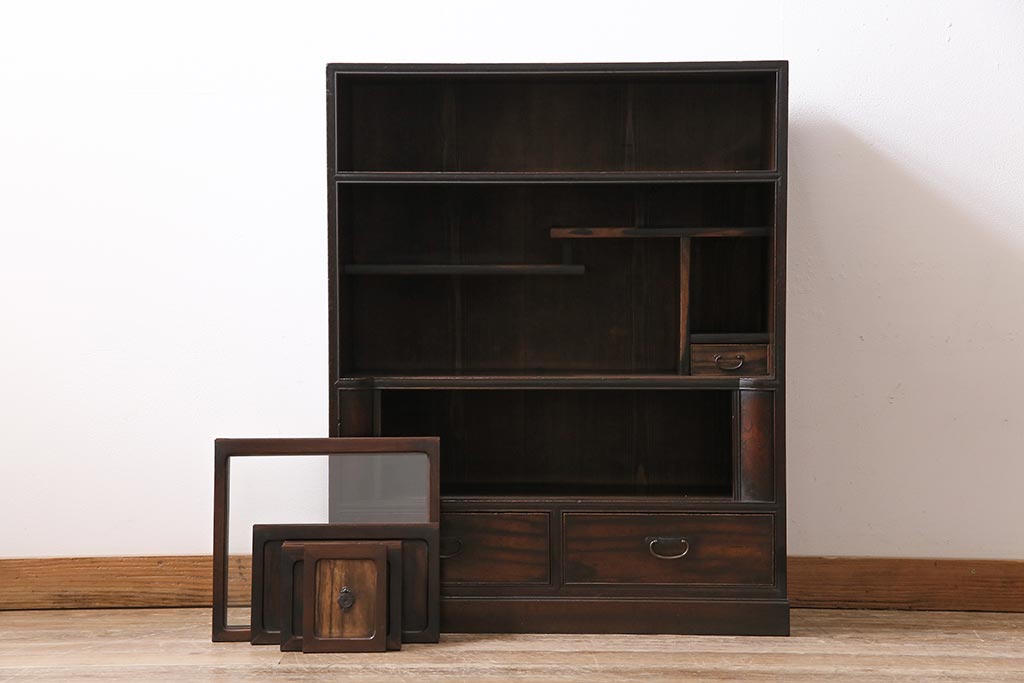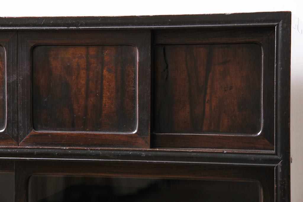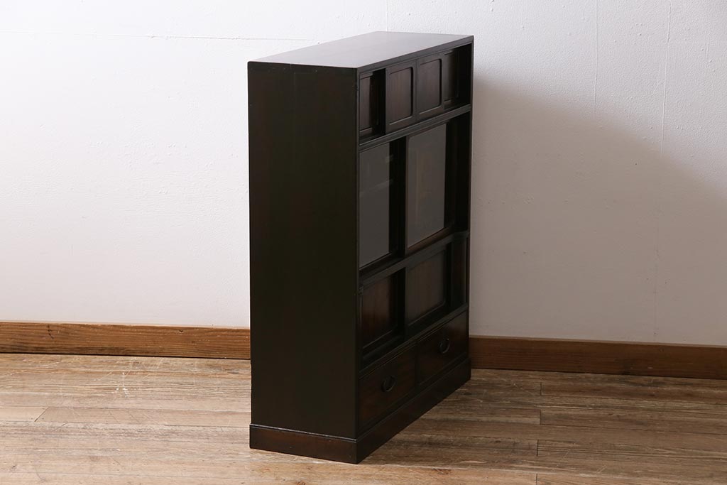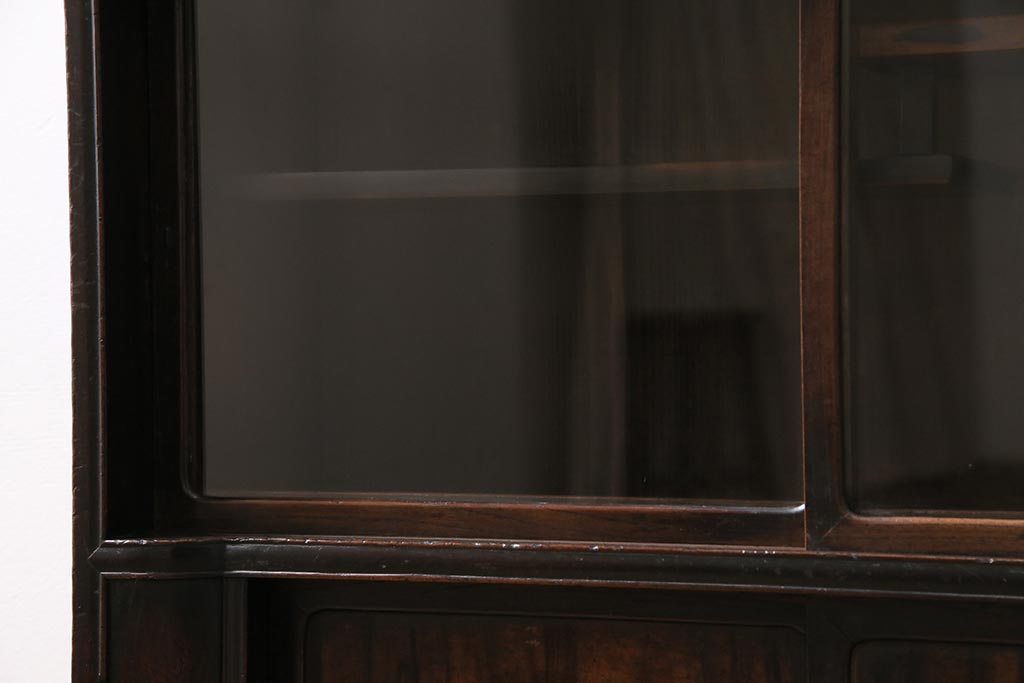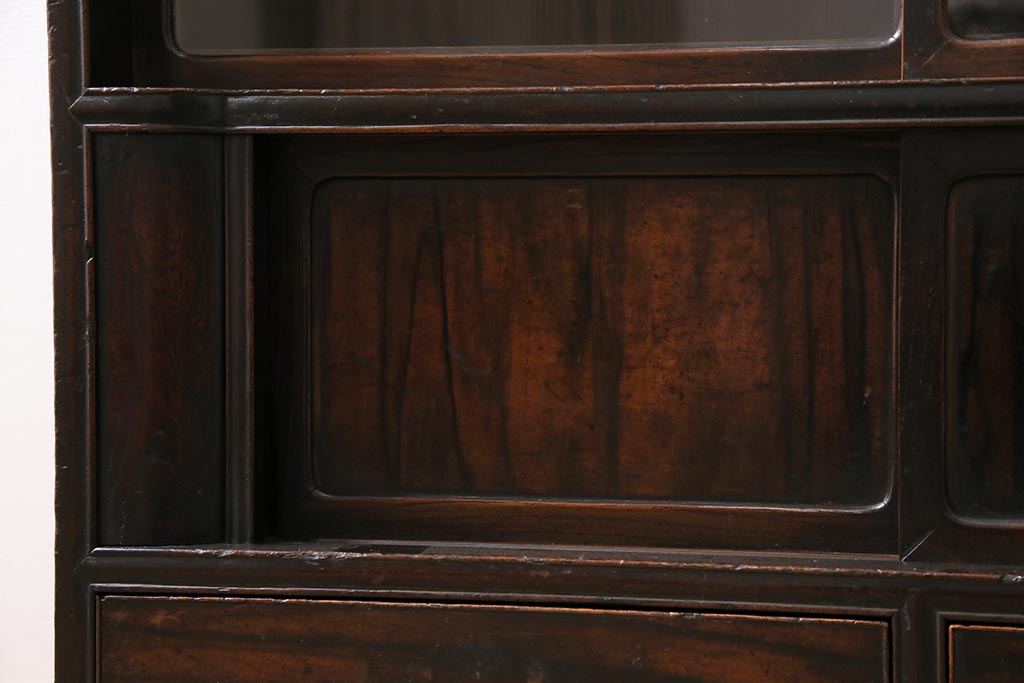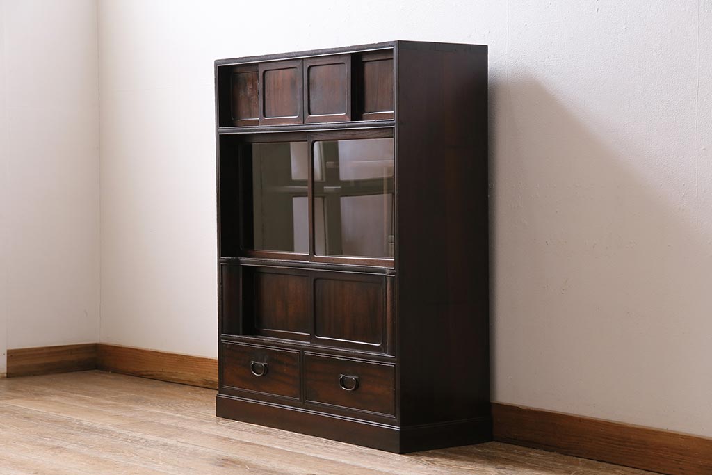 アンティーク家具 前面黒柿材 黒々とした杢目が魅力的な渋い趣の茶箪笥(茶棚、飾り棚、戸棚、収納棚)(R-043742)