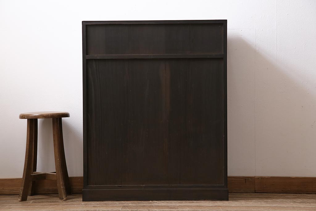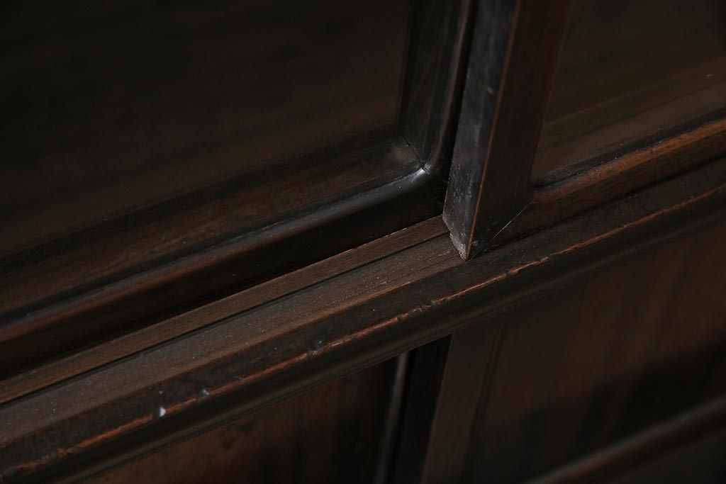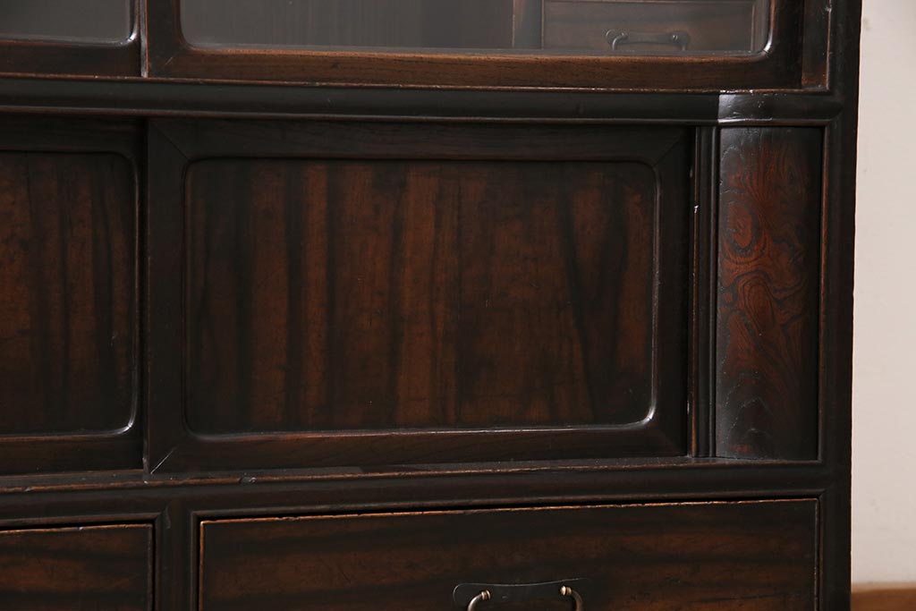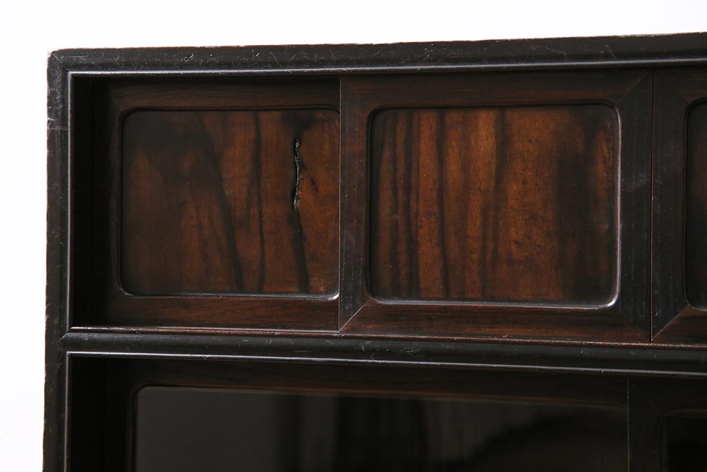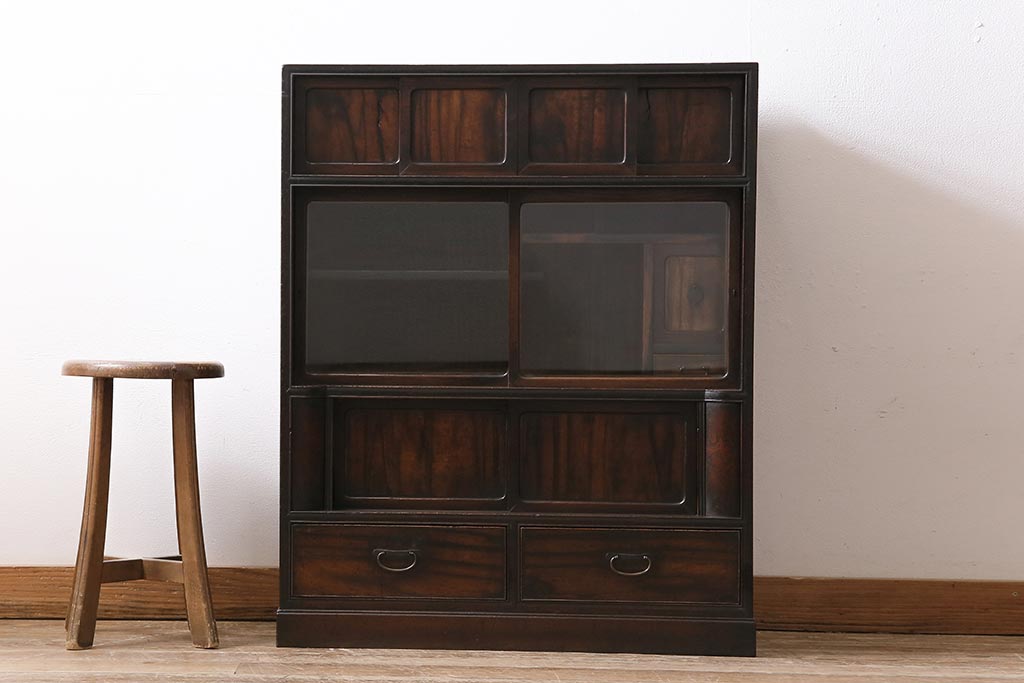 和箪笥> 茶箪笥・茶棚 > アンティーク家具 前面黒柿材 黒々とした杢目が魅力的な渋い趣の茶箪笥(茶棚、飾り棚、戸棚、収納棚)(R-043742)