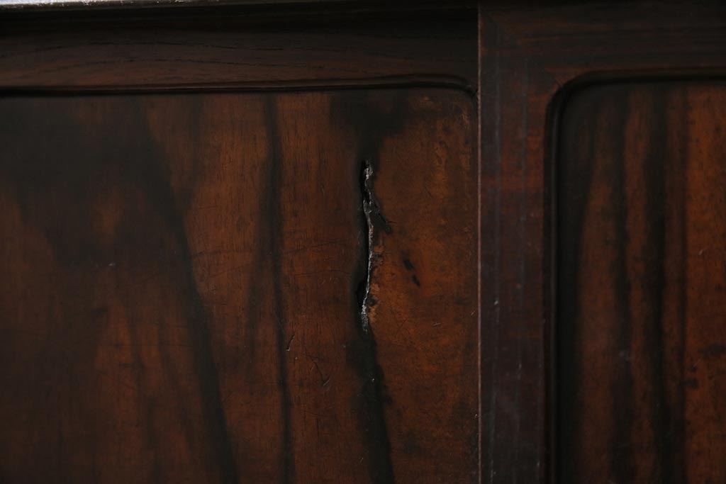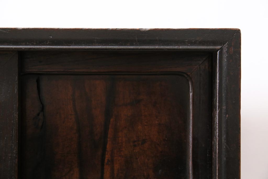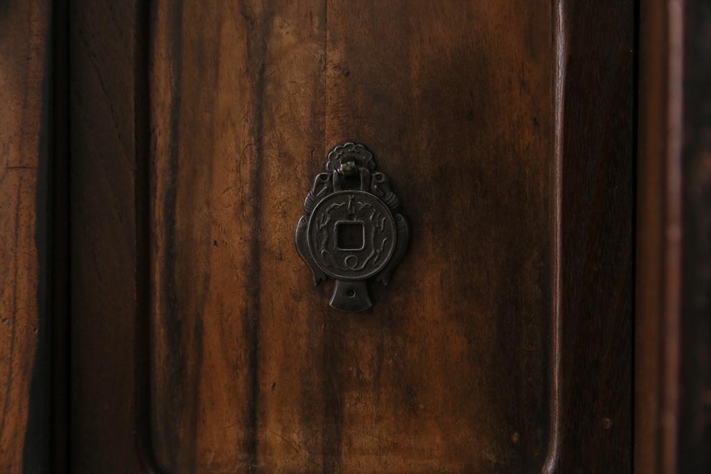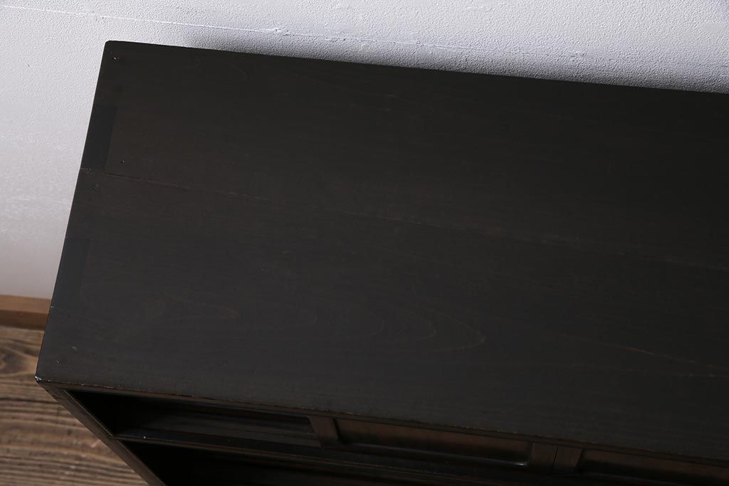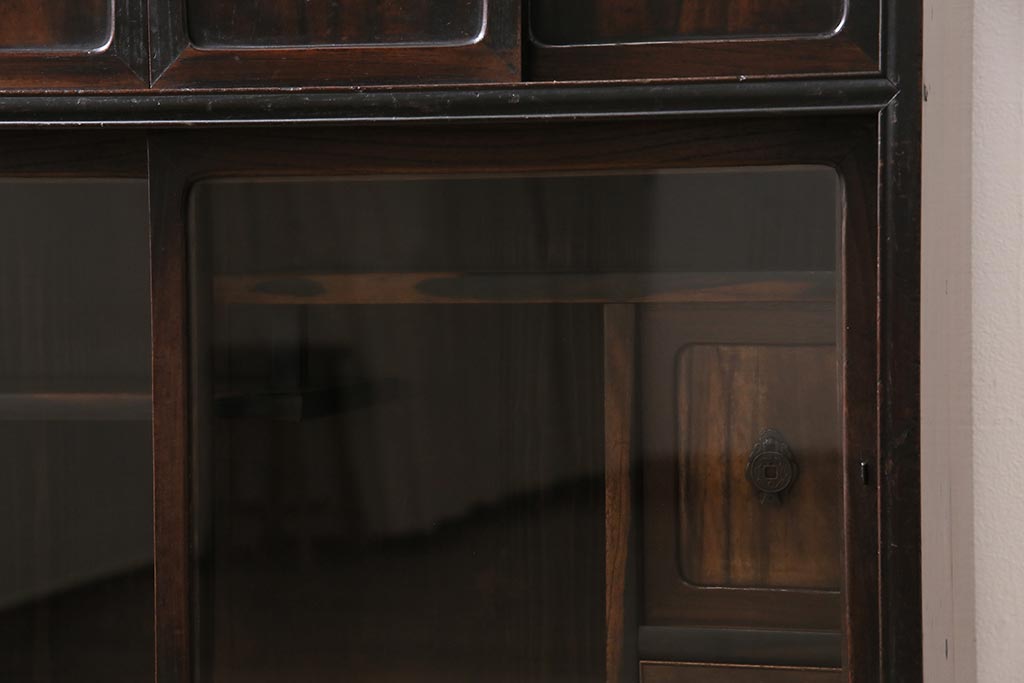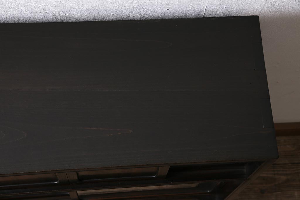 和箪笥> 茶箪笥・茶棚 > アンティーク家具 前面黒柿材 黒々とした杢目が魅力的な渋い趣の茶箪笥(茶棚、飾り棚、戸棚、収納棚)(R-043742)