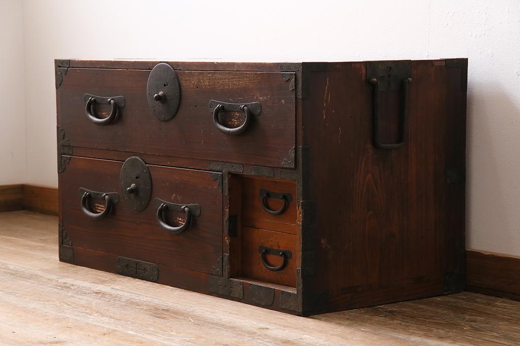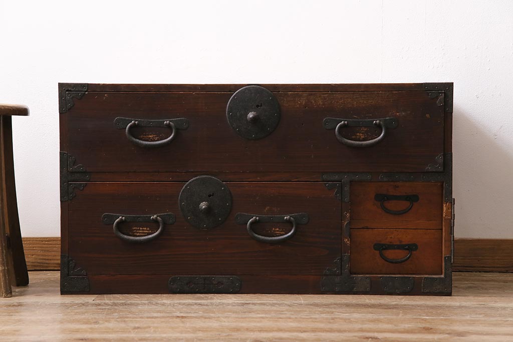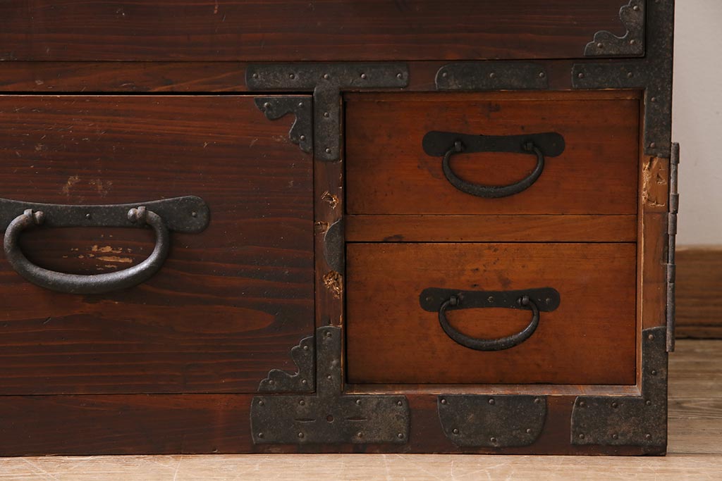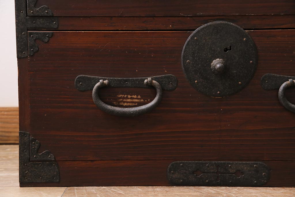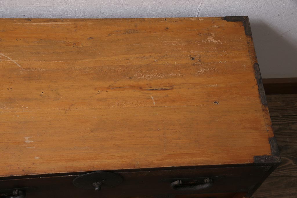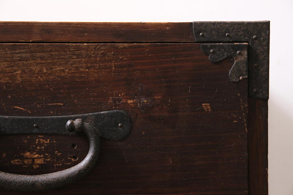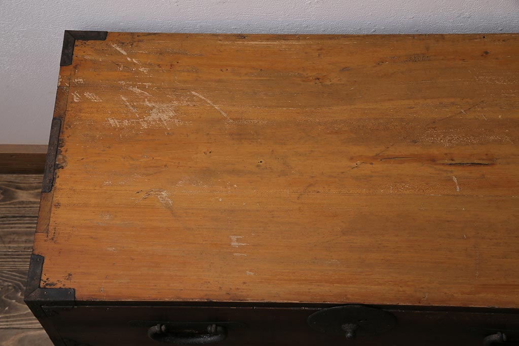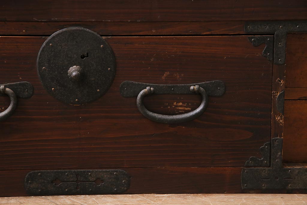 アンティーク家具 ヒノキ材 趣のある空間を演出する味わい深い衣装箪笥(箪笥ローボード、引き出し)(R-043793)