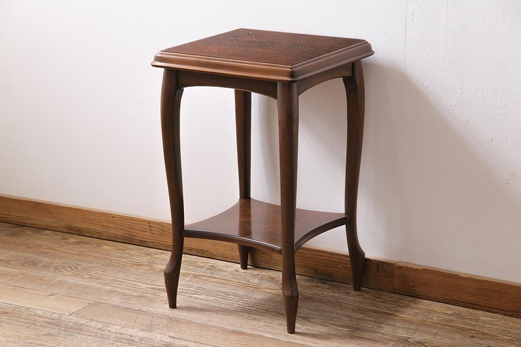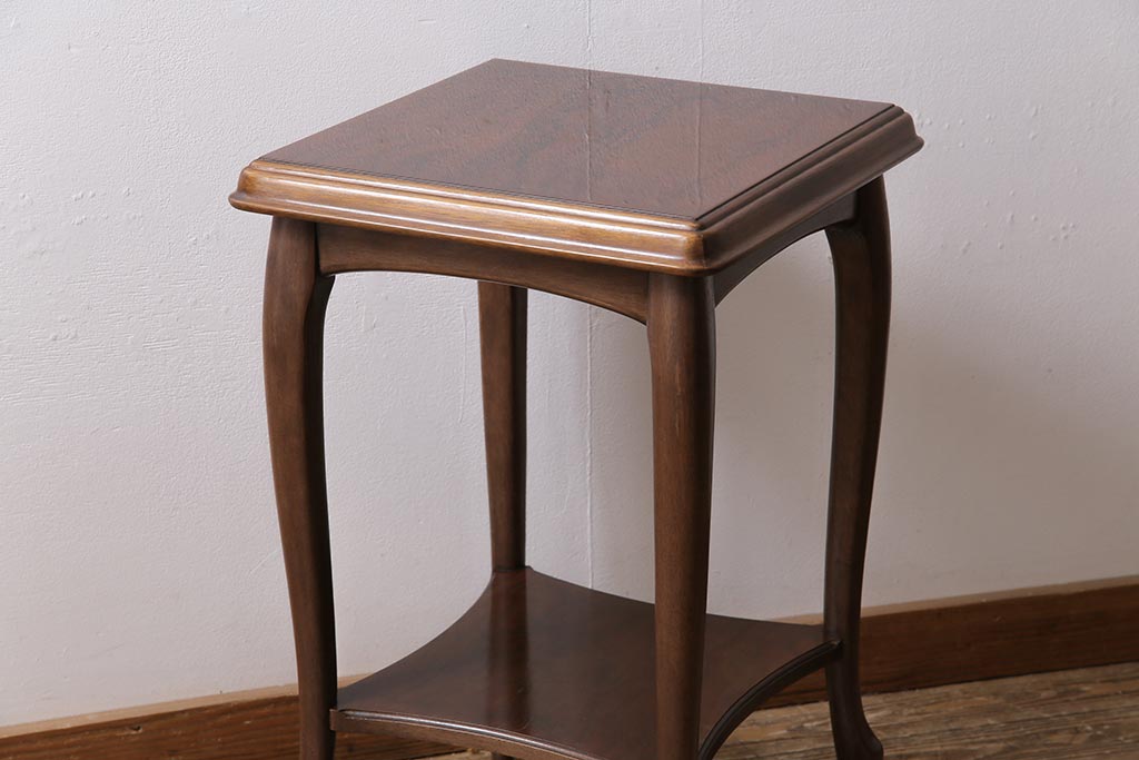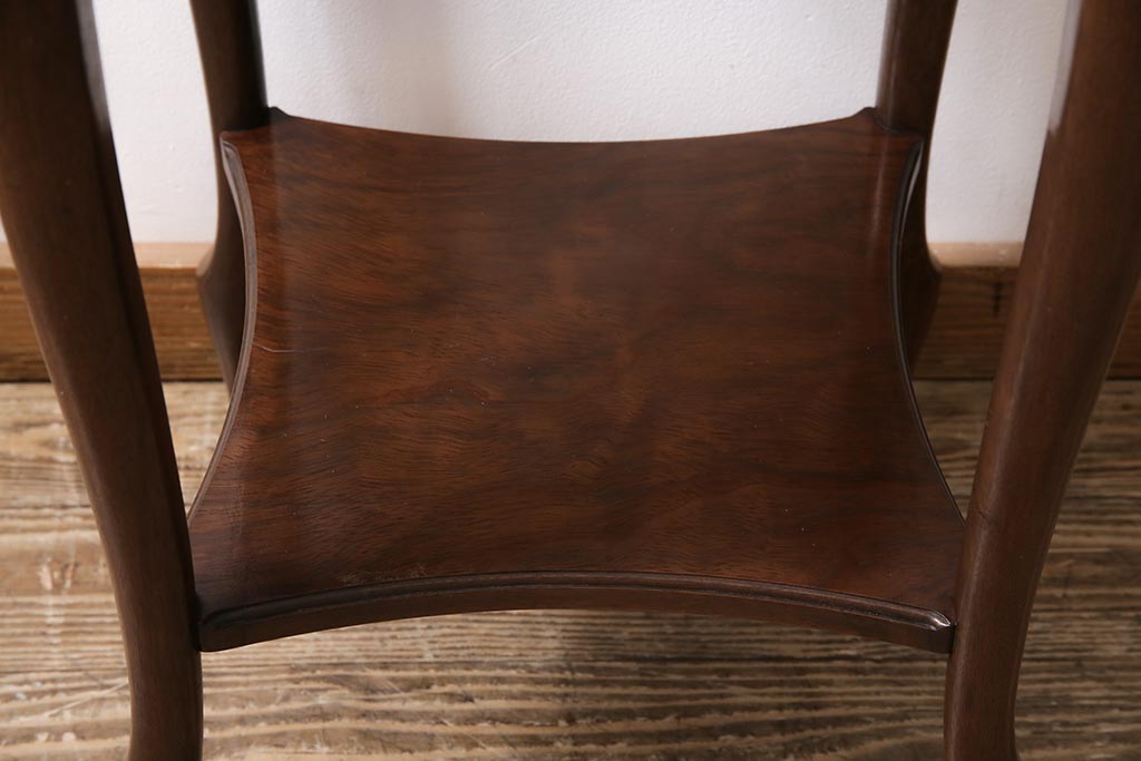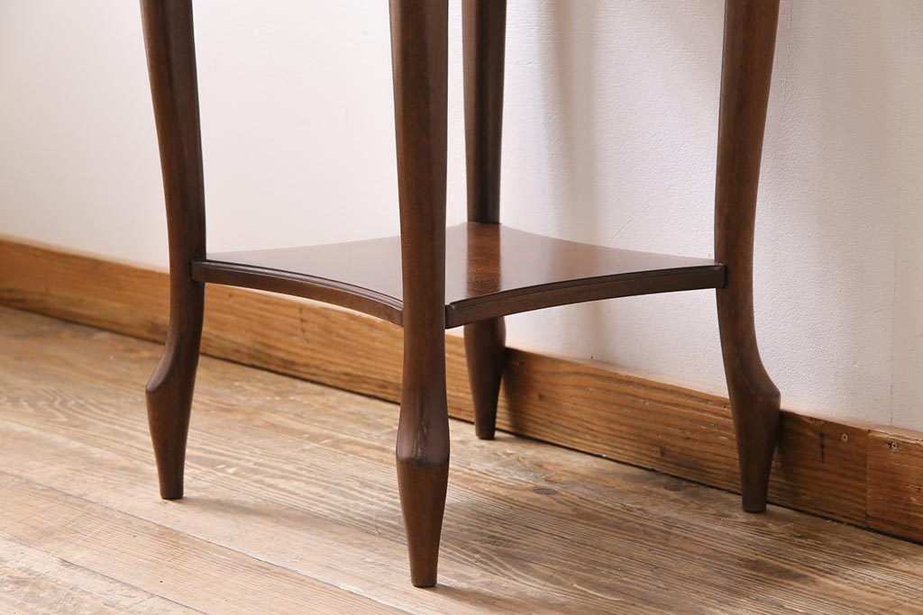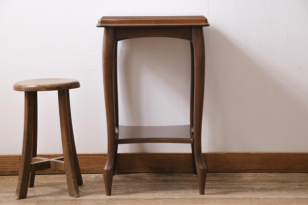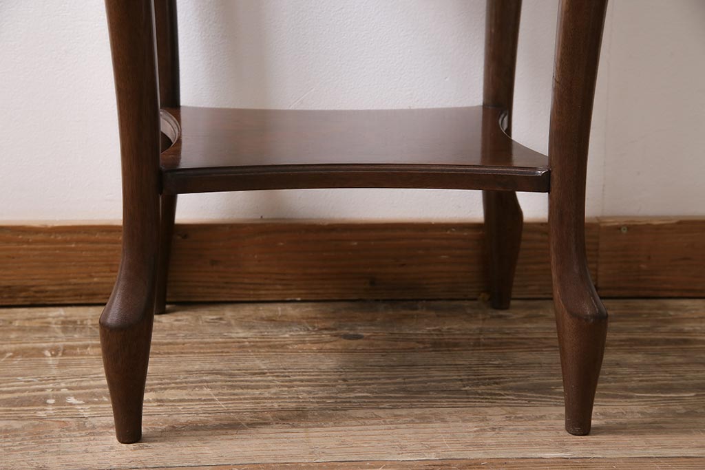 テーブル> サイドテーブル > ビンテージ家具 オールドマルニ maruni(マルニ木工) 棚付き 優雅な雰囲気漂う木製のサイドテーブル(花台)(R-043796)