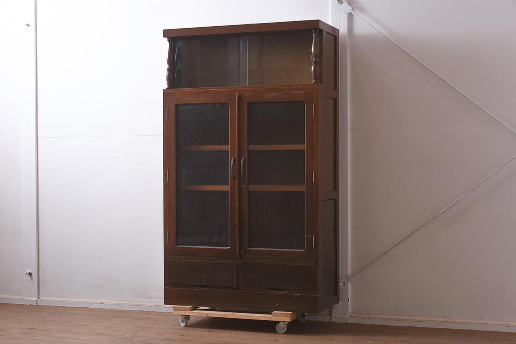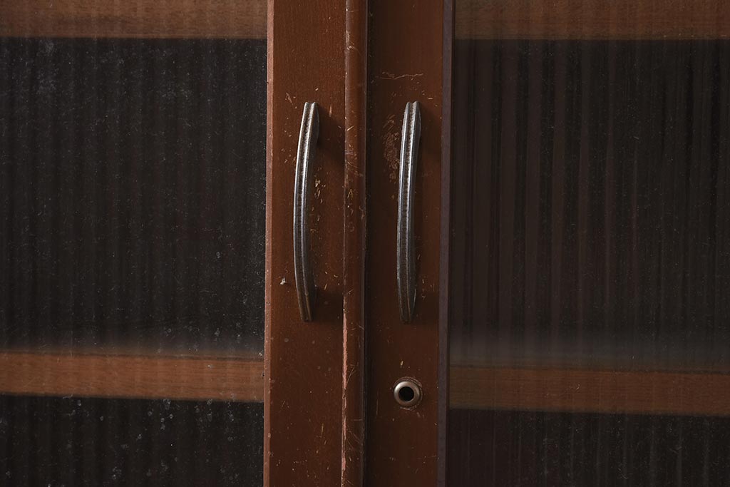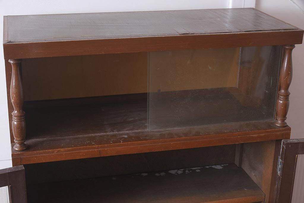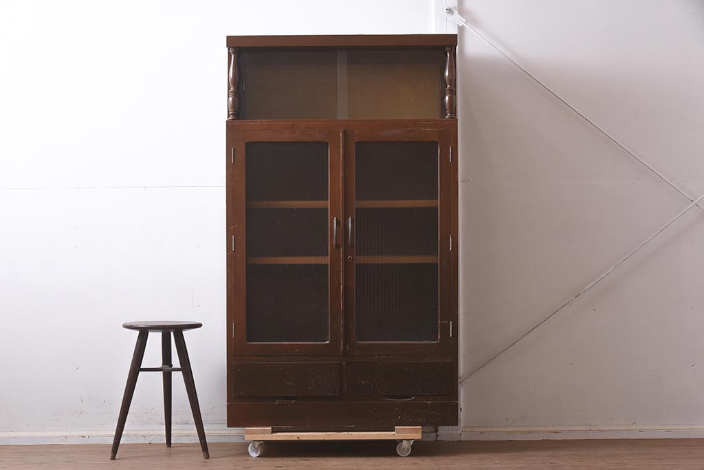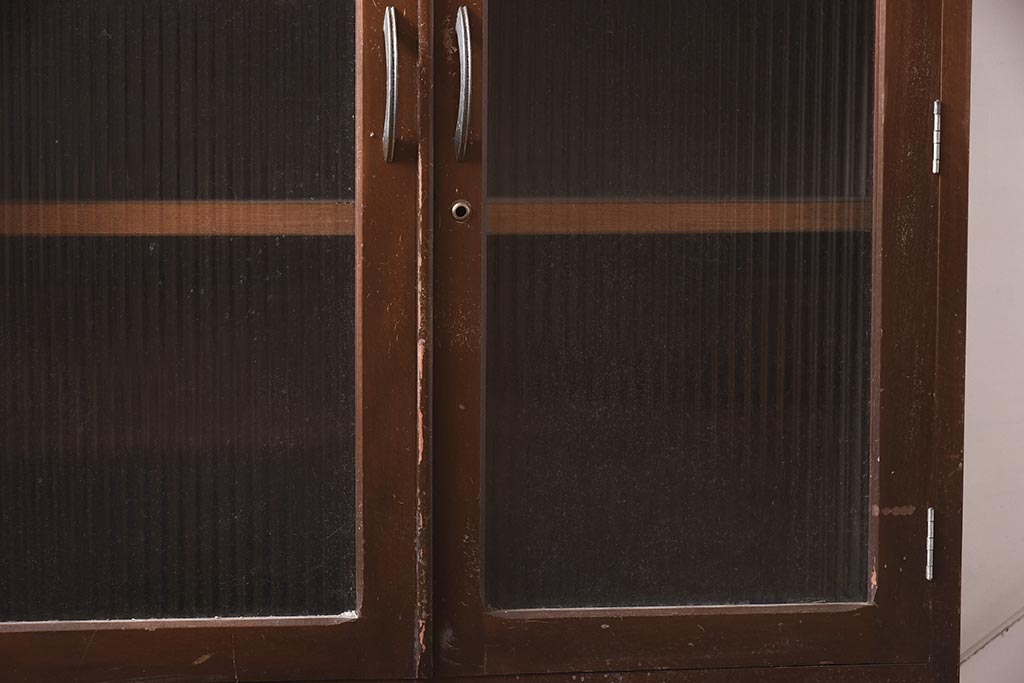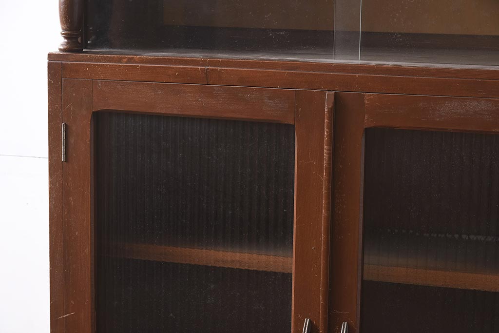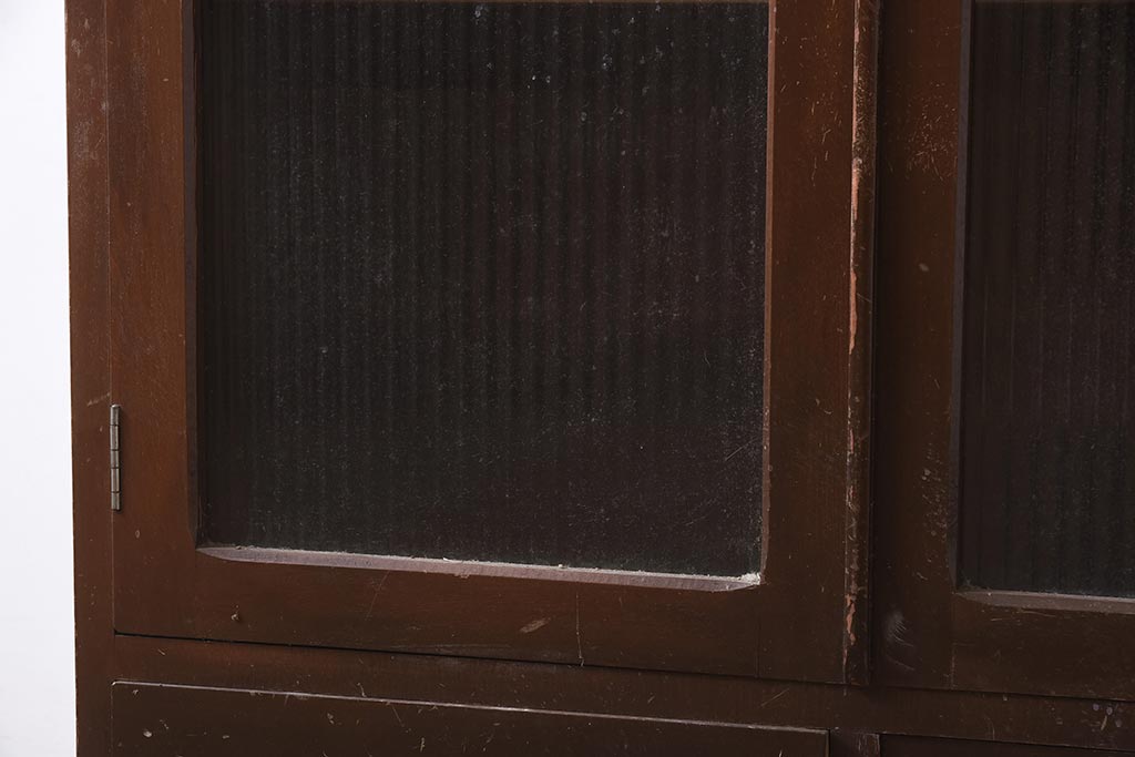 キャビネット・戸棚> 本箱 > レトロ家具 昭和中期 モールガラス入り 大振りで薄型サイズのレトロな本箱(キャビネット、収納棚、戸棚)(R-043639)