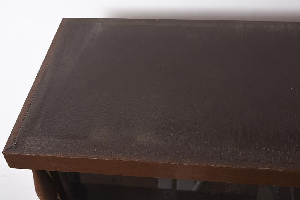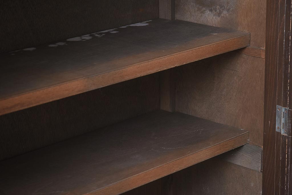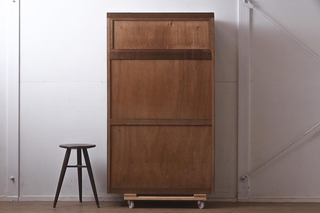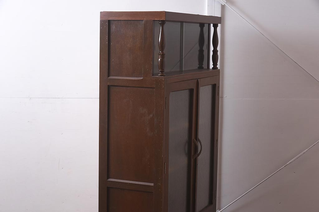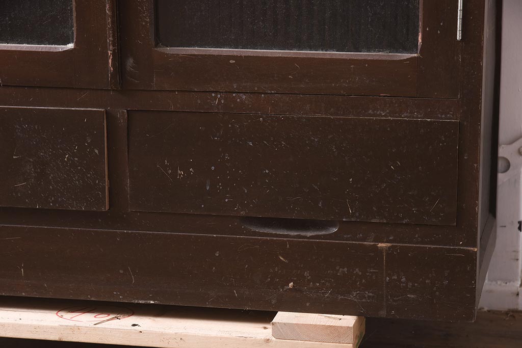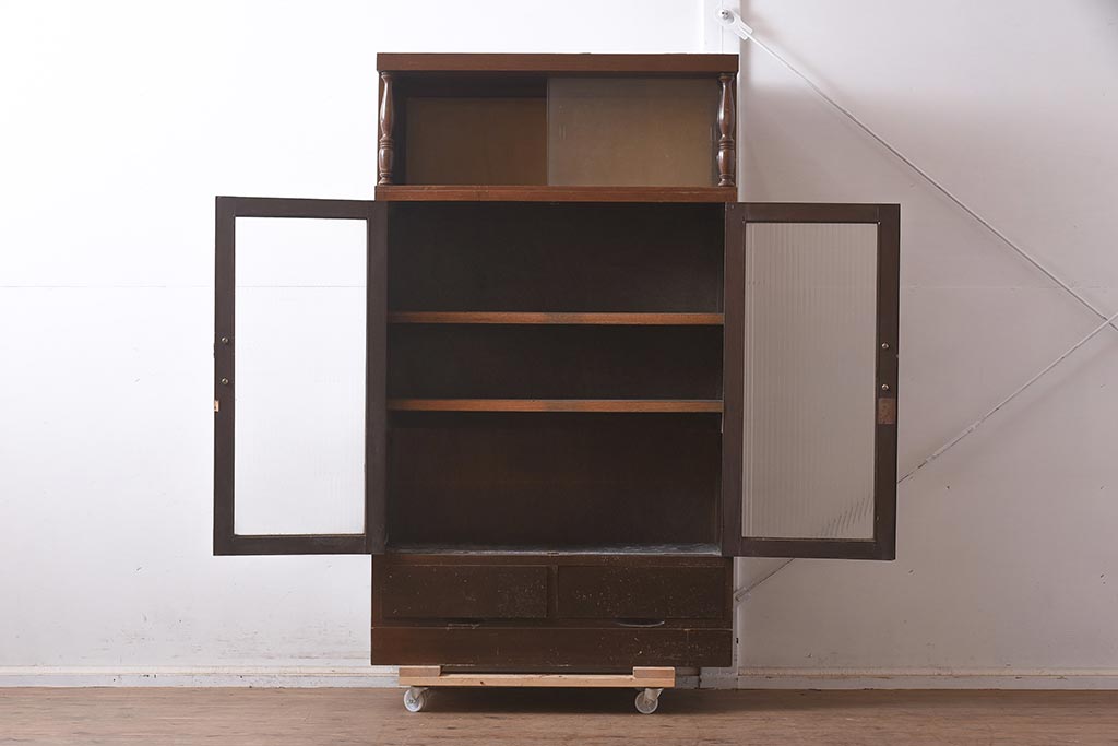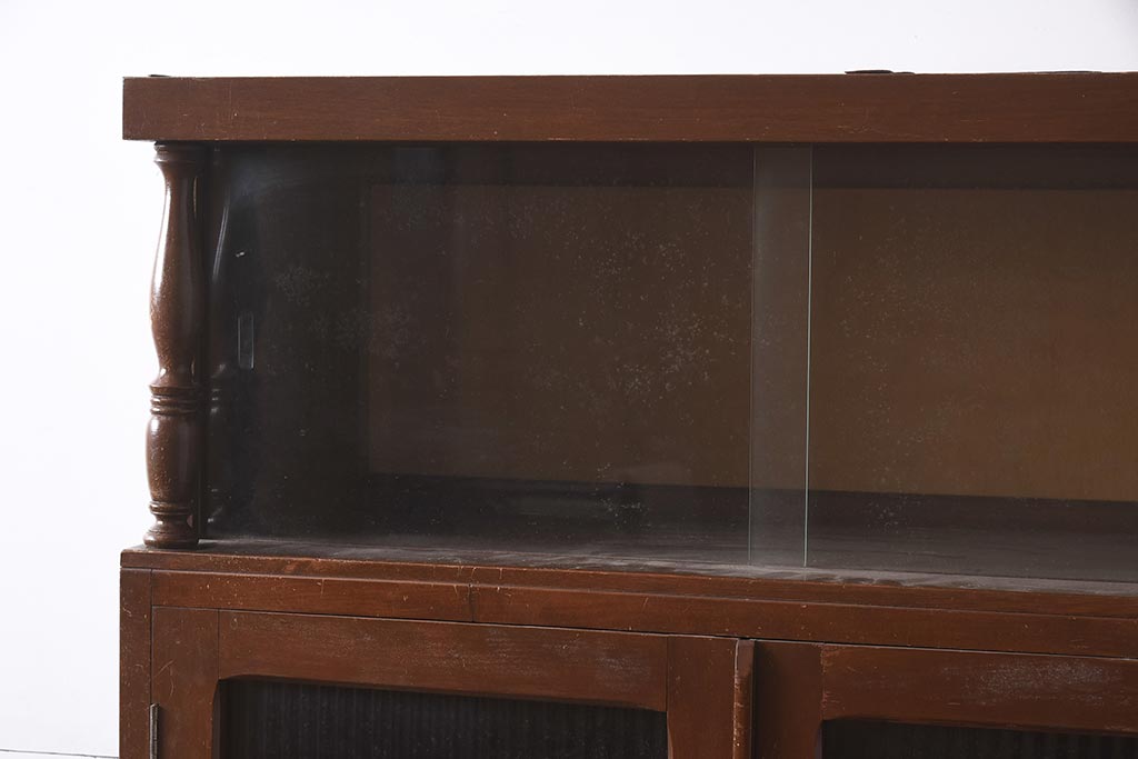キャビネット・戸棚> 本箱 > レトロ家具 昭和中期 モールガラス入り 大振りで薄型サイズのレトロな本箱(キャビネット、収納棚、戸棚)(R-043639)