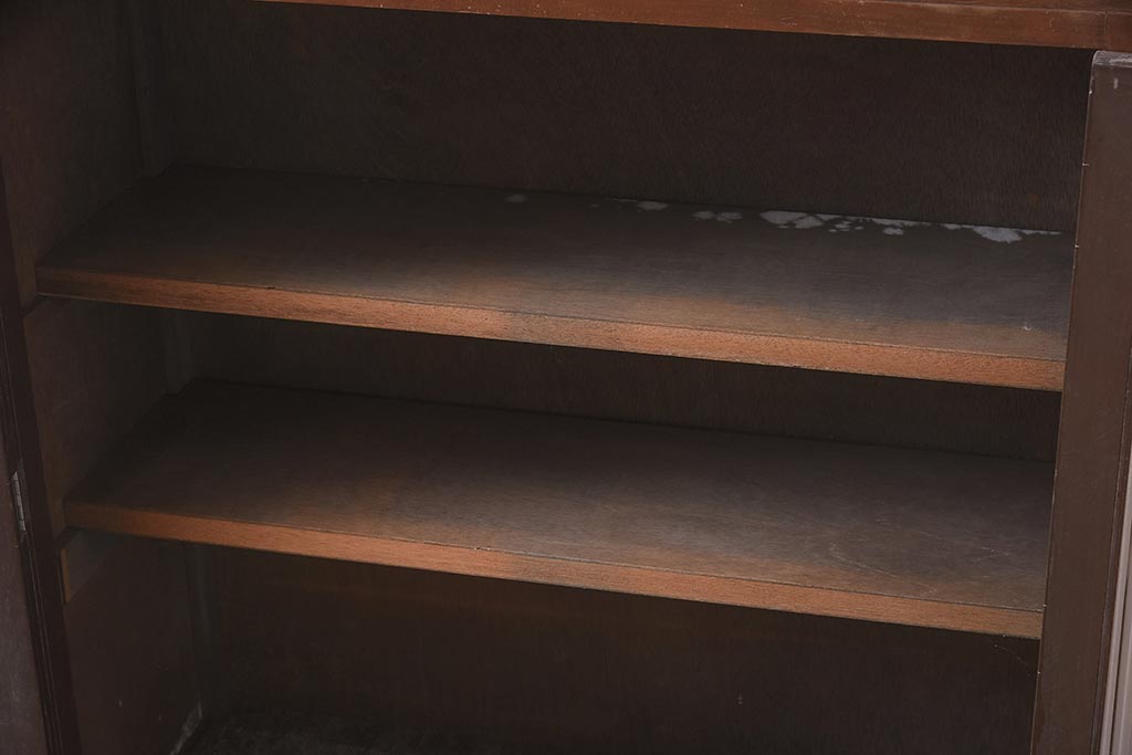 レトロ家具 昭和中期 モールガラス入り 大振りで薄型サイズのレトロな本箱(キャビネット、収納棚、戸棚)(R-043639)です。