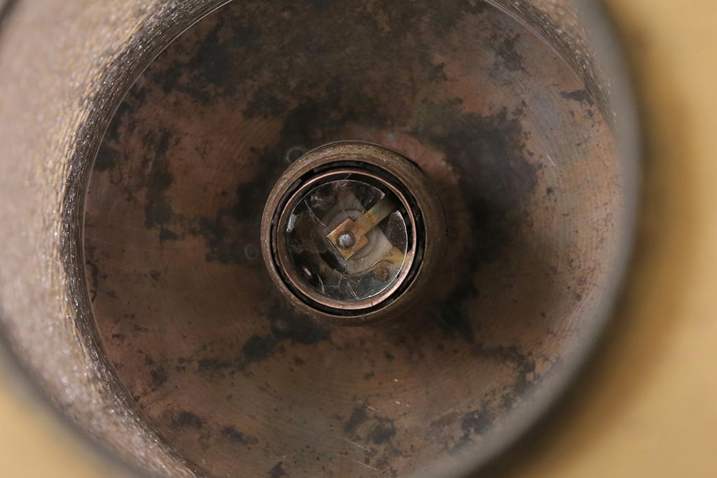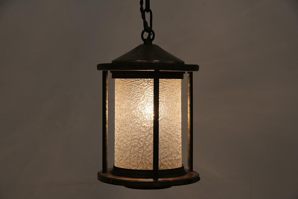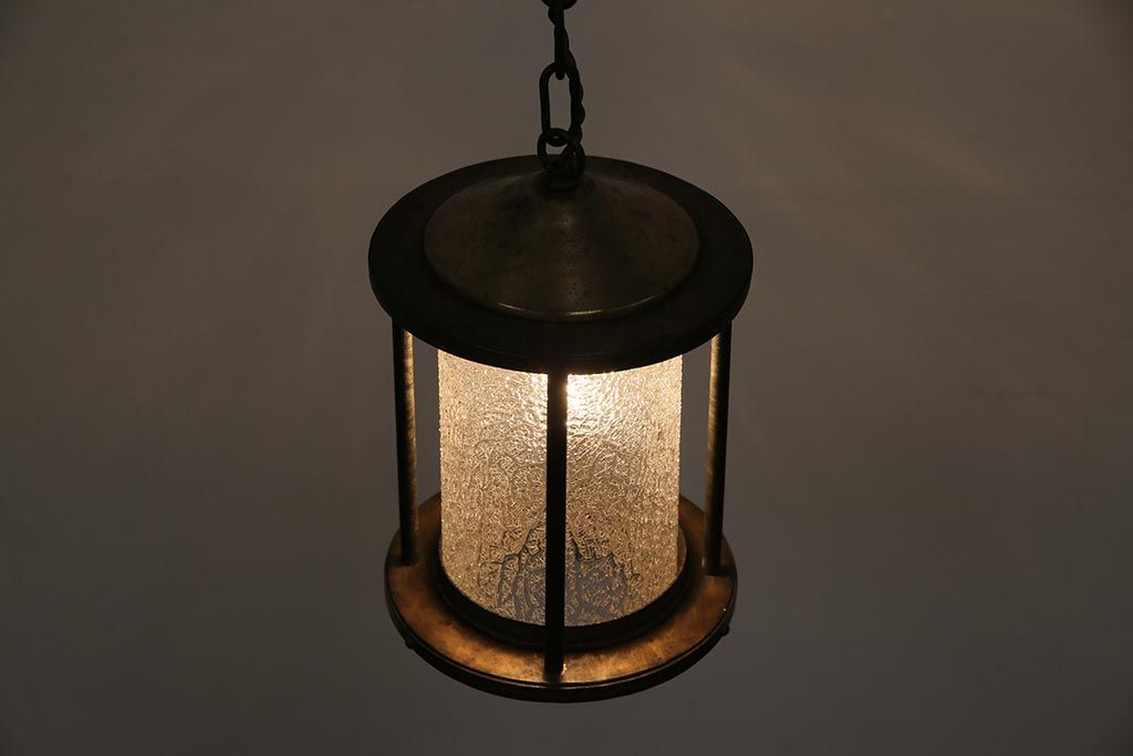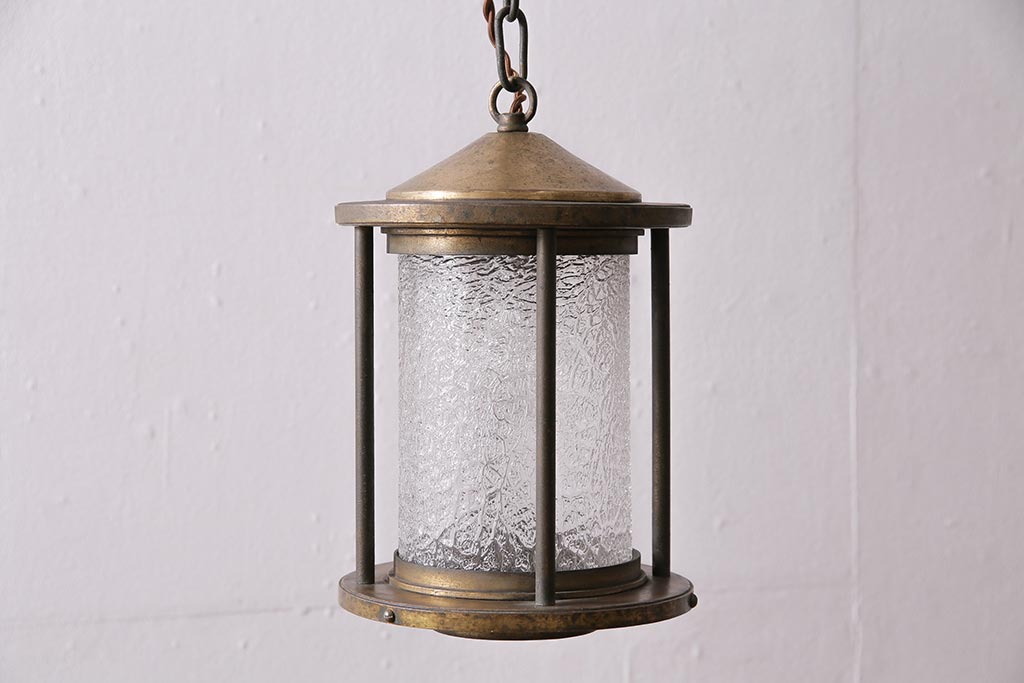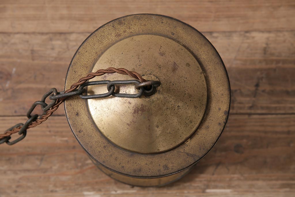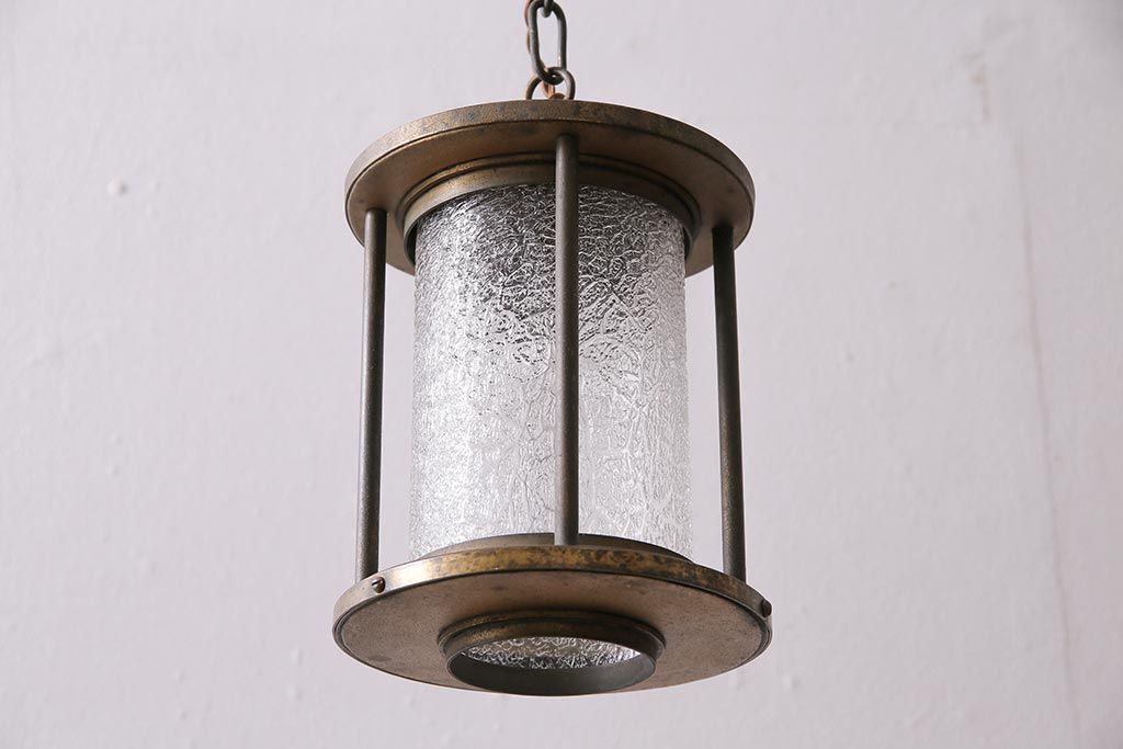 照明・ランプ> ペンダントライト > アンティーク照明 和製アンティーク 真鍮製 円柱 シャビーな質感がお洒落なランタン型ペンダントライト(吊り下げ照明、天井照明)(R-043737)
