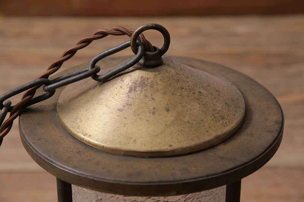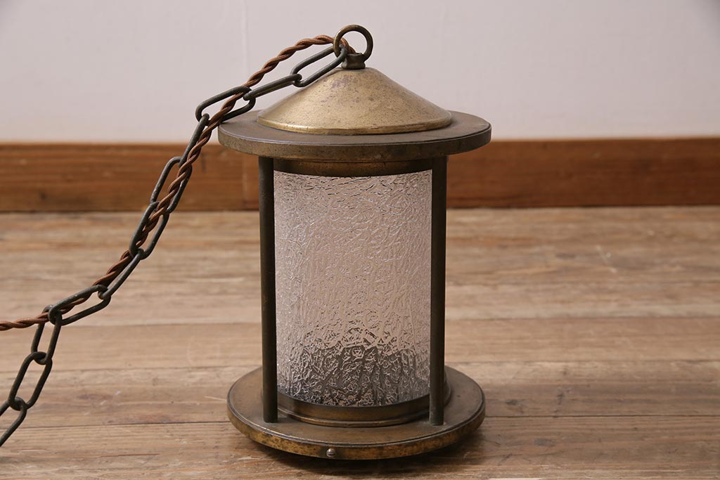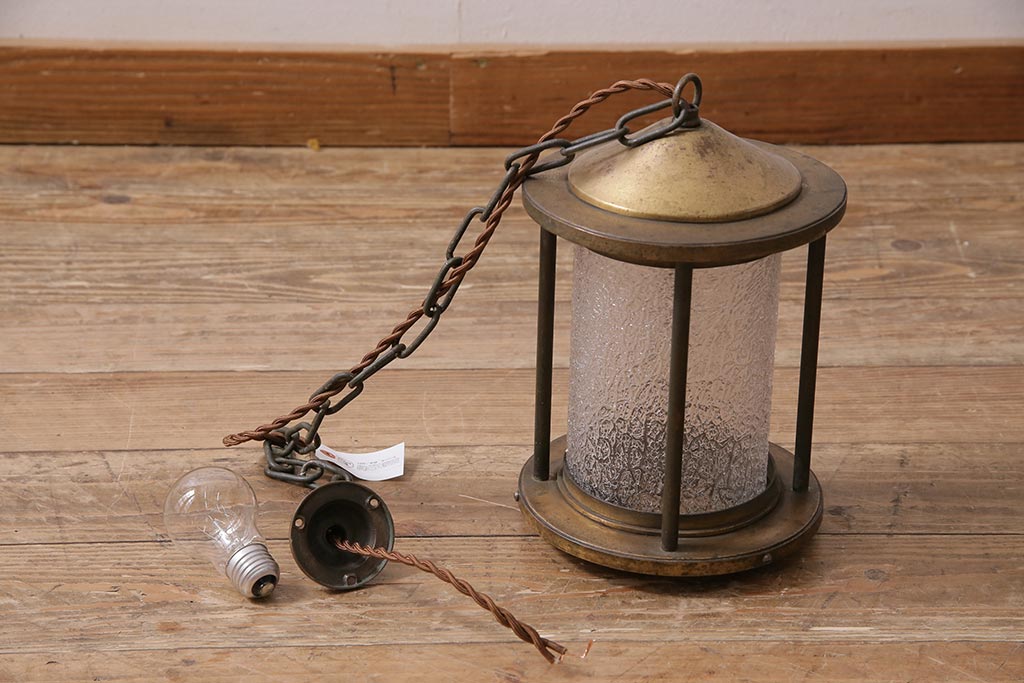 アンティーク照明 和製アンティーク 真鍮製 円柱 シャビーな質感がお洒落なランタン型ペンダントライト(吊り下げ照明、天井照明)(R-043737)