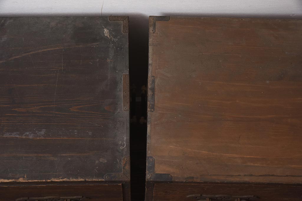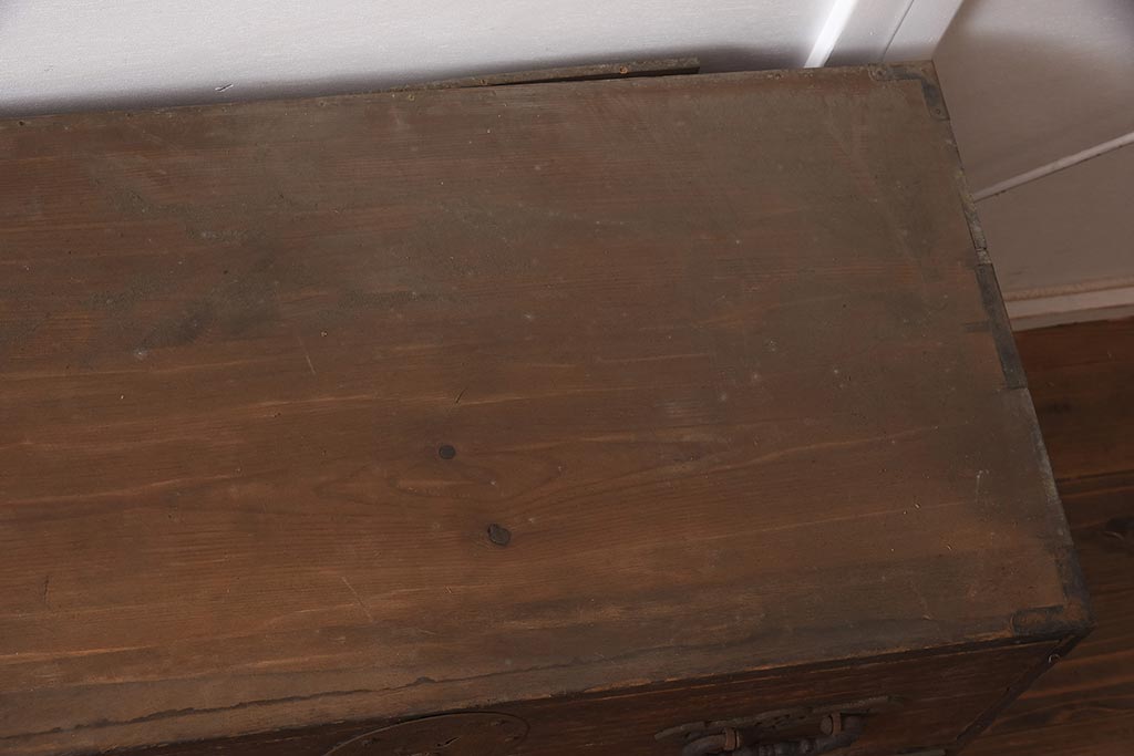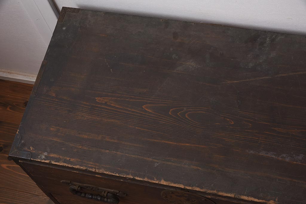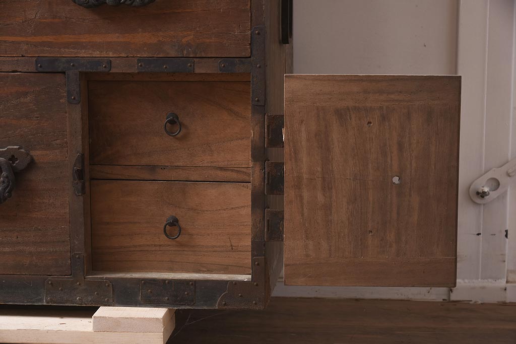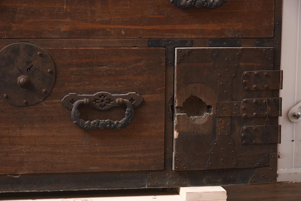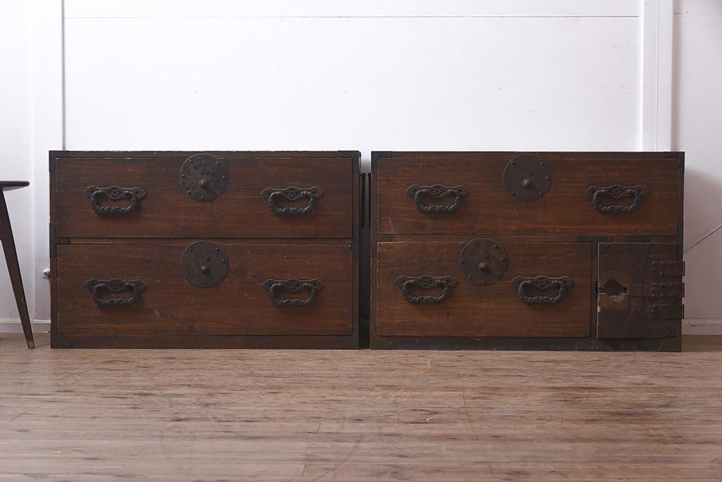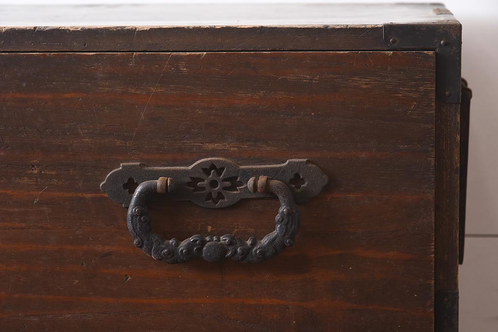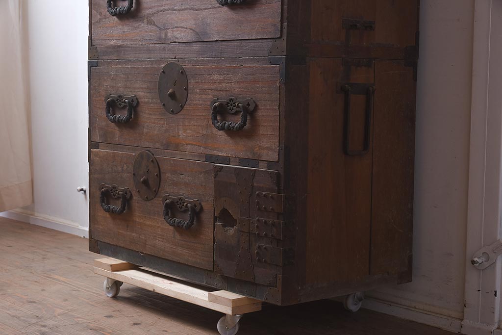 アンティーク家具 和製アンティーク 大正昭和初期 金具の意匠が珍しい!重ねの和箪笥(衣装箪笥、引き出し、チェスト)(R-043559)
