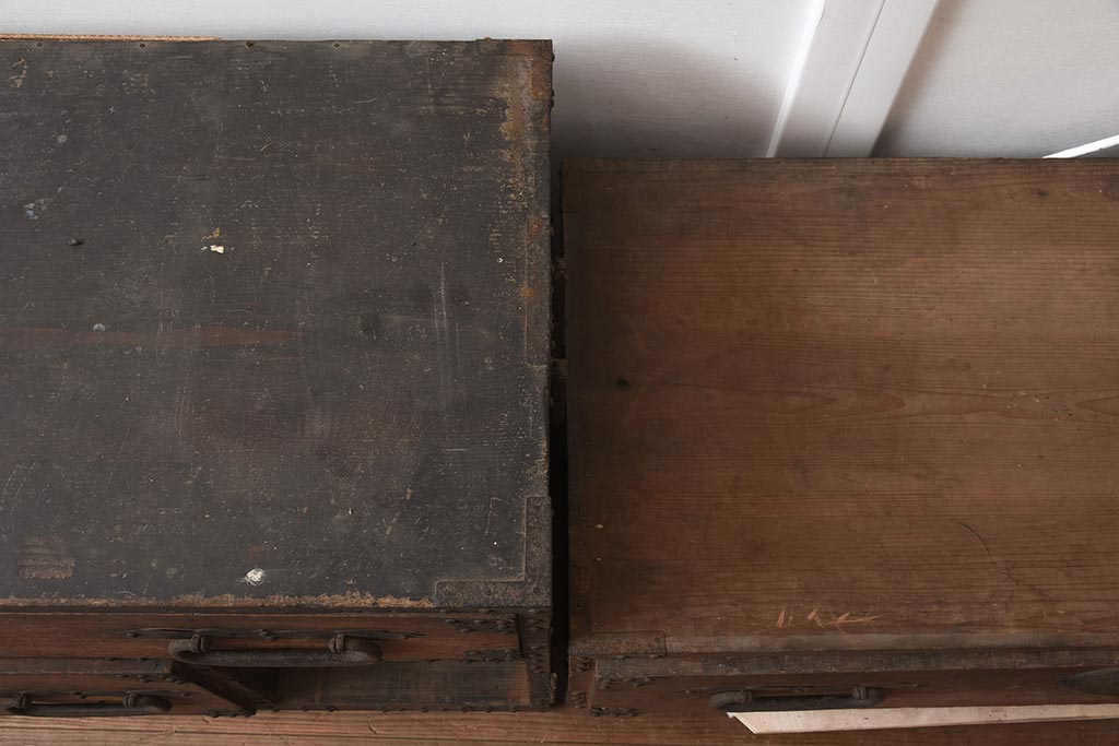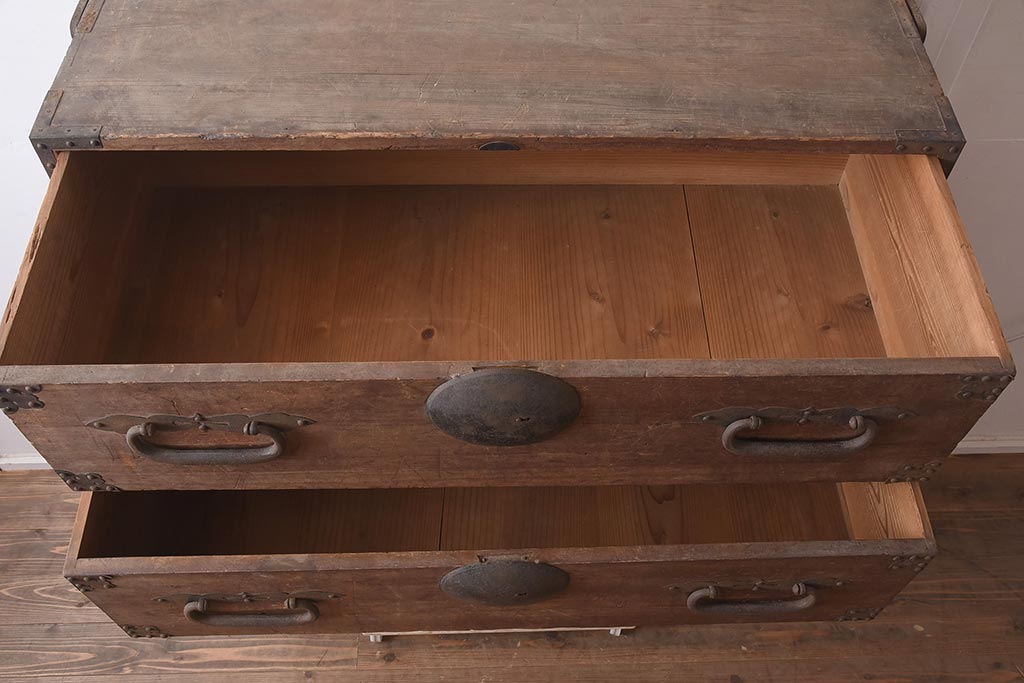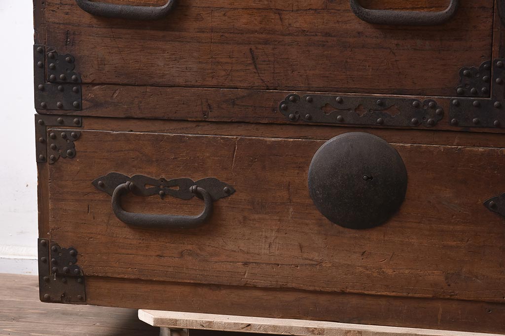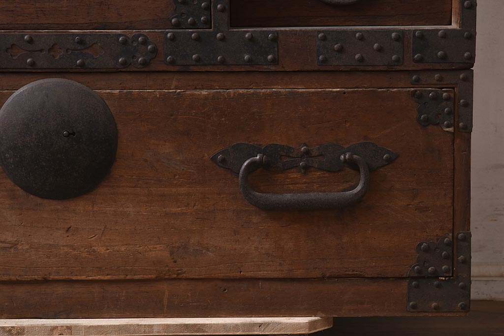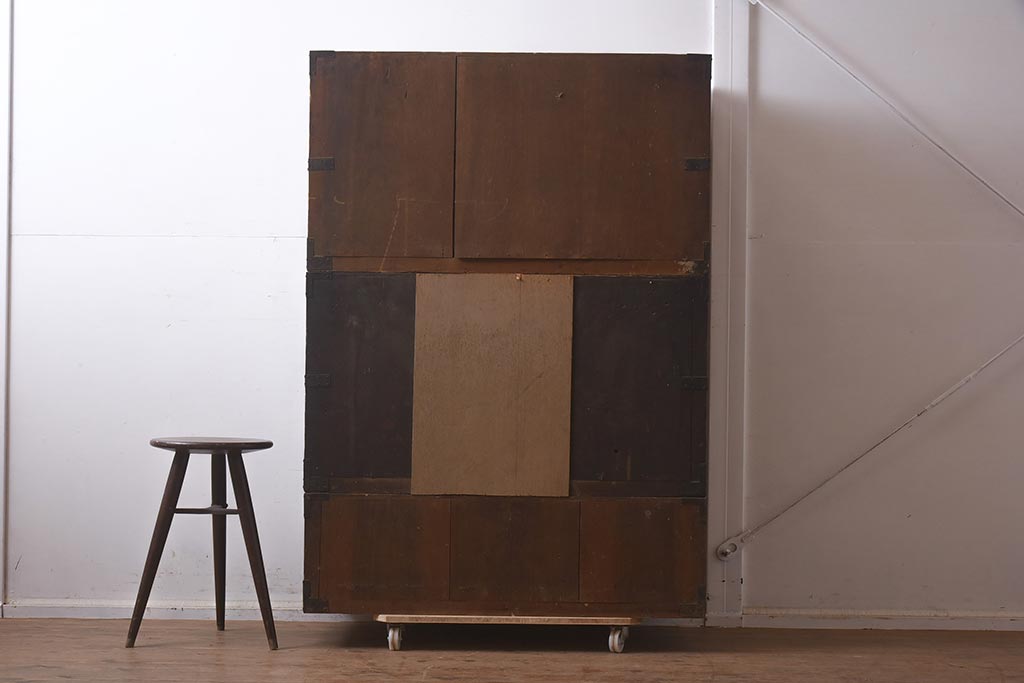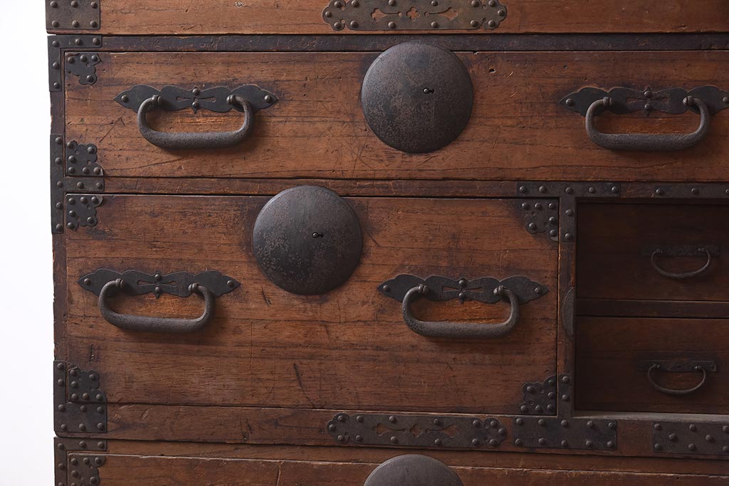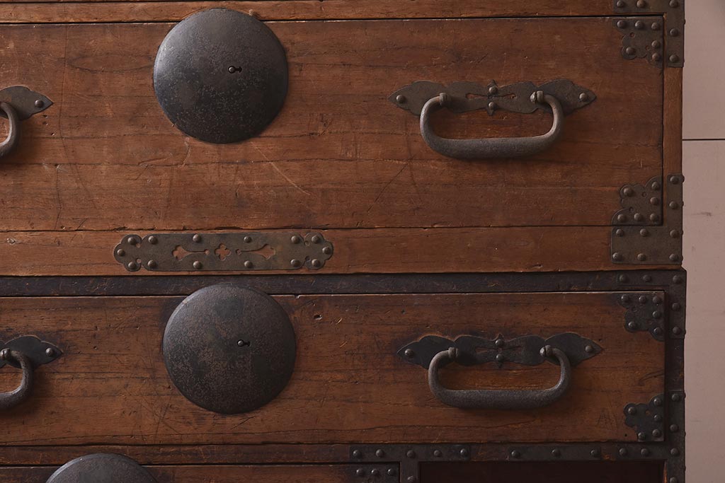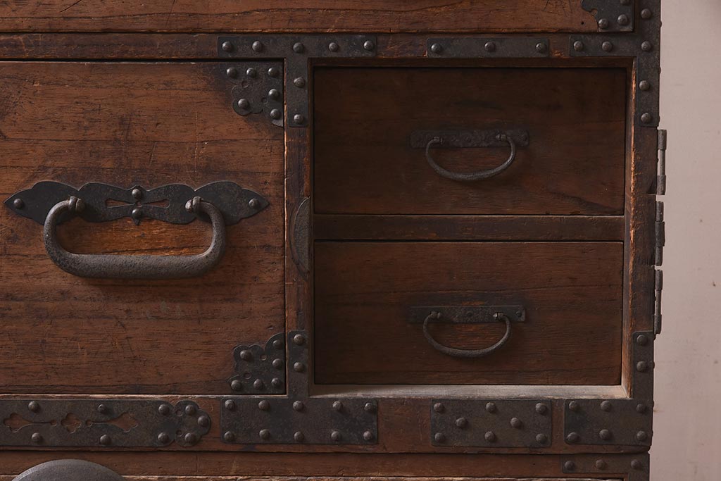 アンティーク家具 和製アンティーク 明治大正期 三段重ね 希少な五丁引き!和の趣漂う箪笥(重ね箪笥、衣装箪笥、引き出し)(R-043489)です。