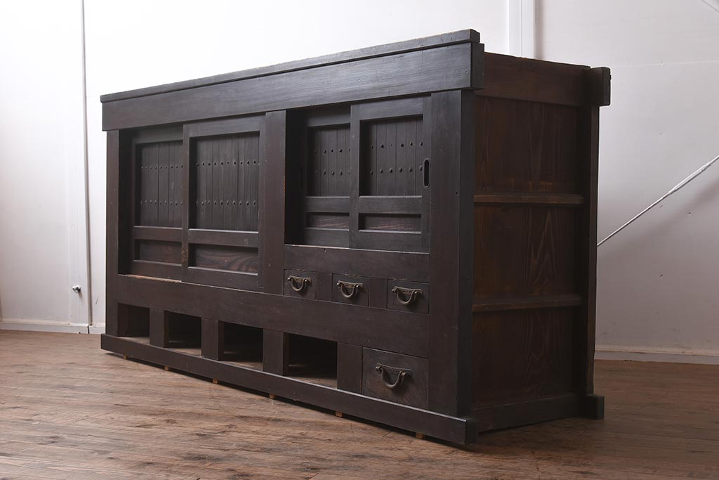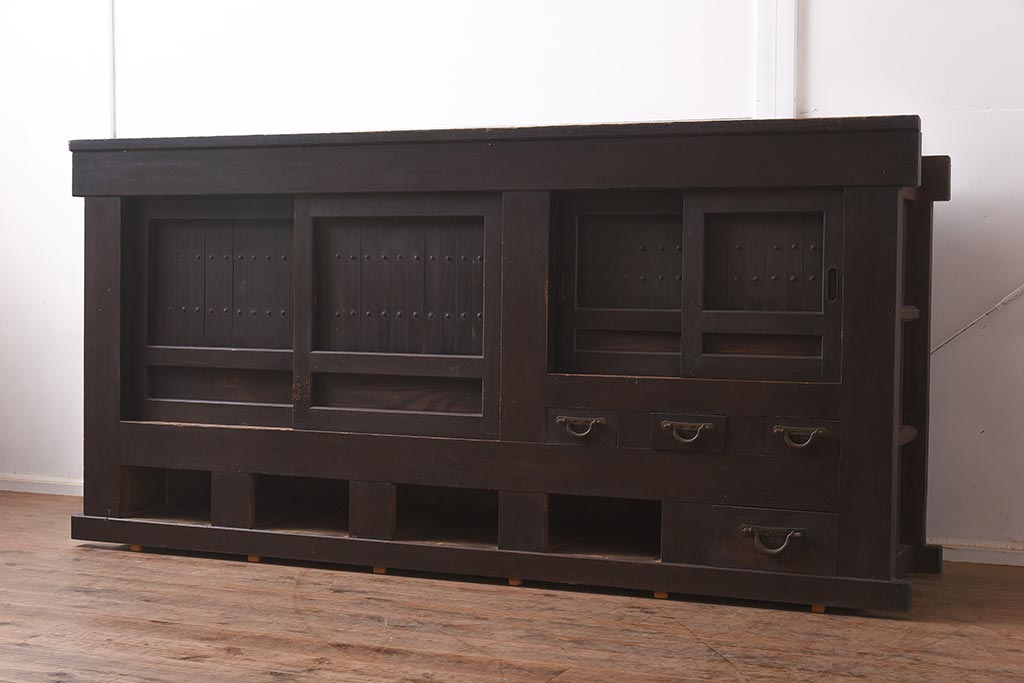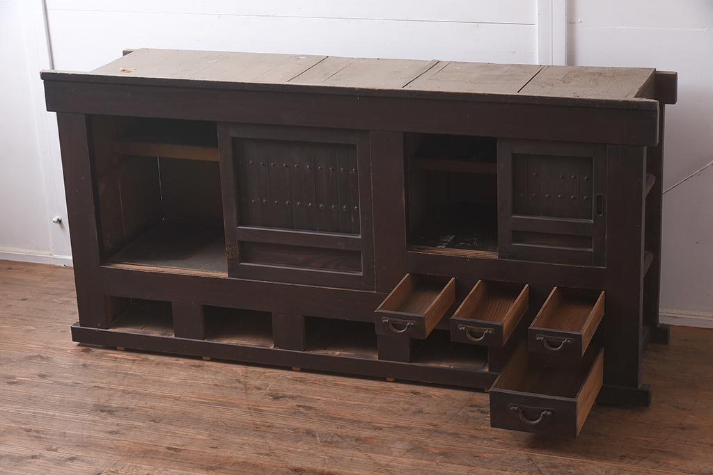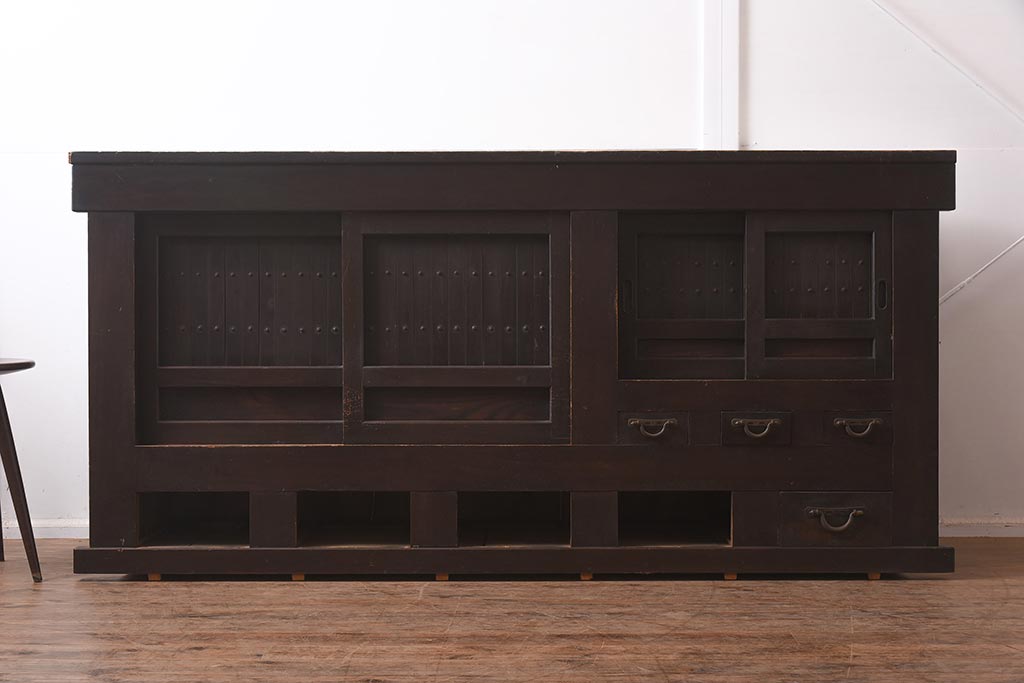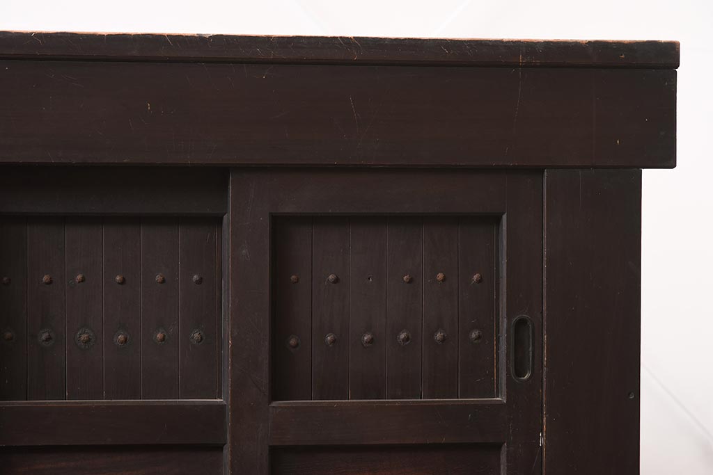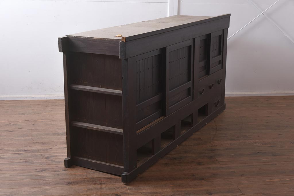 ラフジュ工房> キャビネット・戸棚> テレビ台・ローボード > アンティーク家具 和製アンティーク 六尺 堅牢な雰囲気が和の空間を高める水屋箪笥サイドボード(テレビ台、収納棚、戸棚、キャビネット)(R-043594)