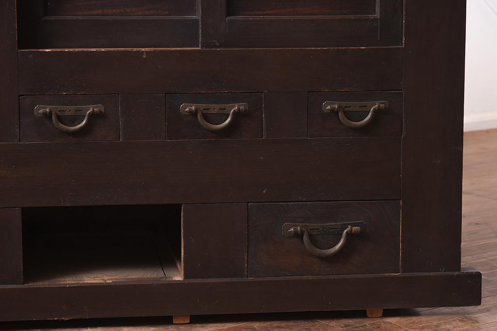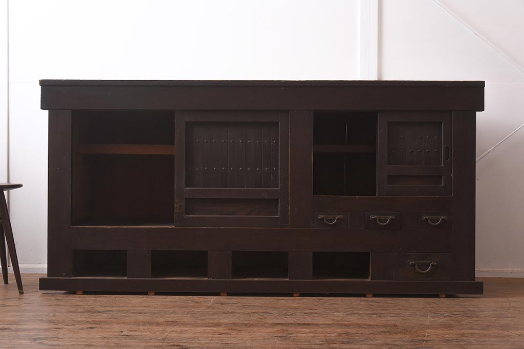 ラフジュ工房> キャビネット・戸棚> 食器棚・カップボード > アンティーク家具 和製アンティーク 六尺 堅牢な雰囲気が和の空間を高める水屋箪笥サイドボード(テレビ台、収納棚、戸棚、キャビネット)(R-043594)