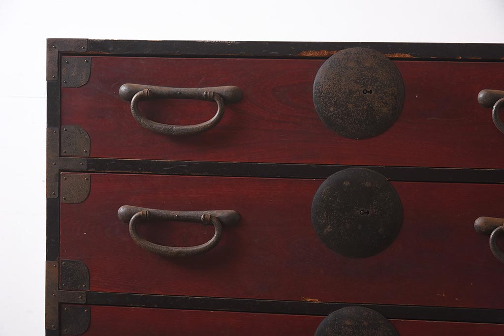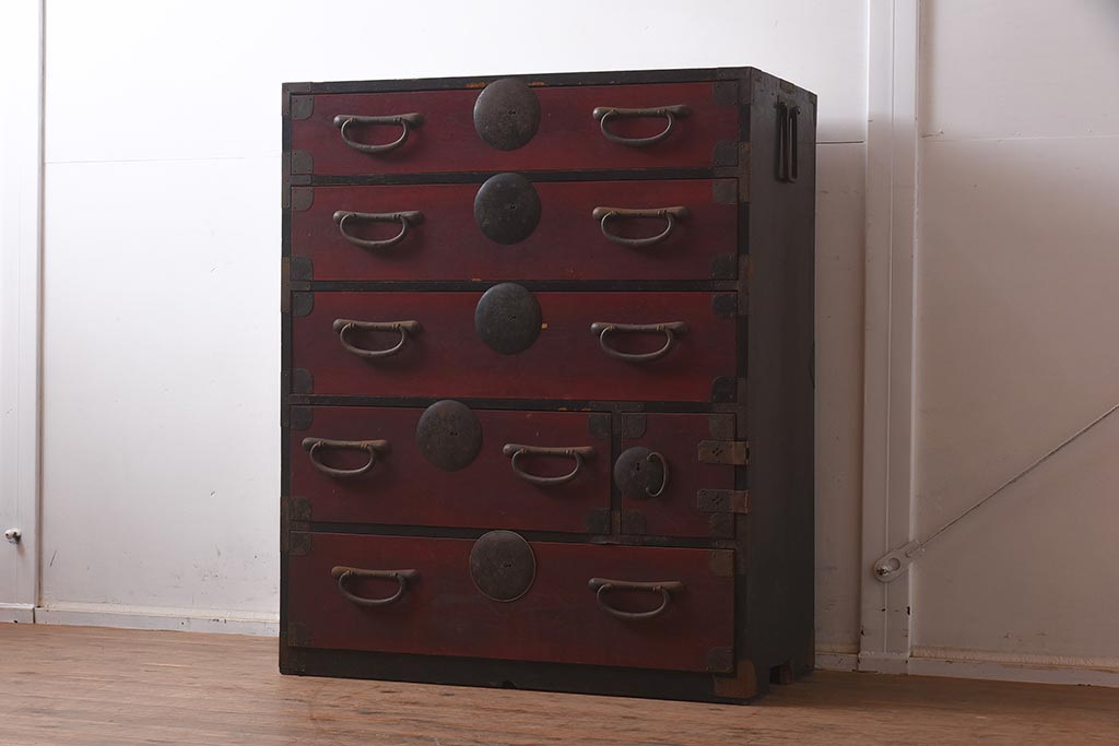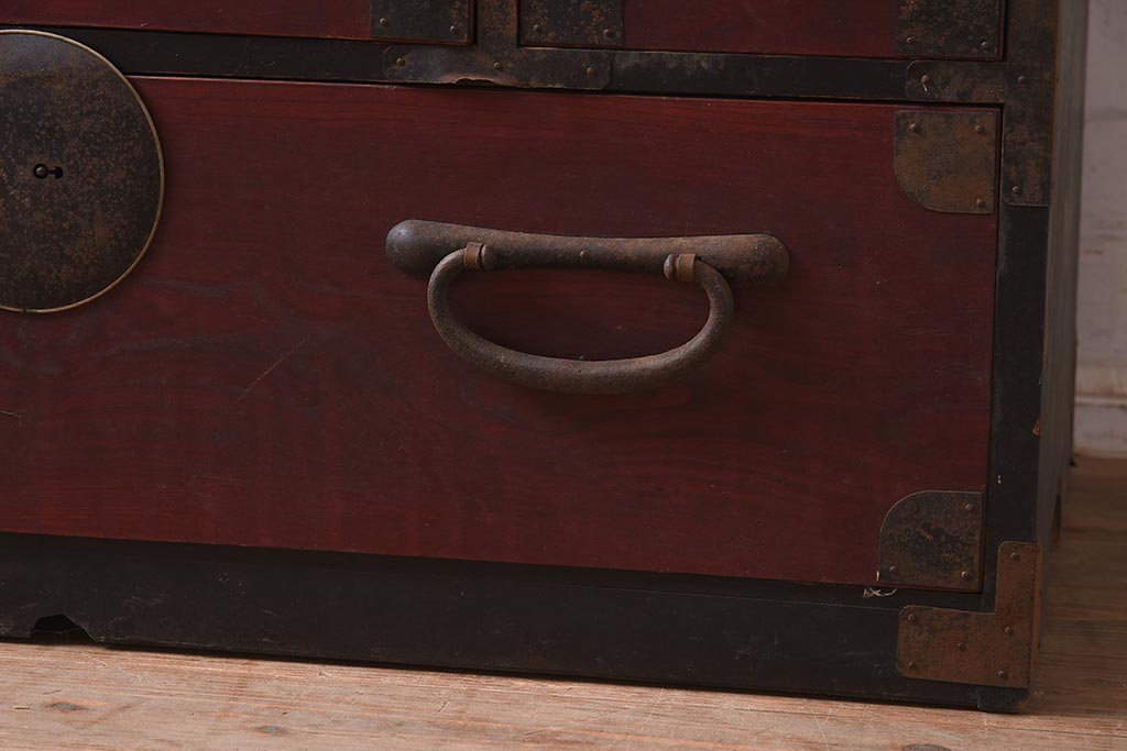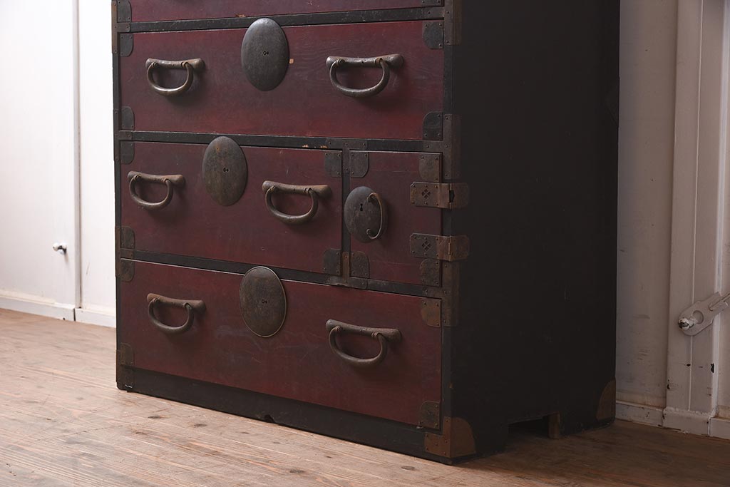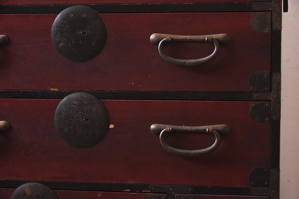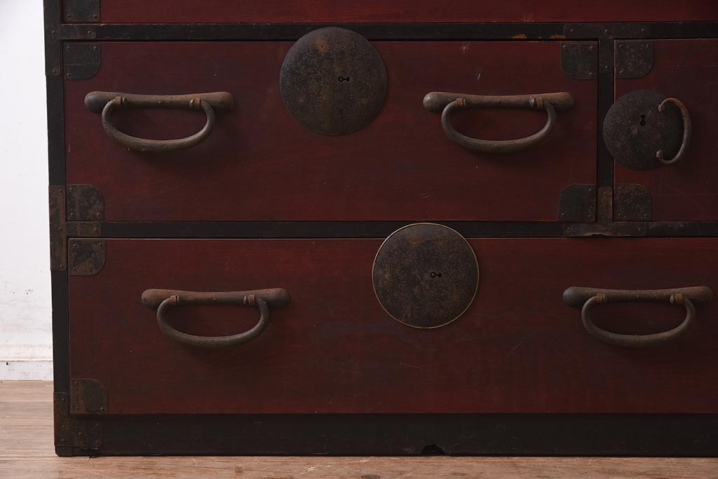 アンティーク家具 大正昭和初期 前面ケヤキ材 素敵な味わいのある松本箪笥(衣装箪笥、チェスト)(R-043551)です。