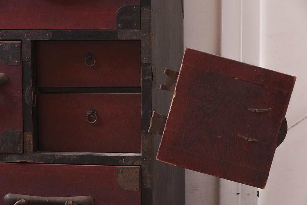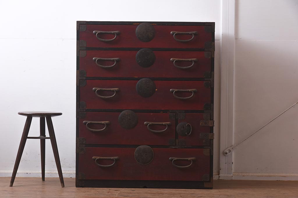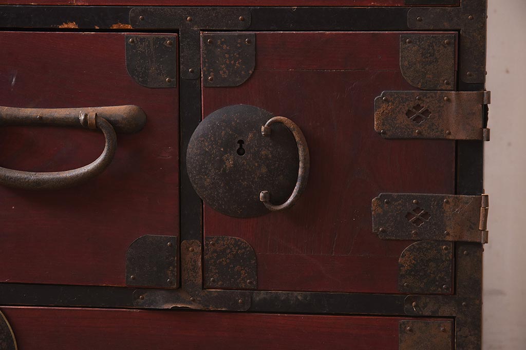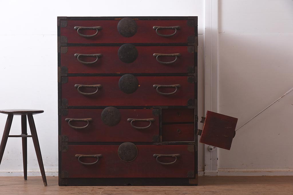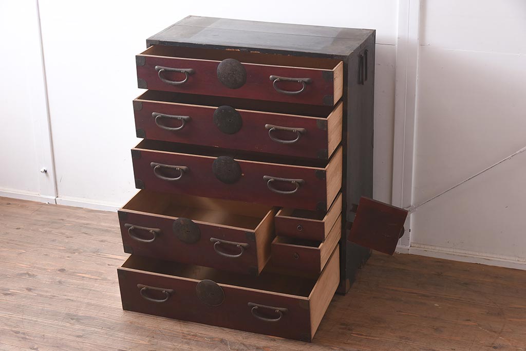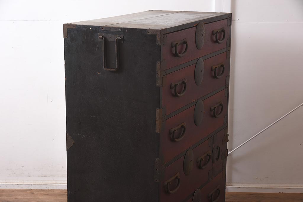 アンティーク家具 大正昭和初期 前面ケヤキ材 素敵な味わいのある松本箪笥(衣装箪笥、チェスト)(R-043551)です。
