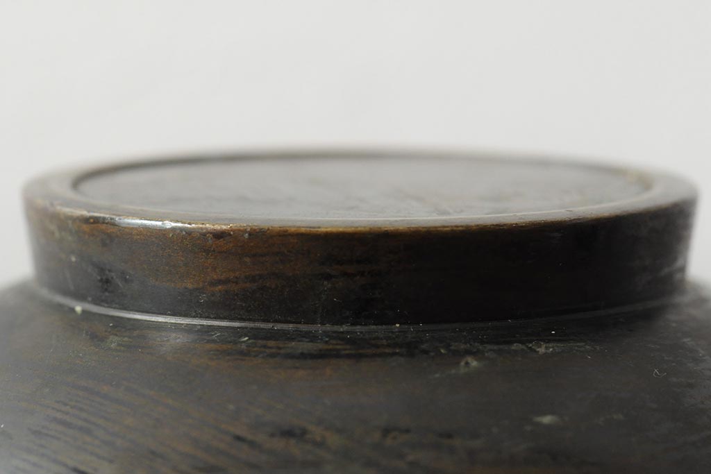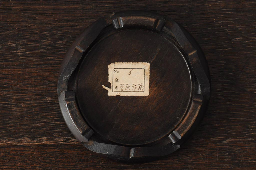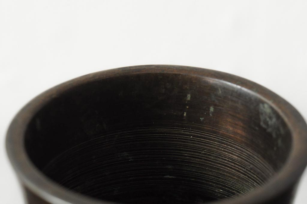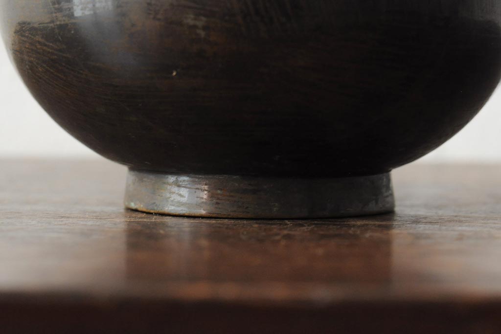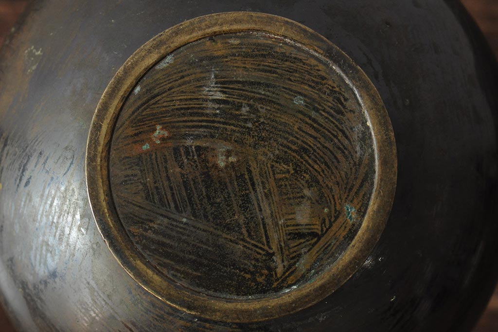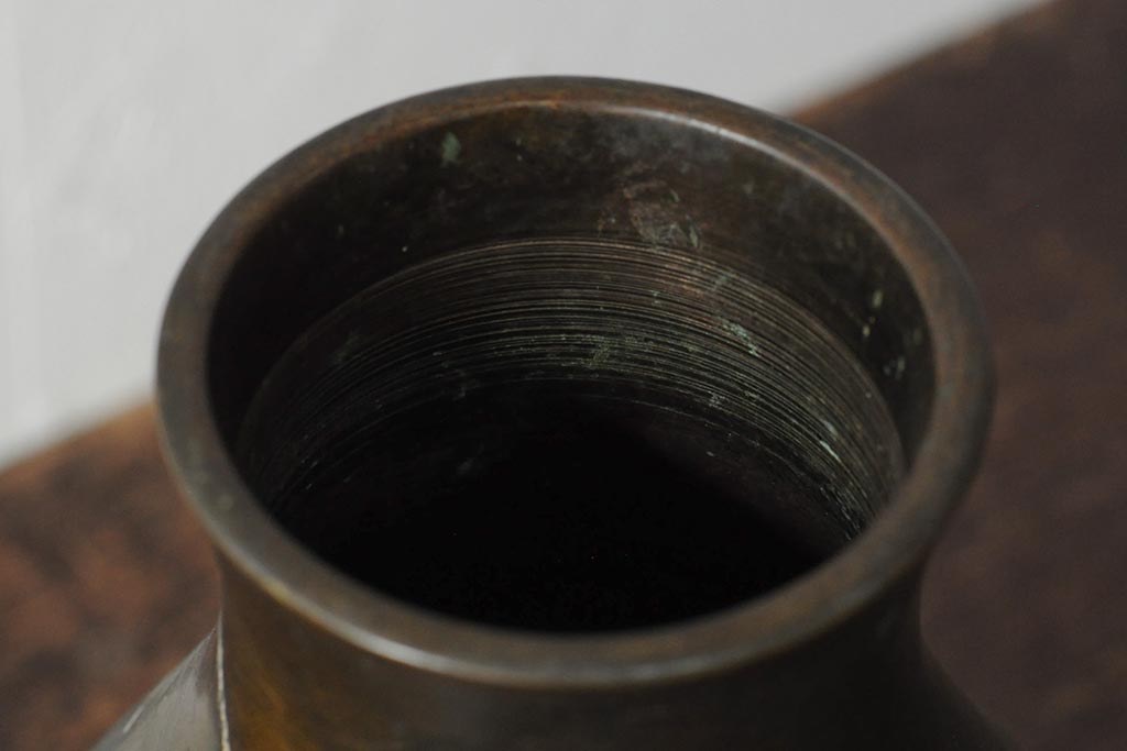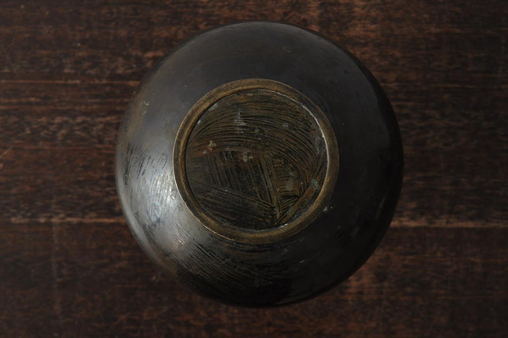 アンティーク雑貨 大正昭和初期 花に富士山図 銀象嵌彫金花瓶(菅原作蔵、花器、フラワーベース)(R-043519)