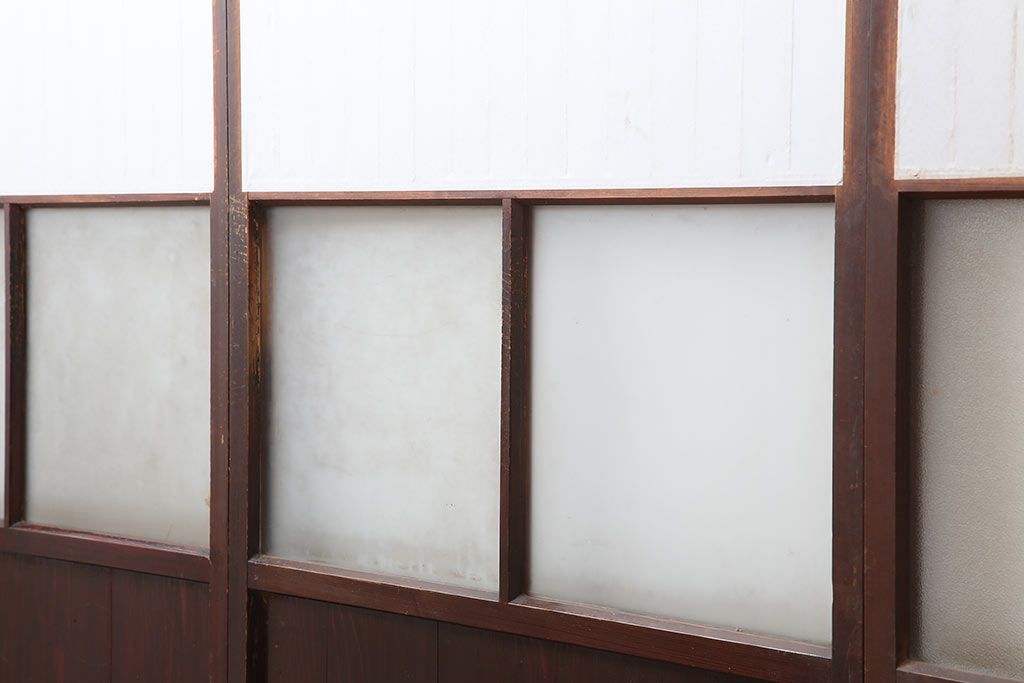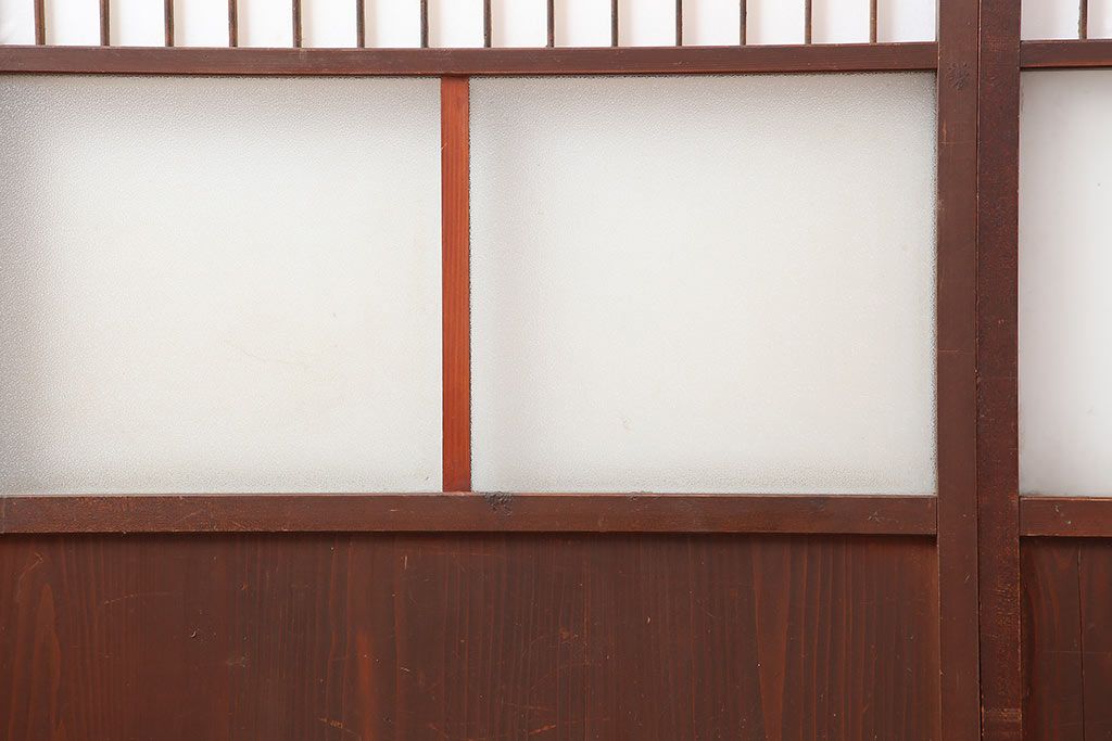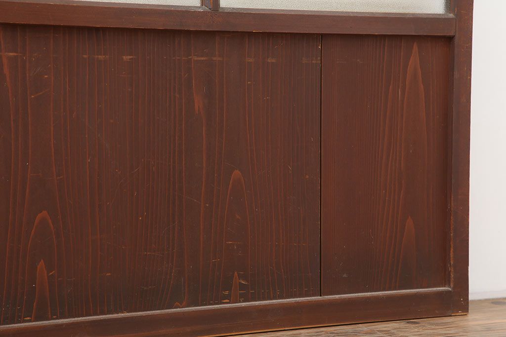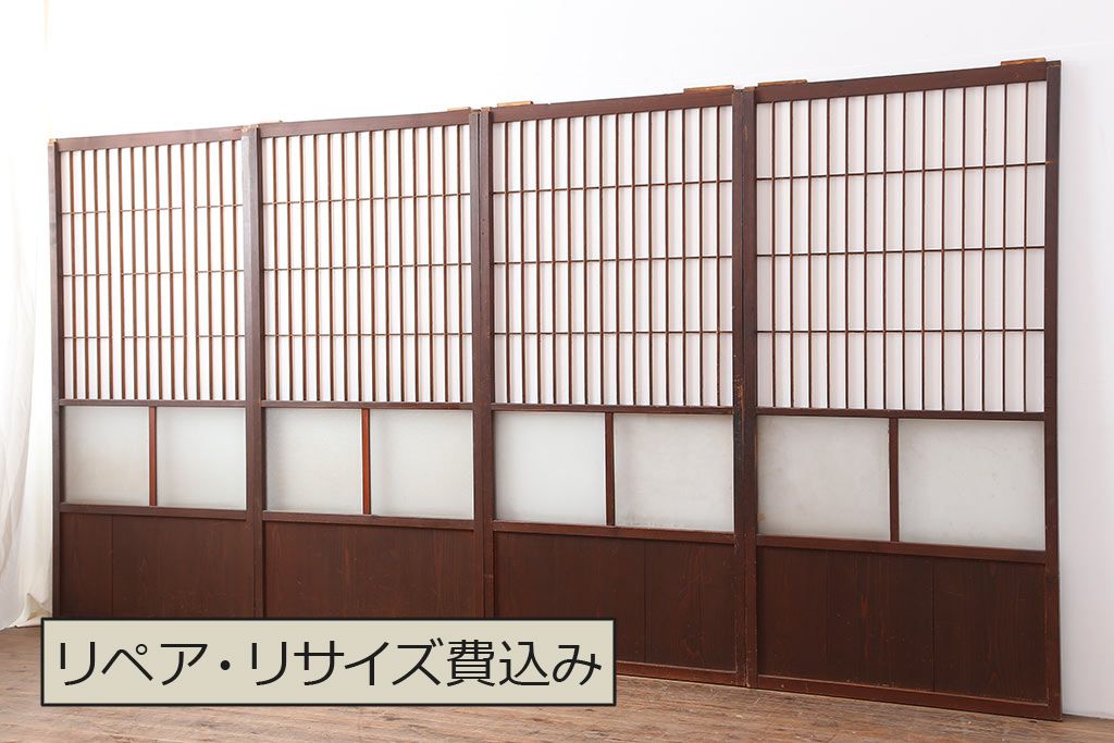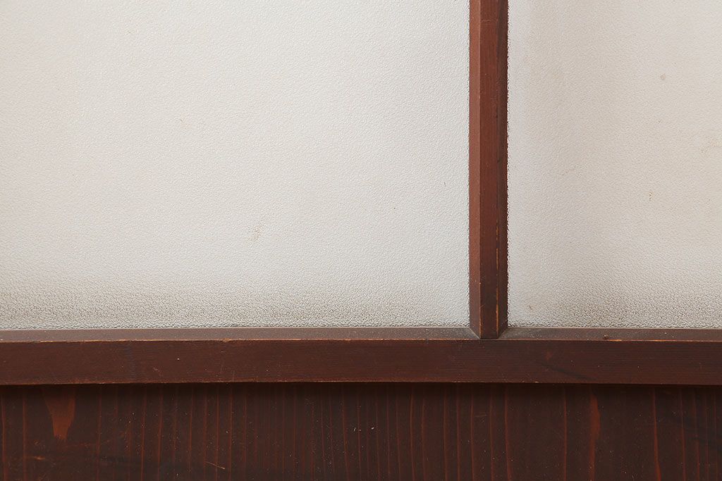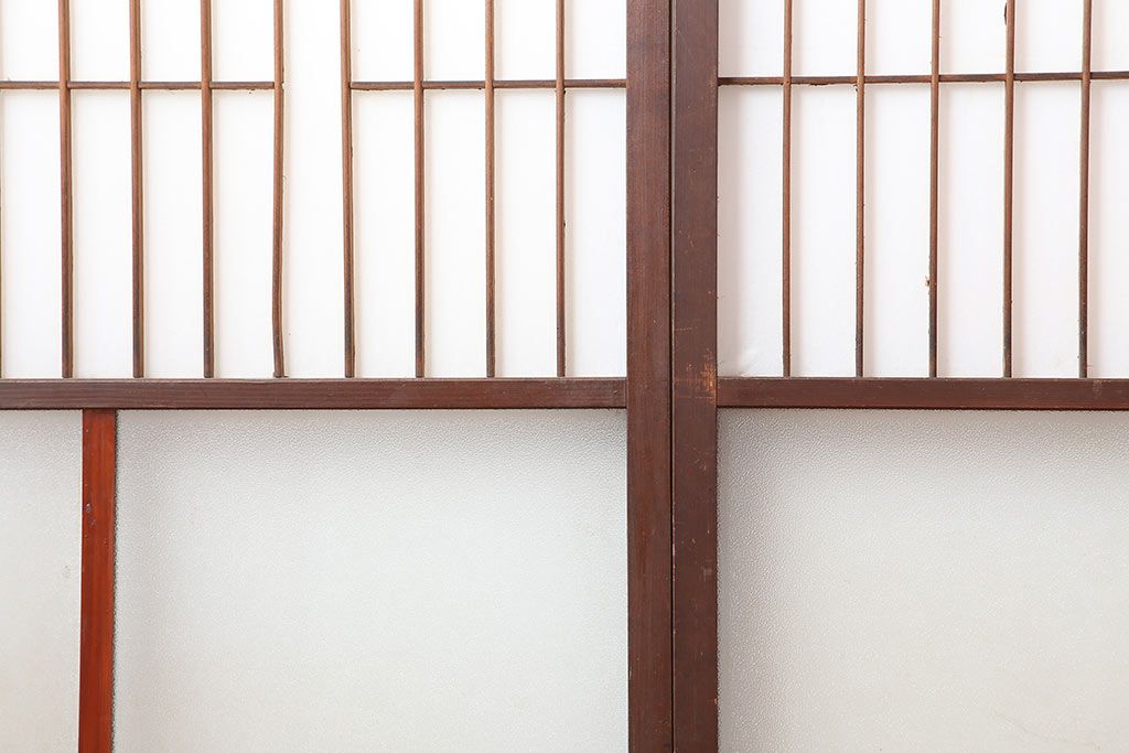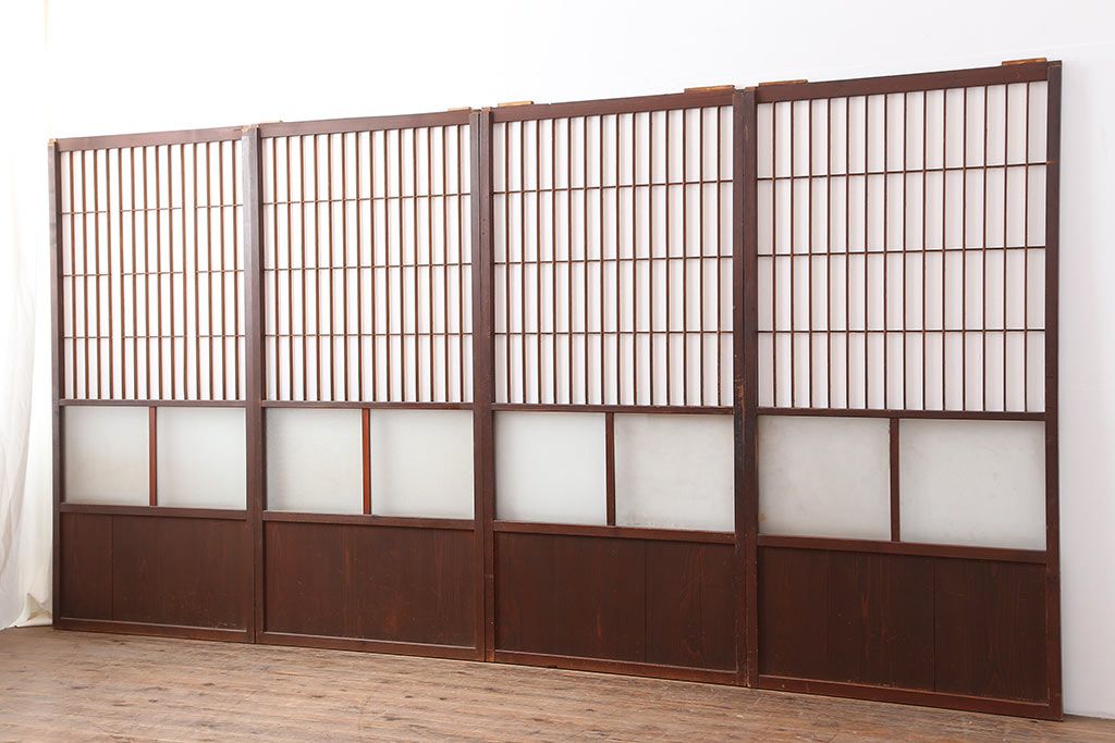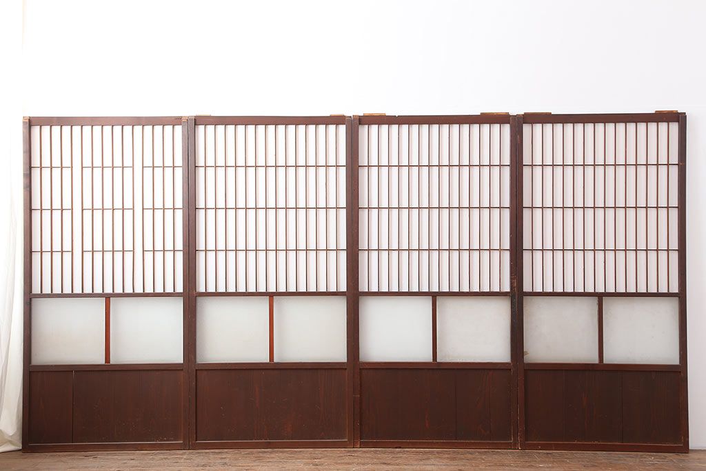 ラフジュ工房> ドア・建具> 障子戸 > アンティーク建具 昭和初期 レトロガラス入り すっきりとした格子が目を引く障子戸4枚セット(引き戸、ガラス帯戸)(R-043899)