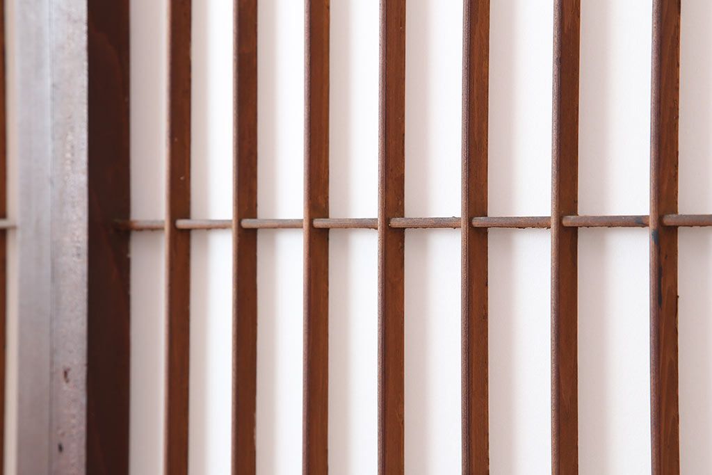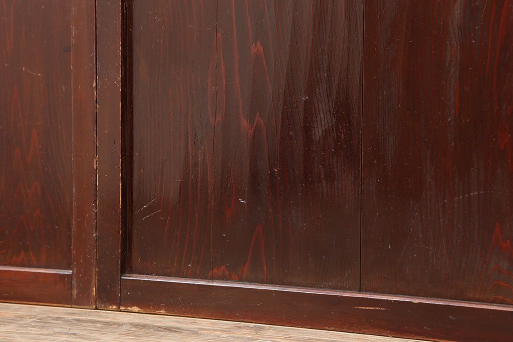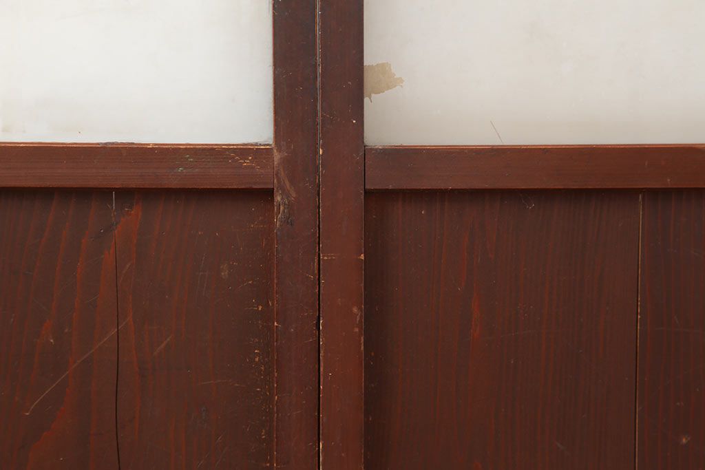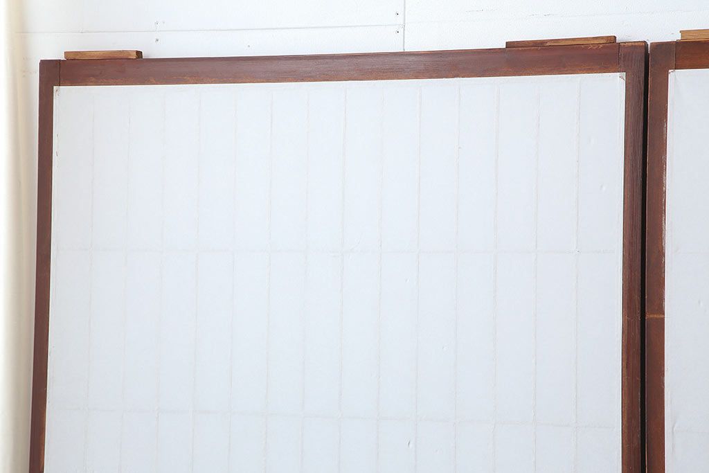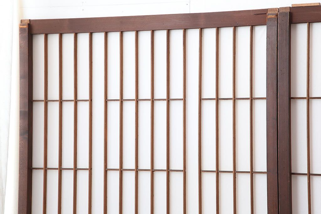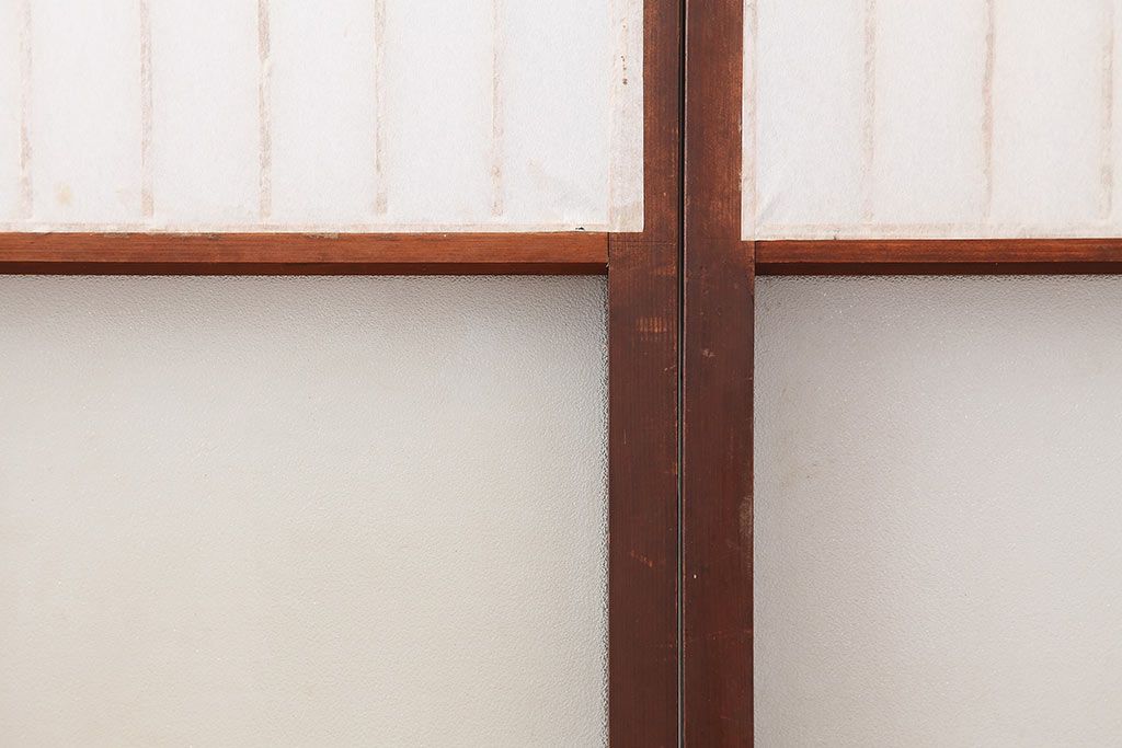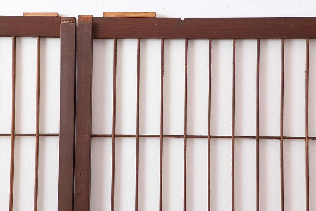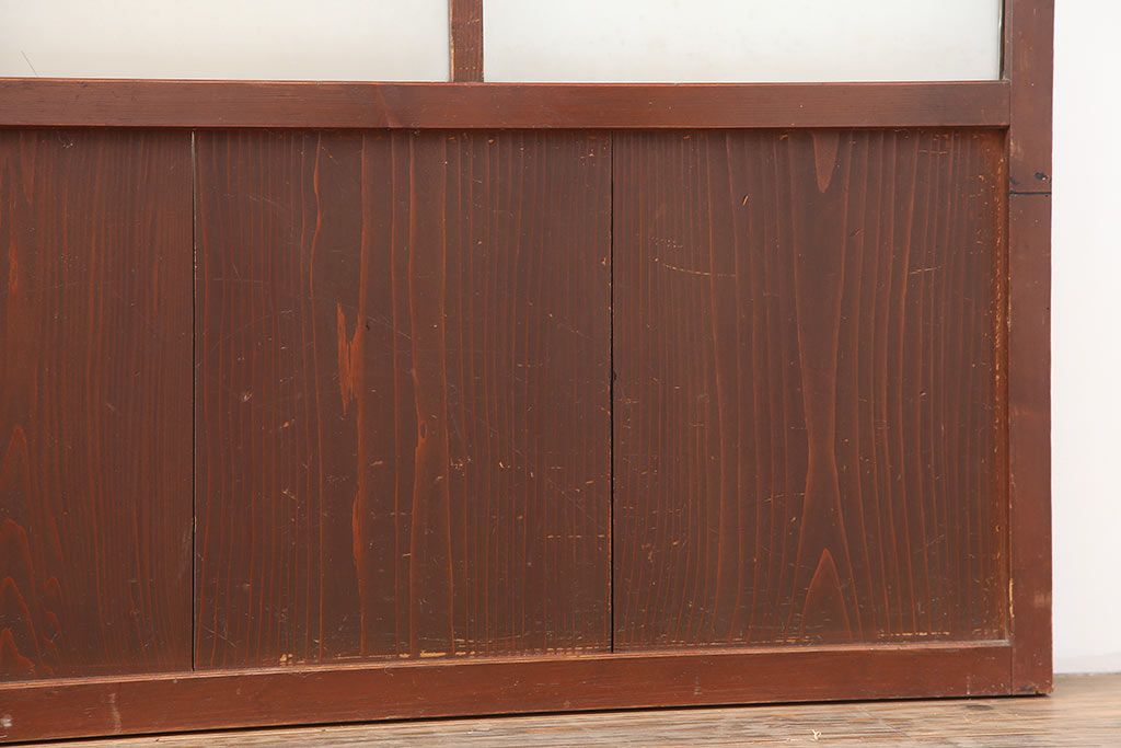 ラフジュ工房> ドア・建具> 障子戸 > アンティーク建具 昭和初期 レトロガラス入り すっきりとした格子が目を引く障子戸4枚セット(引き戸、ガラス帯戸)(R-043899)