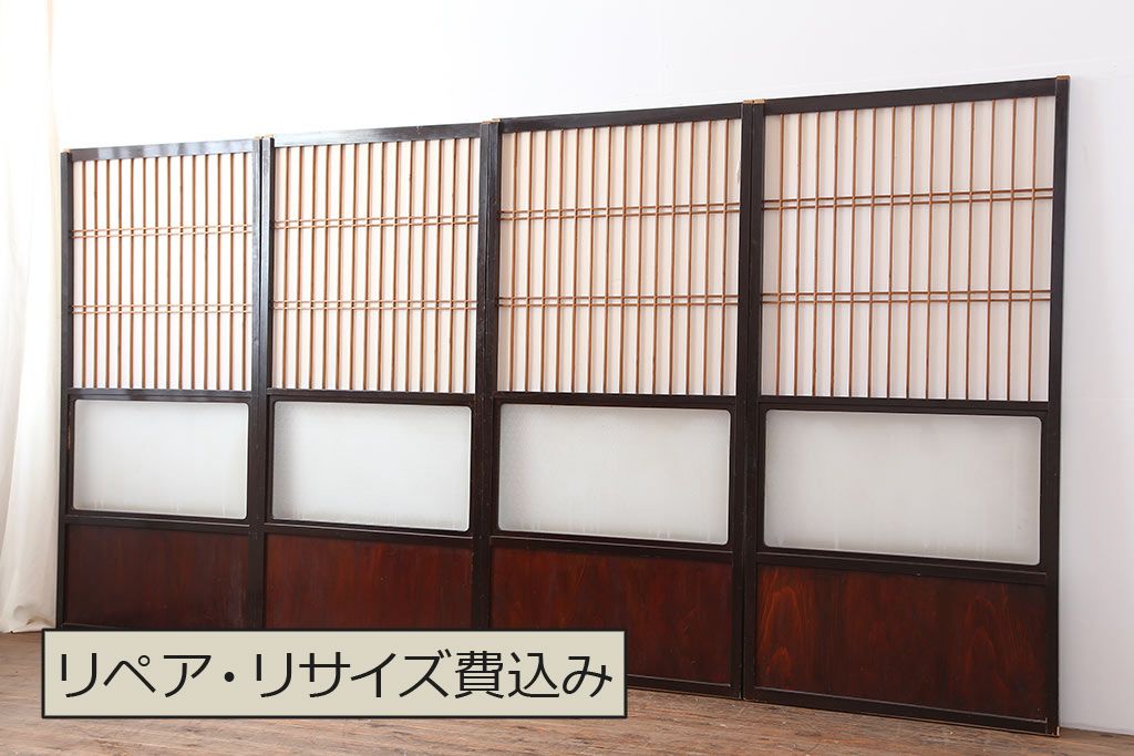 アンティーク建具 昭和初期 レトロガラス入り 上品な和の雰囲気漂う障子戸4枚セット(引き戸、ガラス帯戸)(R-043898)