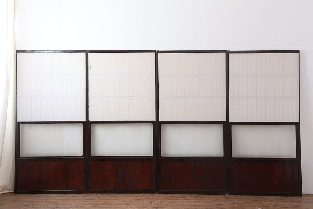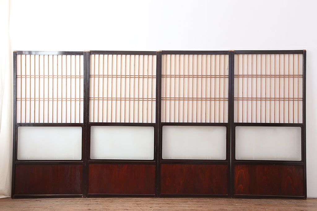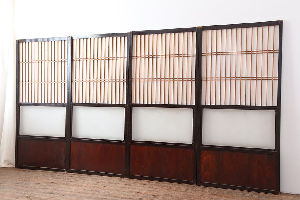 ドア・建具> 4枚〜セット > アンティーク建具 昭和初期 レトロガラス入り 上品な和の雰囲気漂う障子戸4枚セット(引き戸、ガラス帯戸)(R-043898)