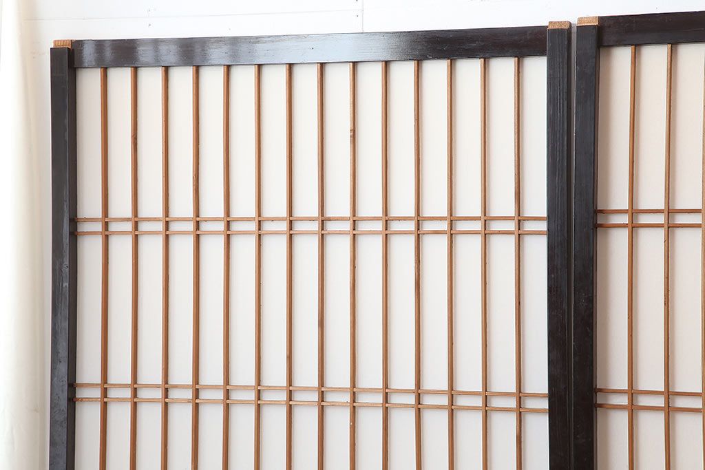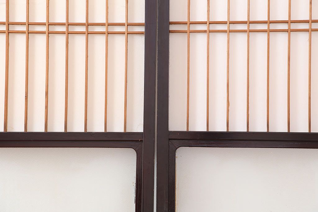 ドア・建具> 障子戸 > アンティーク建具 昭和初期 レトロガラス入り 上品な和の雰囲気漂う障子戸4枚セット(引き戸、ガラス帯戸)(R-043898)