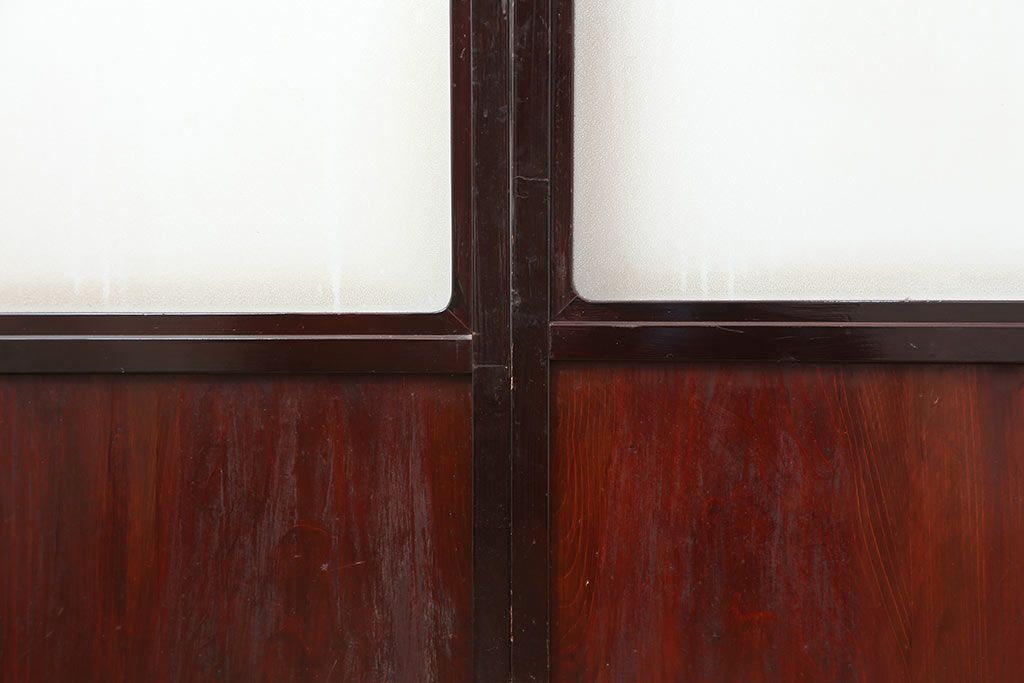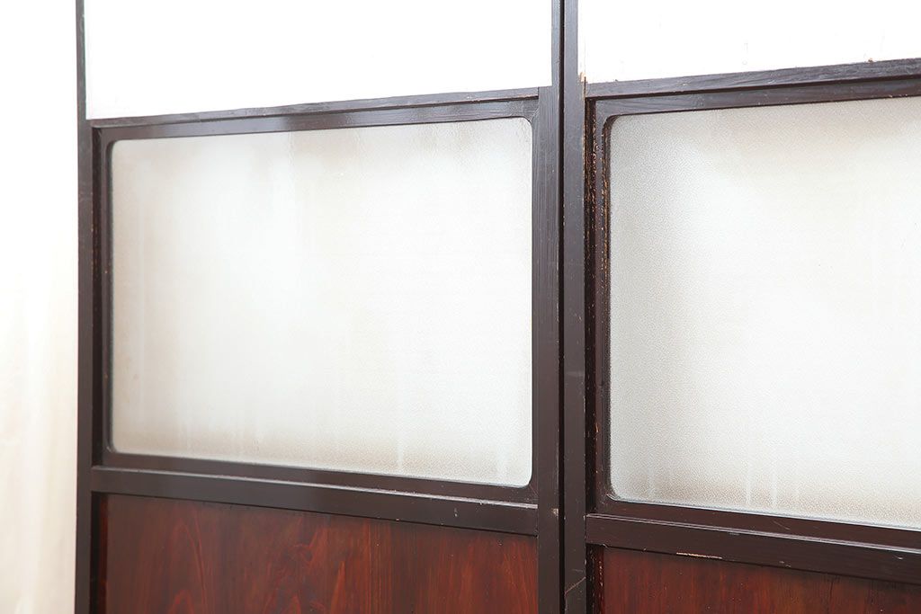 ドア・建具> 引き戸 > アンティーク建具 昭和初期 レトロガラス入り 上品な和の雰囲気漂う障子戸4枚セット(引き戸、ガラス帯戸)(R-043898)