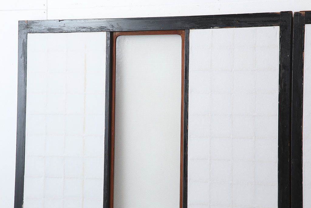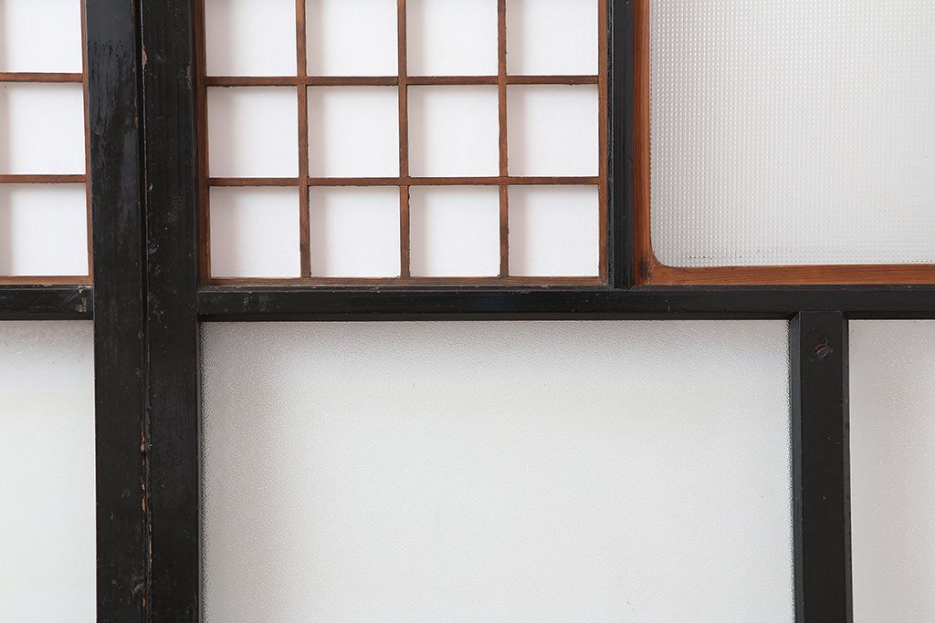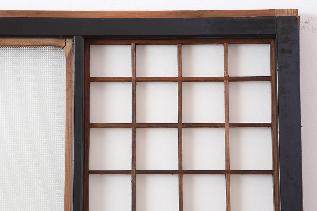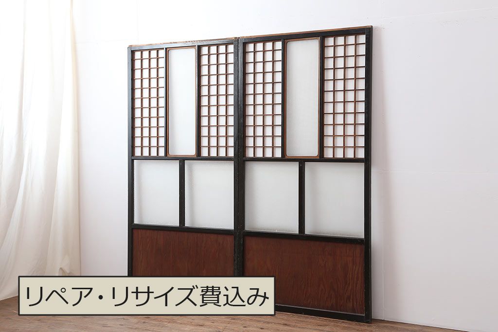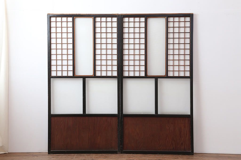 アンティーク建具 昭和初期 結霜ガラス・レトロガラス入り 珍しいデザインの障子戸2枚セット(引き戸)(R-043892)