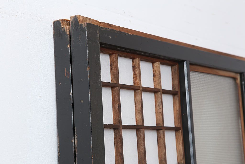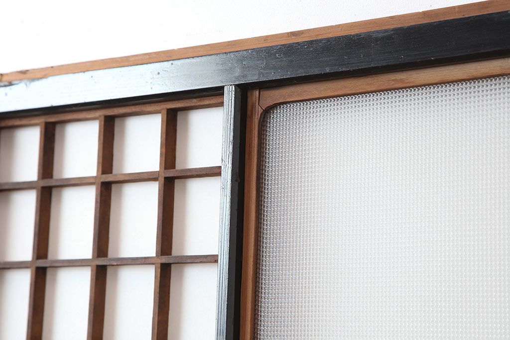 ラフジュ工房> ドア・建具> 障子戸 > アンティーク建具 昭和初期 結霜ガラス・レトロガラス入り 珍しいデザインの障子戸2枚セット(引き戸)(R-043892)
