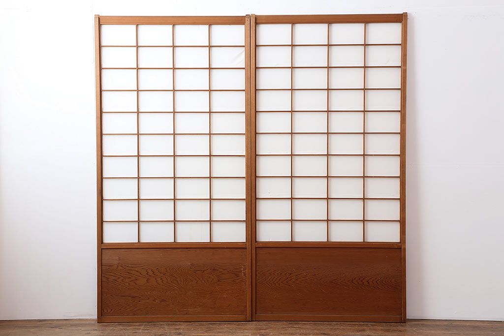 ラフジュ工房> ドア・建具> 2枚・3枚セット > アンティーク建具 昭和中期 しっかりとした木目が魅力の障子戸2枚セット(引き戸)(R-043890)