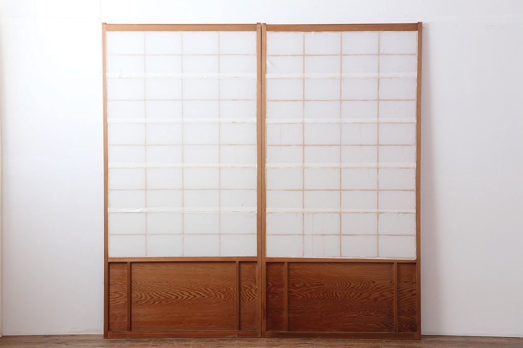 ラフジュ工房> ドア・建具> 引き戸 > アンティーク建具 昭和中期 しっかりとした木目が魅力の障子戸2枚セット(引き戸)(R-043890)