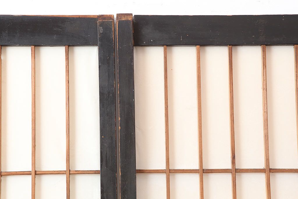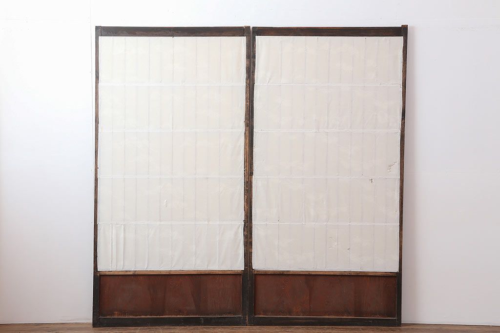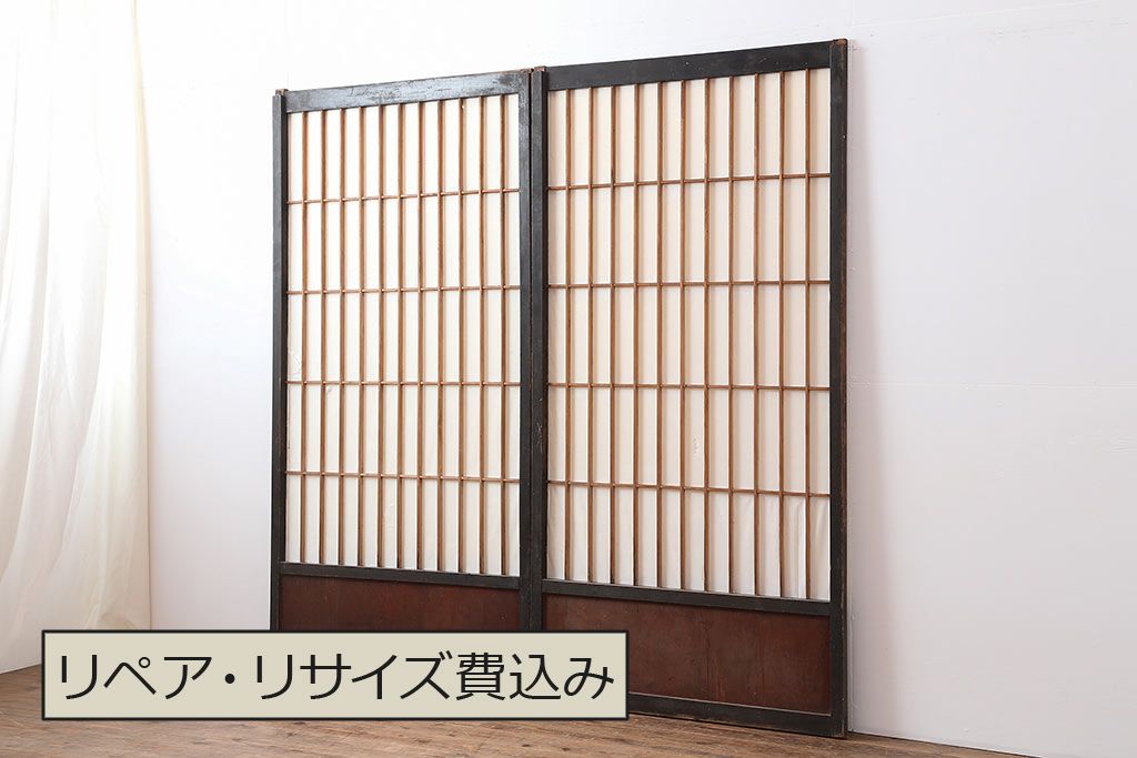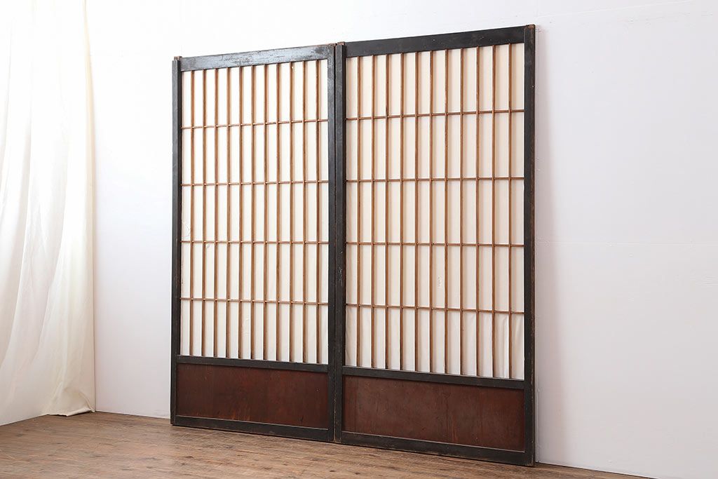 アンティーク建具 大正期 和の風情漂う格子入り障子戸2枚セット(引き戸)(R-043931)