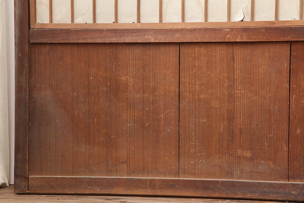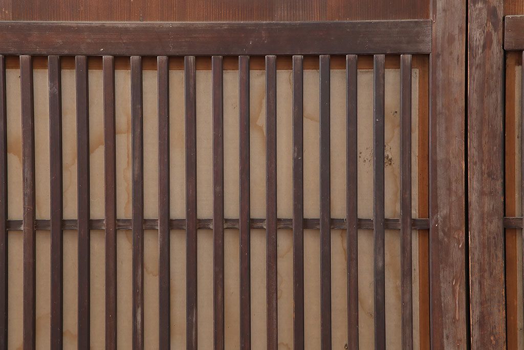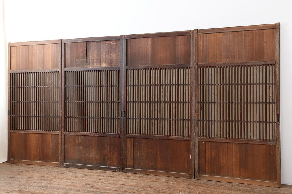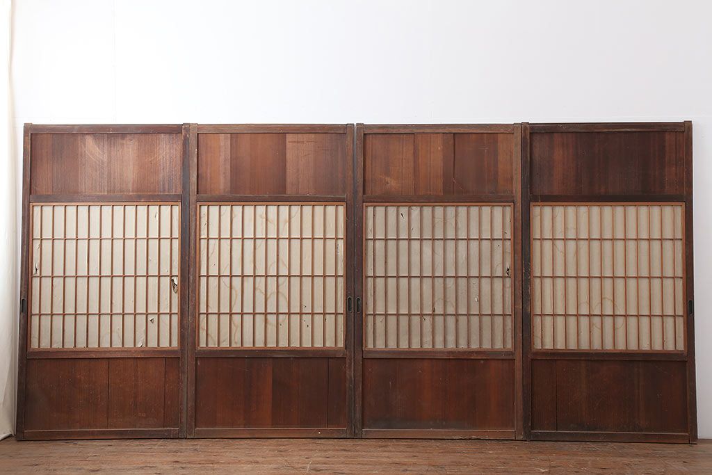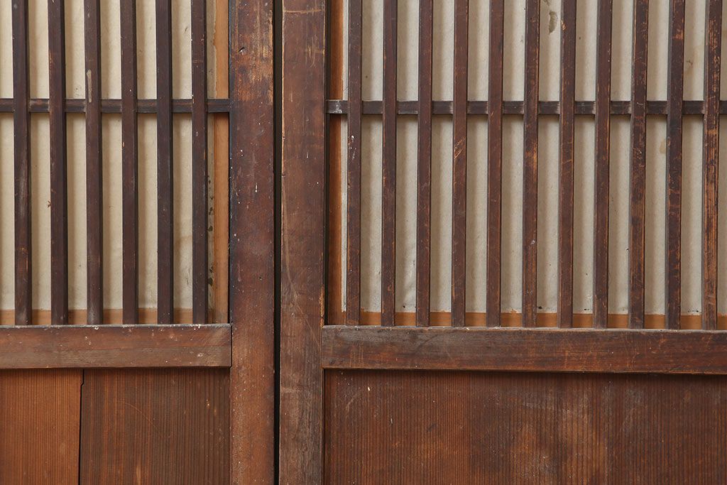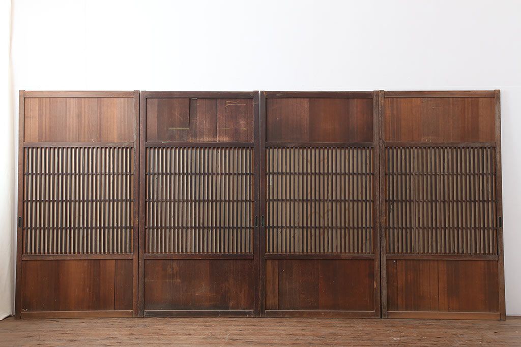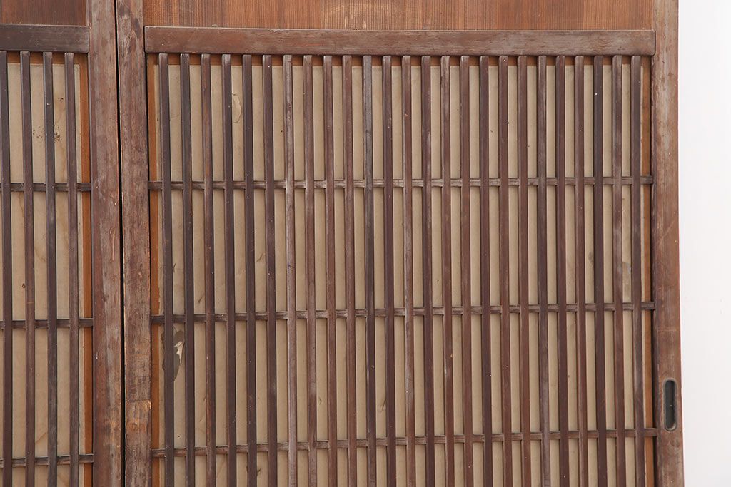 アンティーク建具 大正昭和初期 裏障子付き 味わい深い木肌が魅力の格子帯戸4枚セット(引き戸)(R-043909)