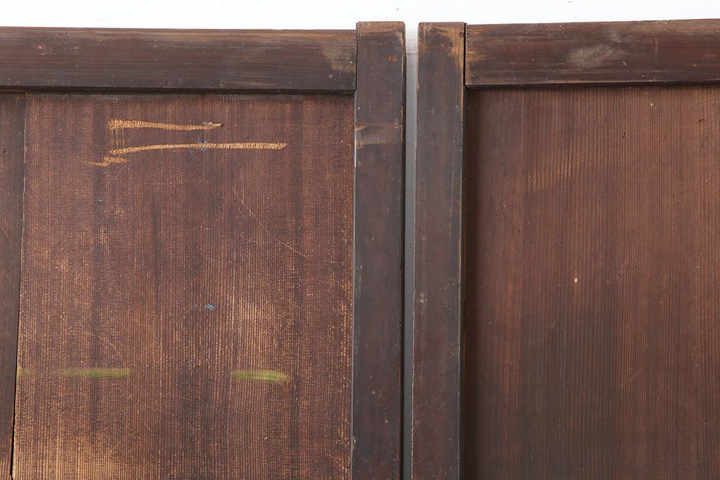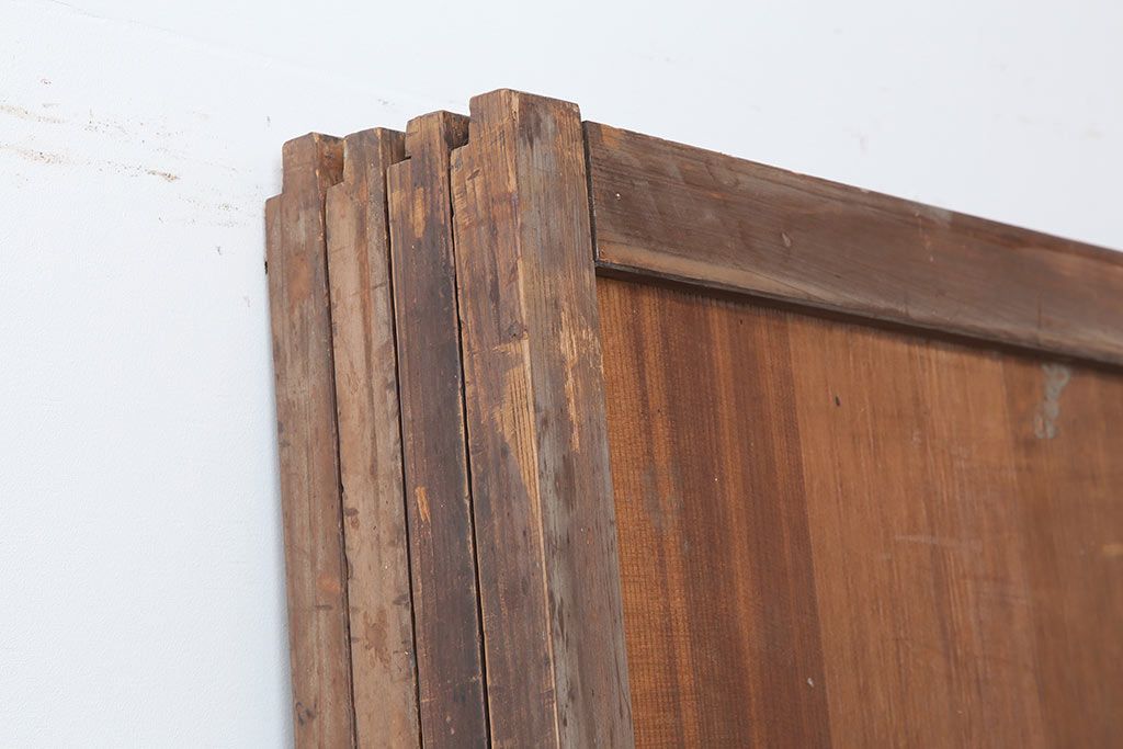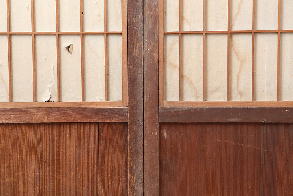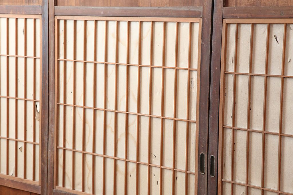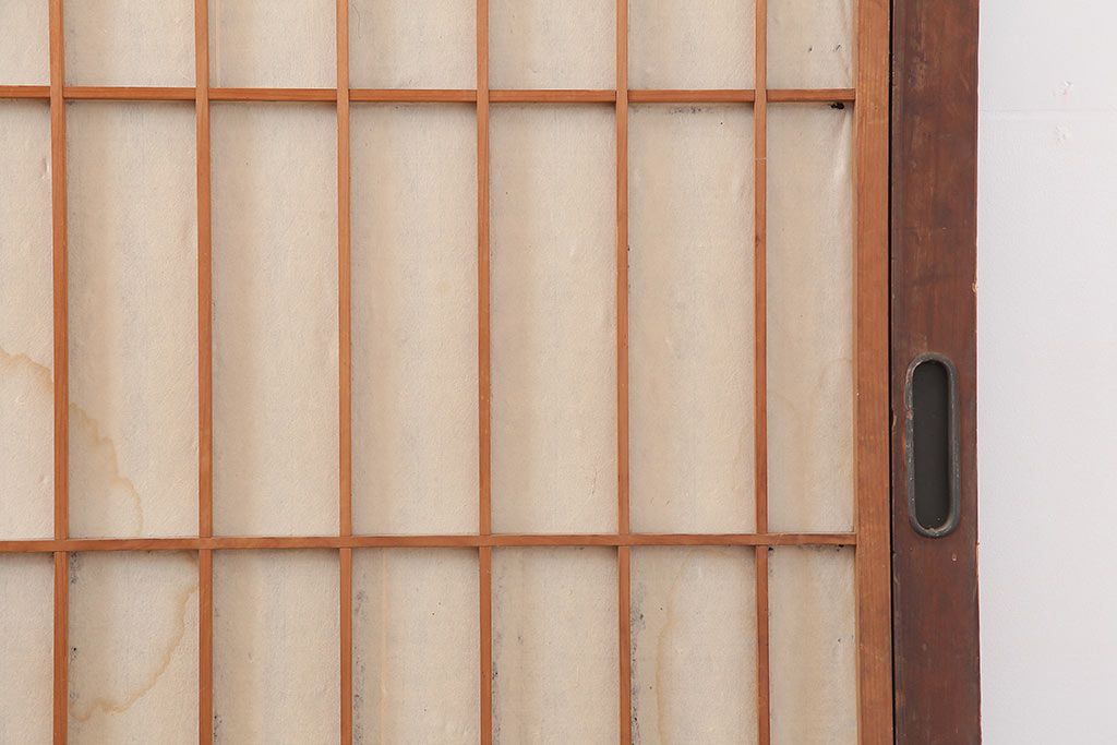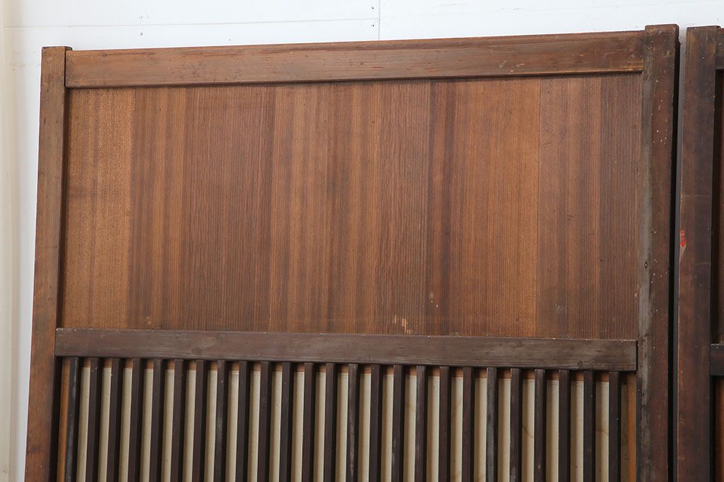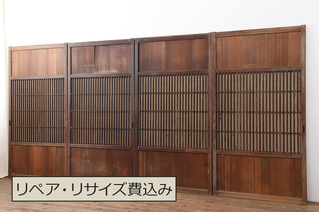 アンティーク建具 大正昭和初期 裏障子付き 味わい深い木肌が魅力の格子帯戸4枚セット(引き戸)(R-043909)