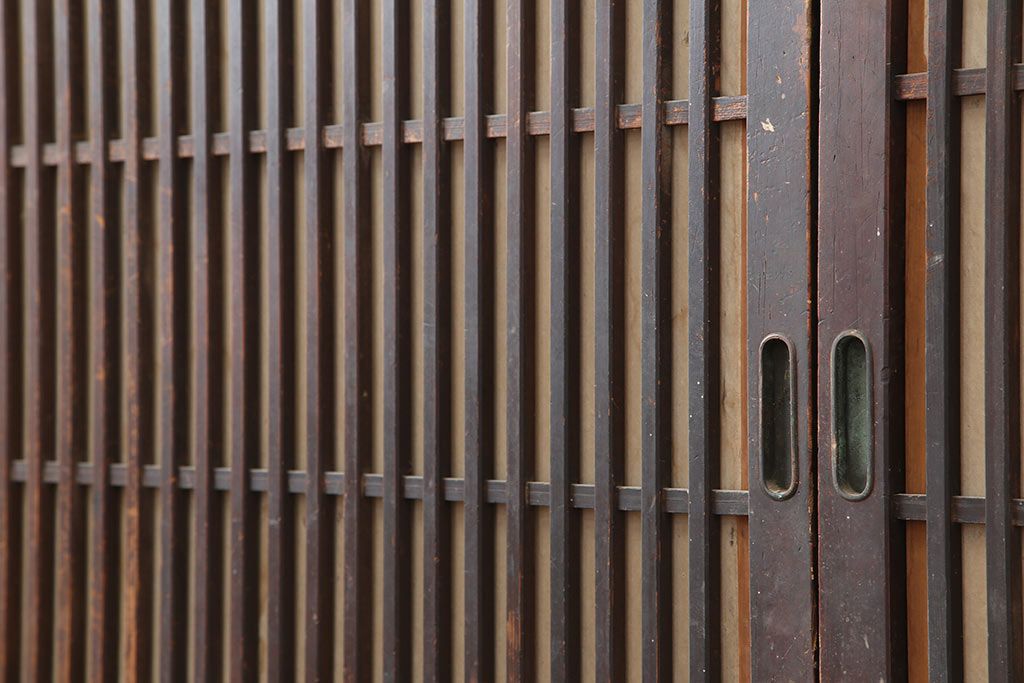 ラフジュ工房> ドア・建具> 格子戸 > アンティーク建具 大正昭和初期 裏障子付き 味わい深い木肌が魅力の格子帯戸4枚セット(引き戸)(R-043909)