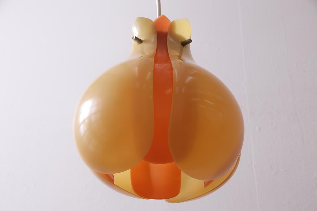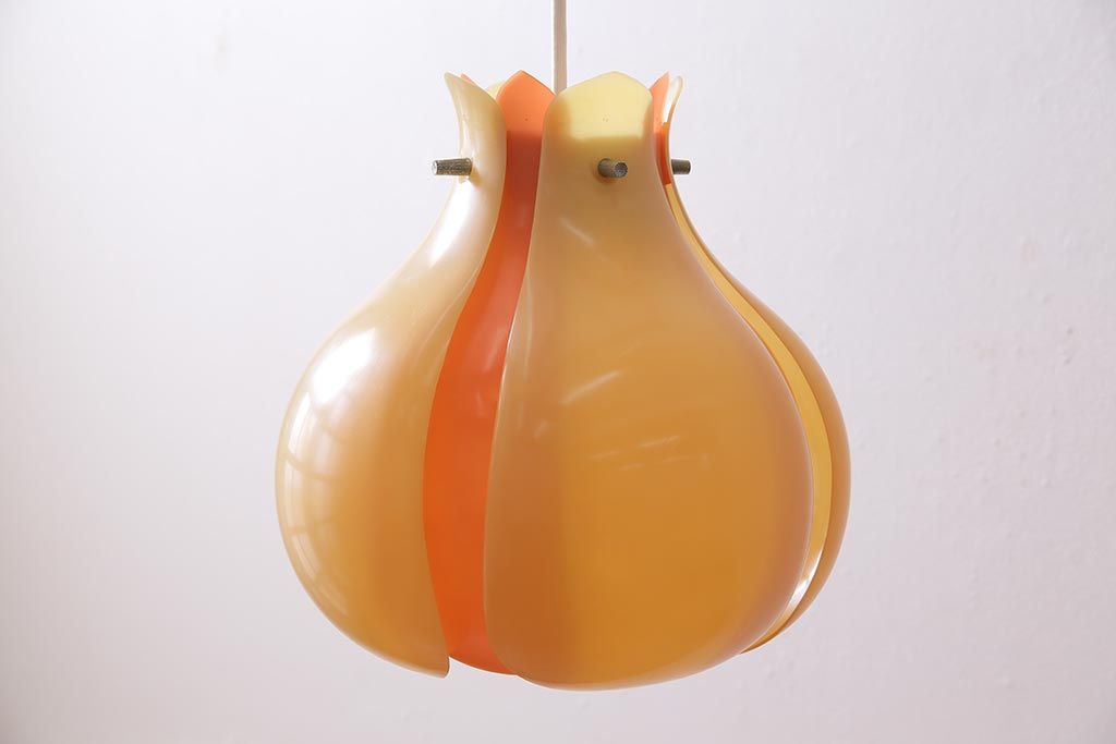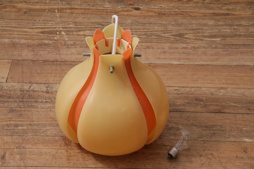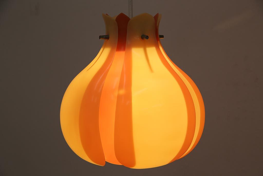 照明・ランプ> ペンダントライト > ビンテージ照明 和製ビンテージ 1970年頃 たまねぎのようなフォルムとポップなカラーが目を惹く天井照明(ペンダントライト)(R-043830)
