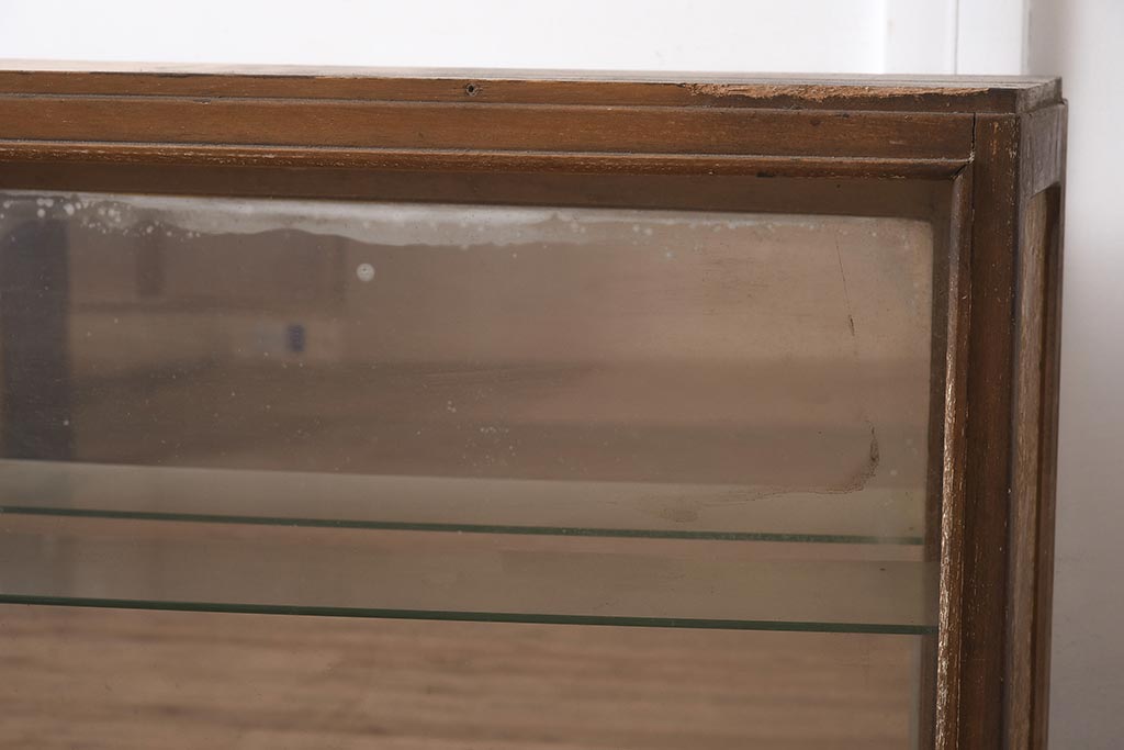 レトロ家具 昭和レトロ 昭和中期 珍しいデザインが目を惹く古い商店の陳列棚(ショーケース、ガラスケース、キャビネット)(R-043567)