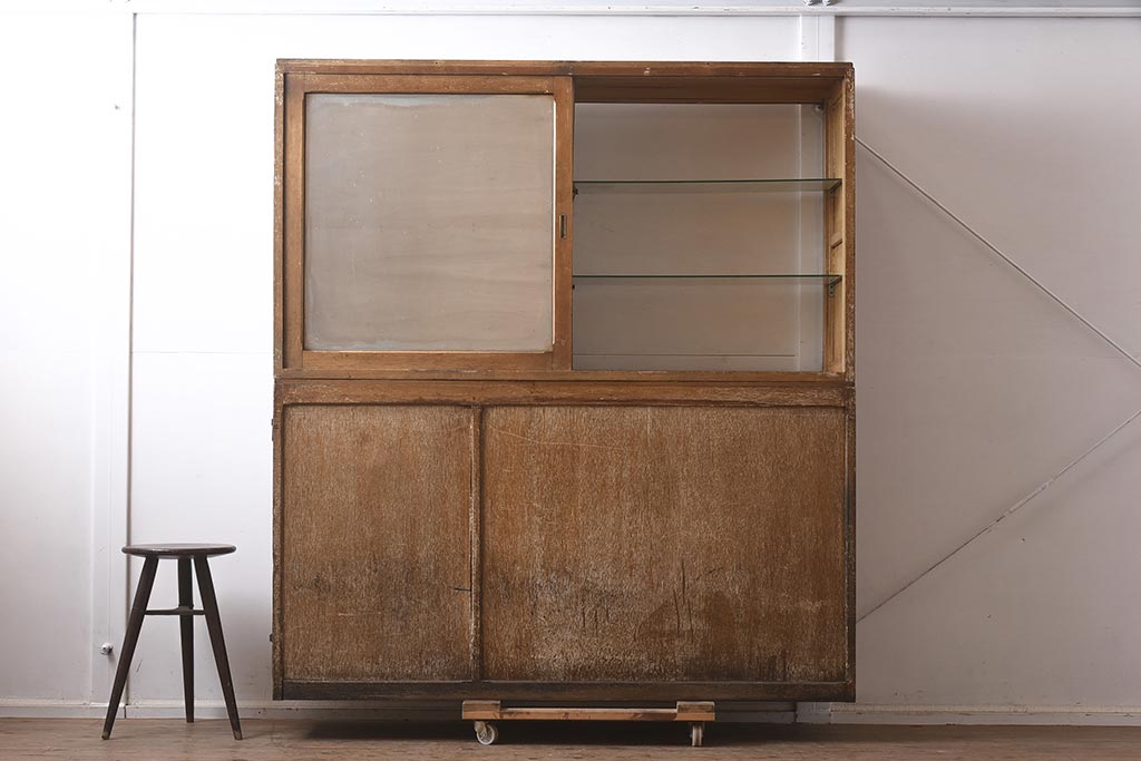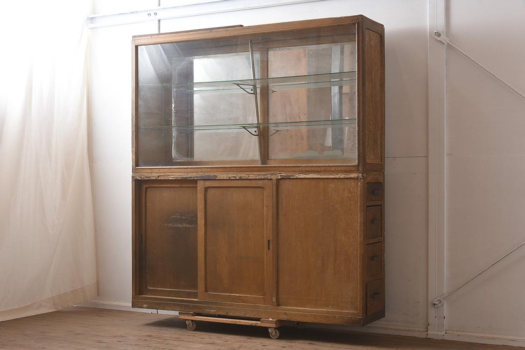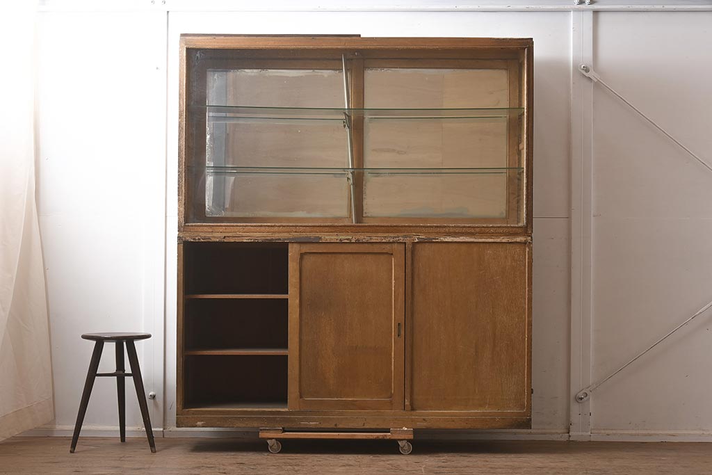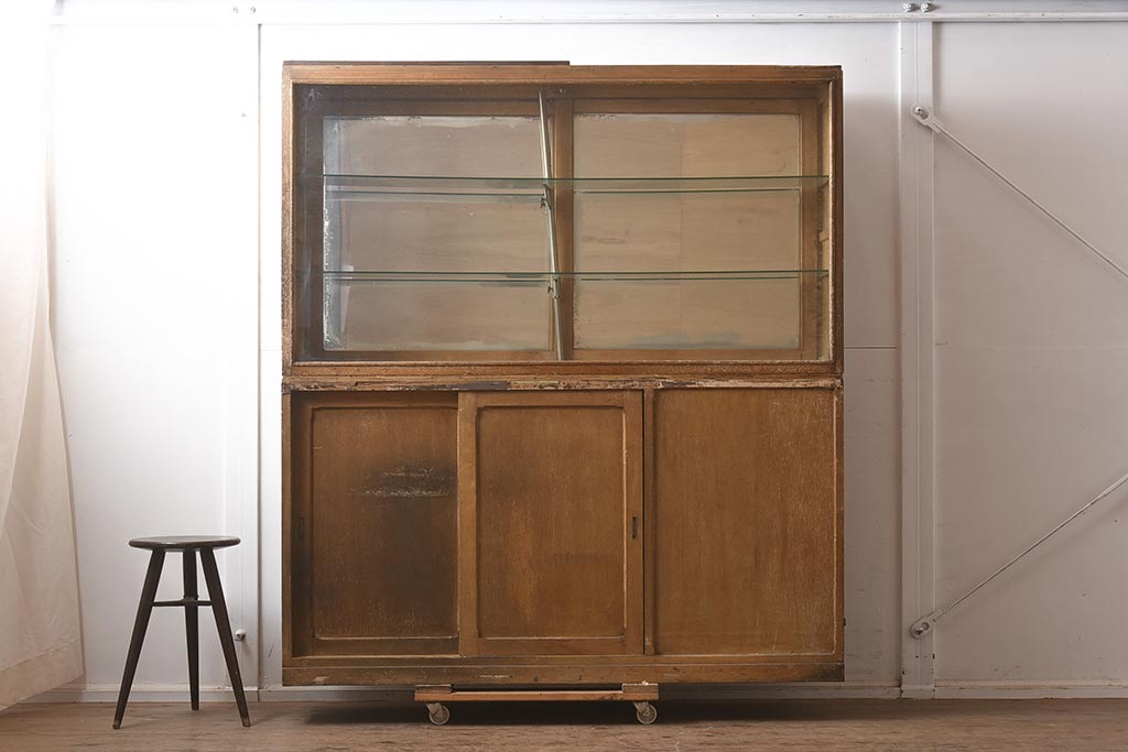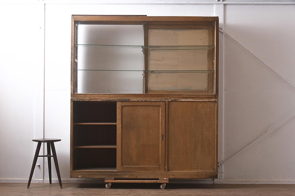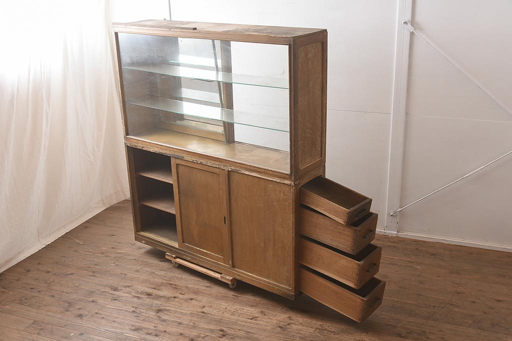 ラフジュ工房> 店舗什器 > レトロ家具 昭和レトロ 昭和中期 珍しいデザインが目を惹く古い商店の陳列棚(ショーケース、ガラスケース、キャビネット)(R-043567)