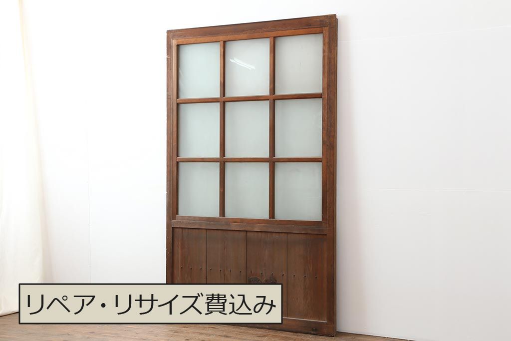 アンティーク建具 和製アンティーク 昭和初期 ヒノキ材 すりガラス 素朴な風合いが魅力の蔵戸(引き戸、玄関戸)(R-043753)