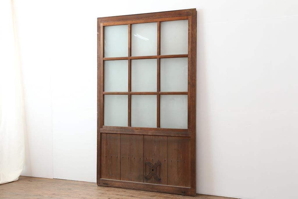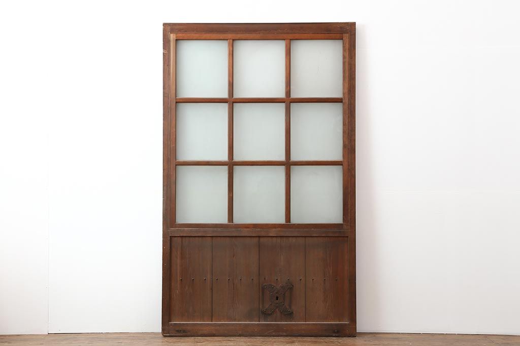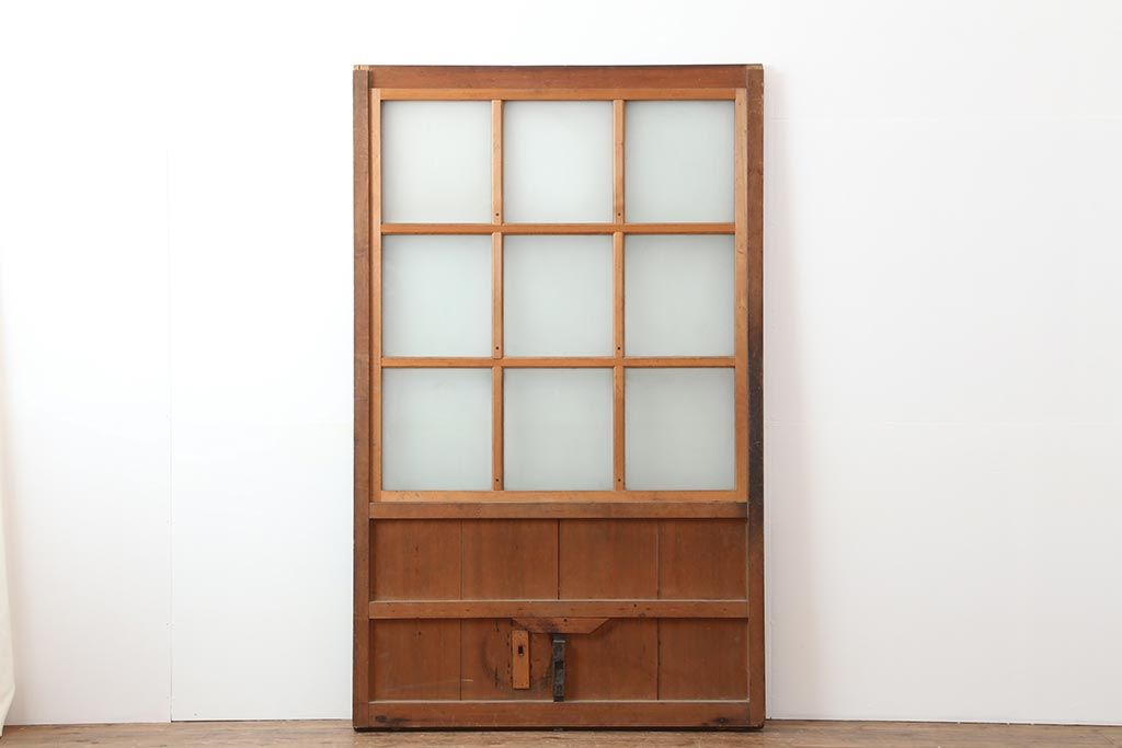 ドア・建具> ガラス戸 > アンティーク建具 和製アンティーク 昭和初期 ヒノキ材 すりガラス 素朴な風合いが魅力の蔵戸(引き戸、玄関戸)(R-043753)