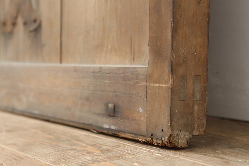 アンティーク建具 和製アンティーク 昭和初期 ヒノキ材 すりガラス 素朴な風合いが魅力の蔵戸(引き戸、玄関戸)(R-043753)です。