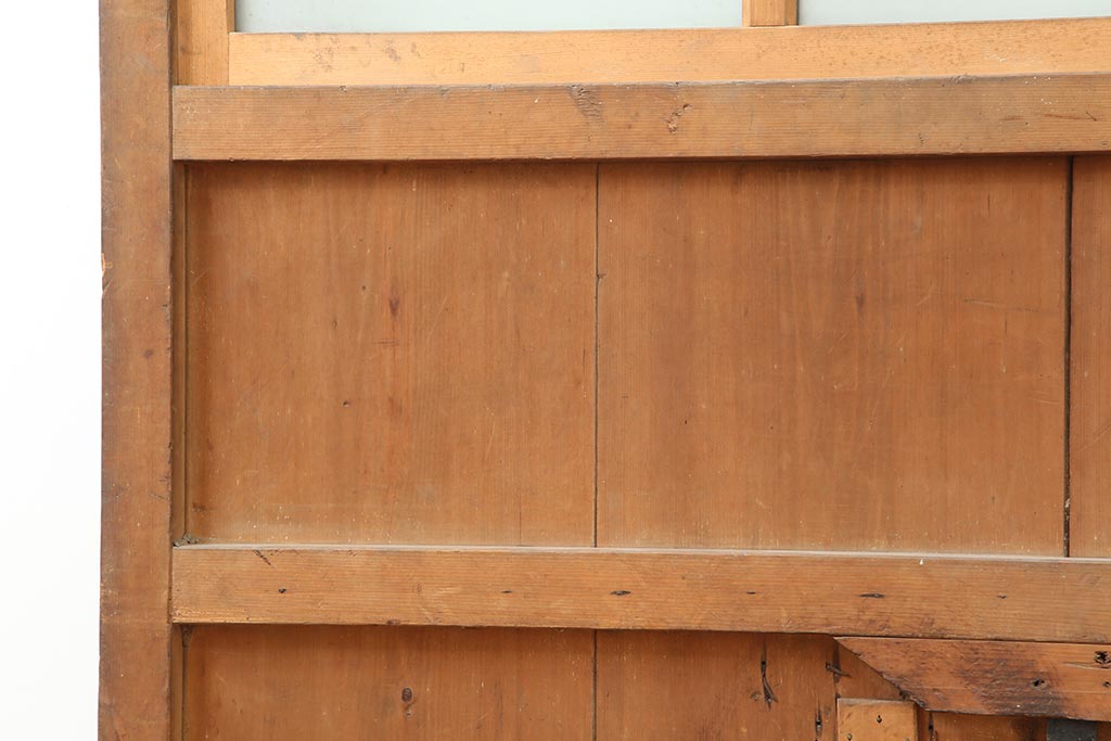 ドア・建具> 蔵戸 > アンティーク建具 和製アンティーク 昭和初期 ヒノキ材 すりガラス 素朴な風合いが魅力の蔵戸(引き戸、玄関戸)(R-043753)