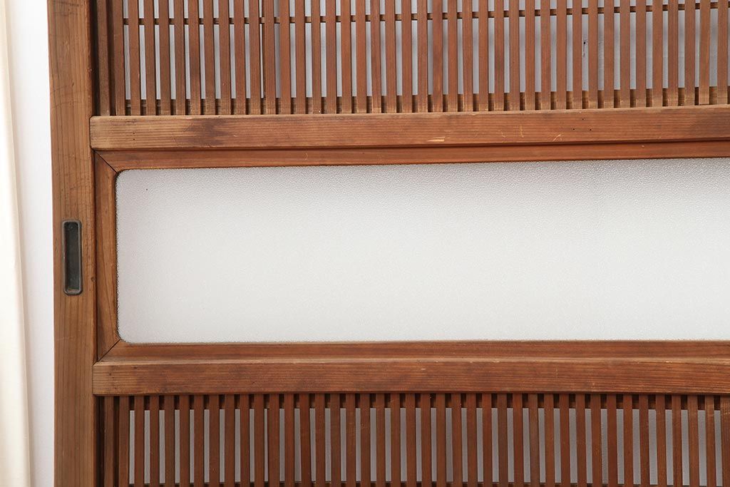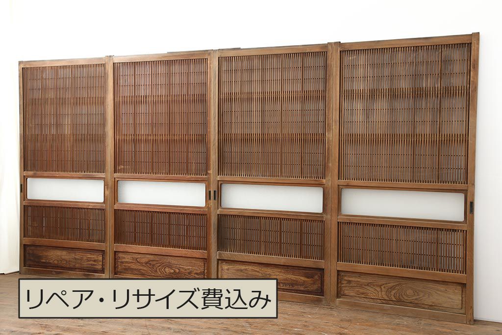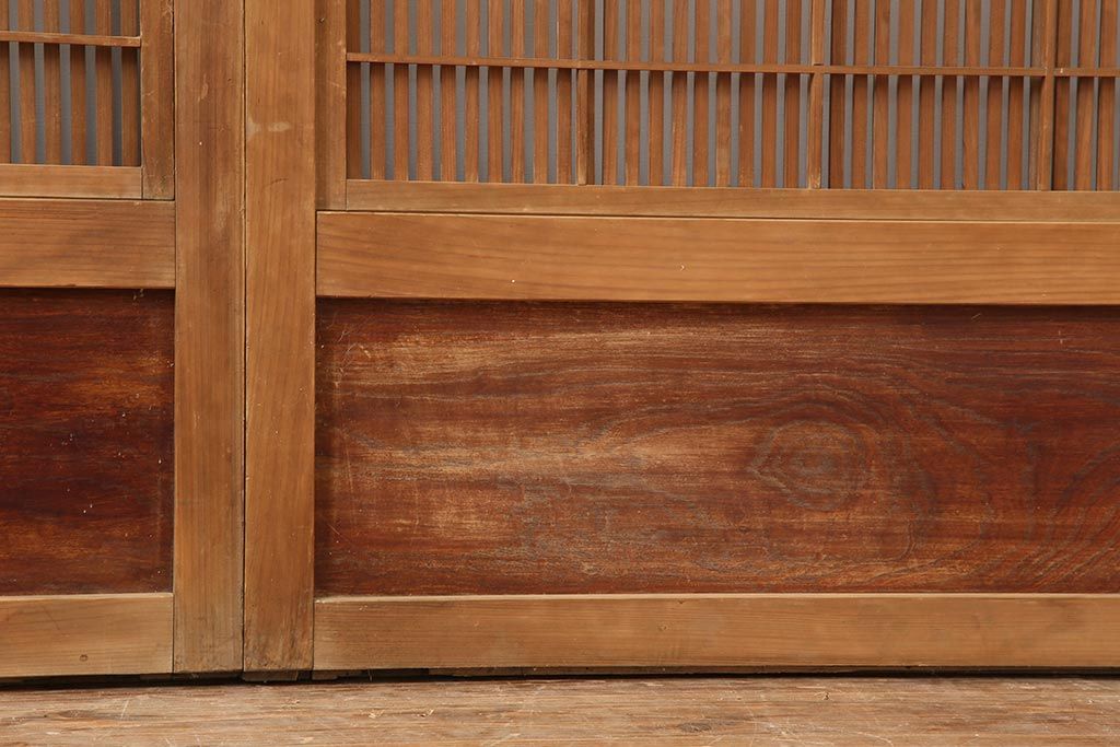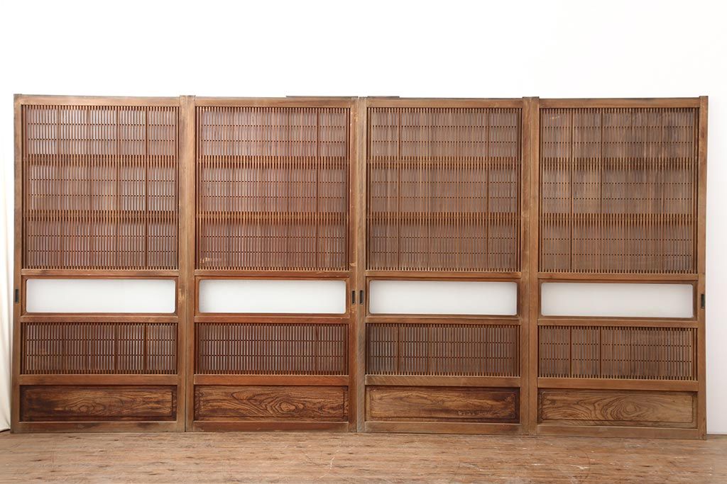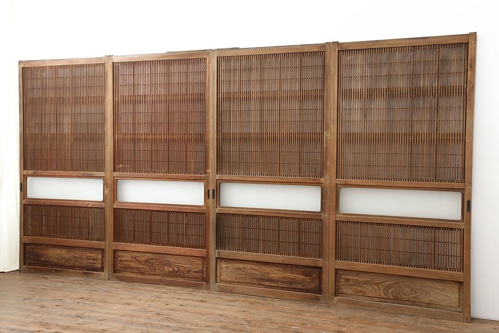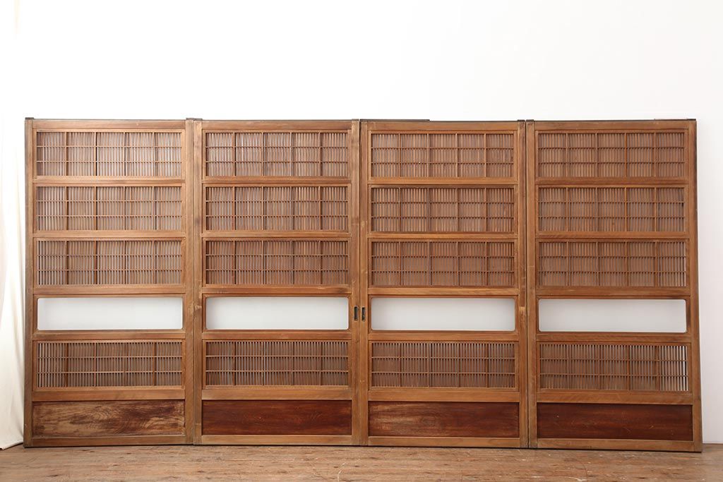 アンティーク建具 腰板ケヤキ材 裏障子付き 格子戸4枚セット(引き戸、建具)(R-043803)
