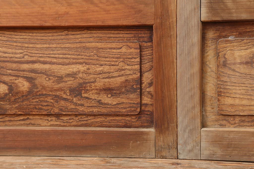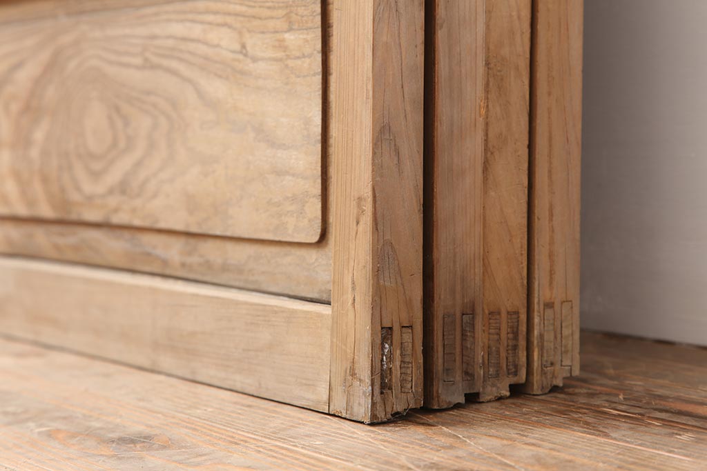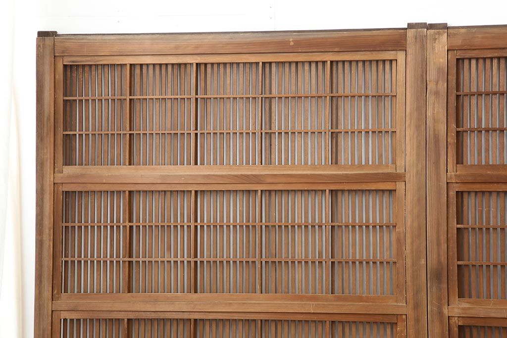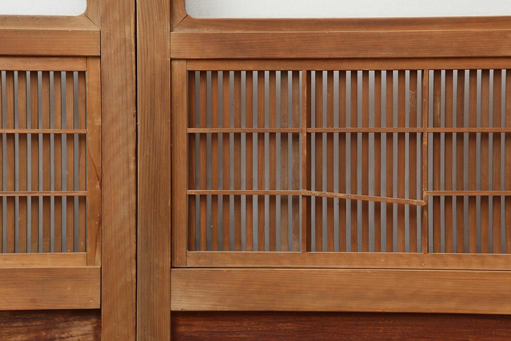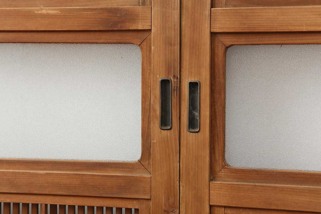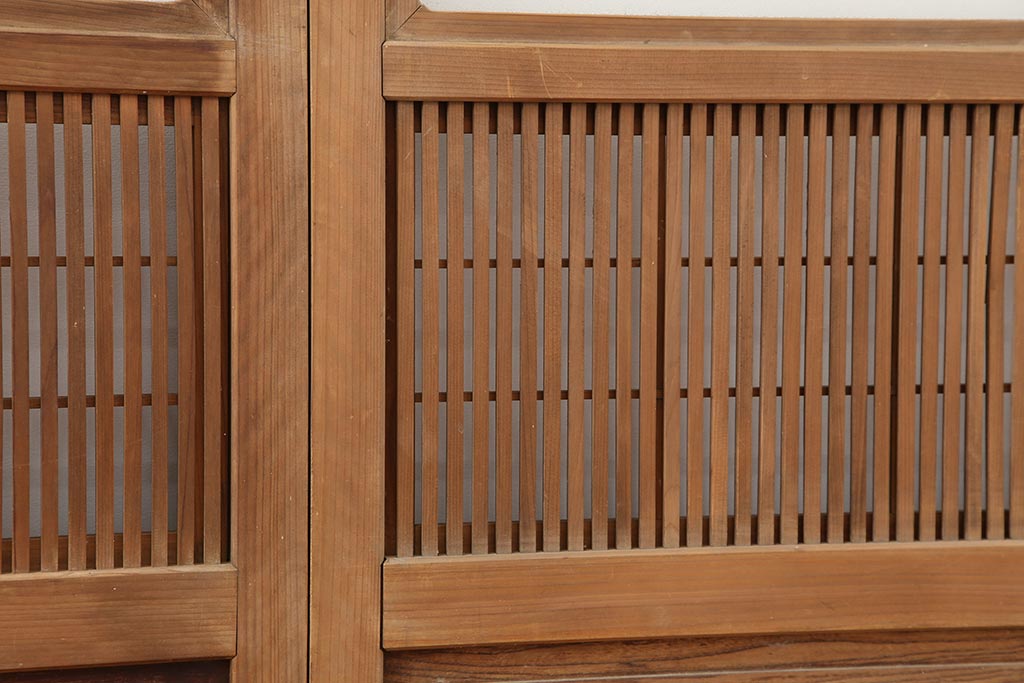 アンティーク建具 腰板ケヤキ材 裏障子付き 格子戸4枚セット(引き戸、建具)(R-043803)