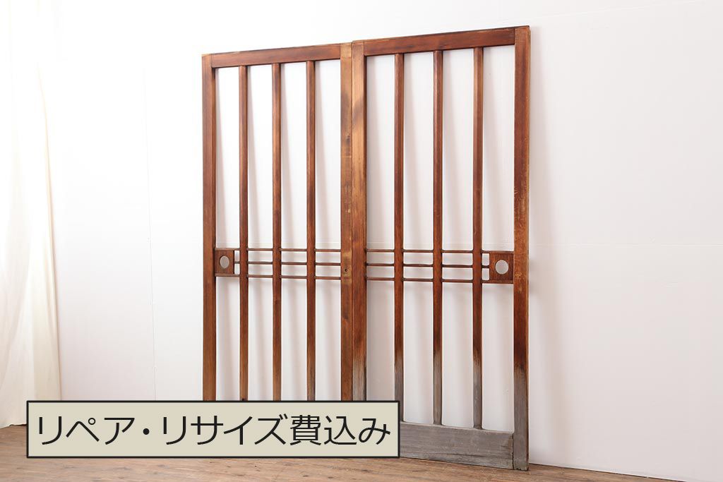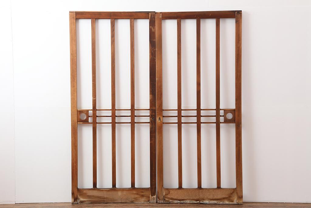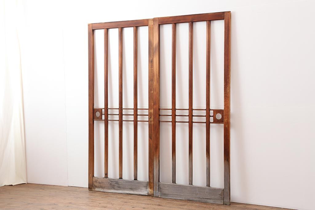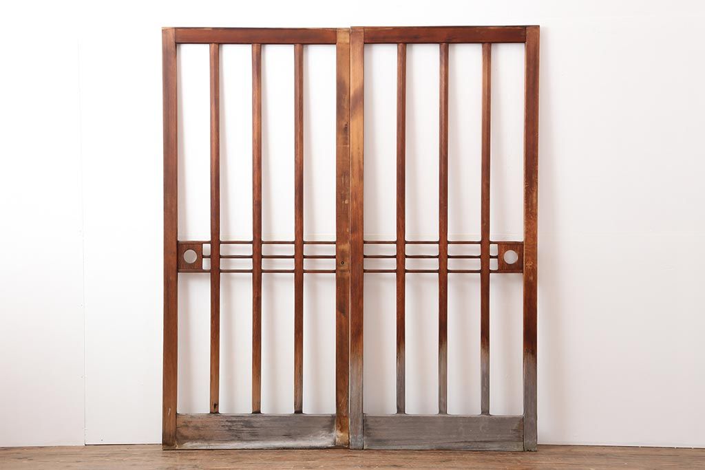 アンティーク建具 昭和レトロ ヒノキ材 和モダンスタイルにもおすすめな引き戸2枚セット(建具)(R-043809)