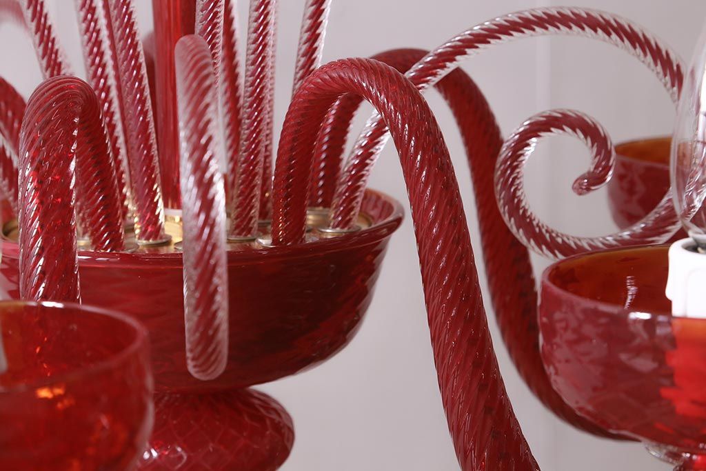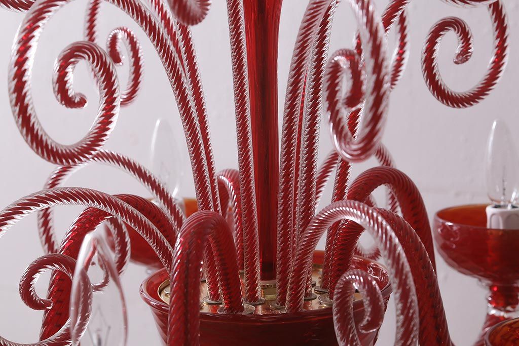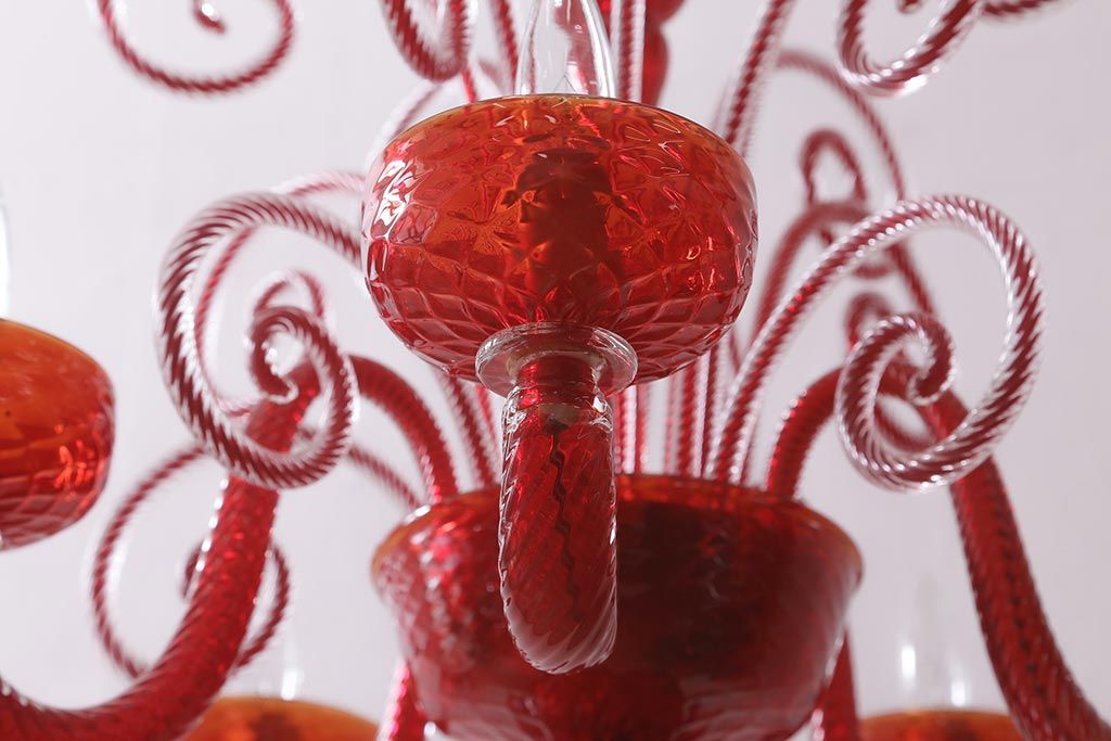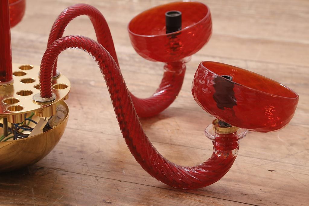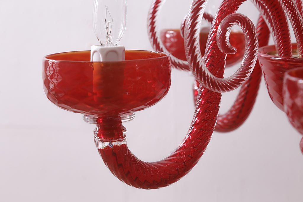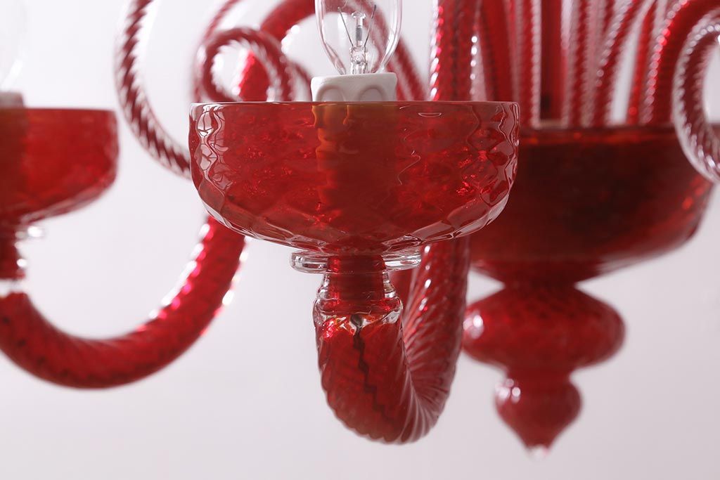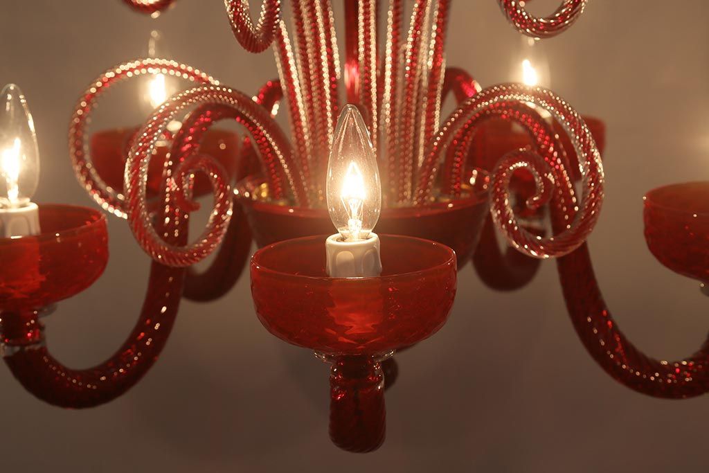 ラフジュ工房> 照明・ランプ> シャンデリア > 中古 SIGNORETTO LAMPADARI ムラノガラス(ベネチア) レッド インパクトのある5灯シャンデリア(天井照明)(R-043443)