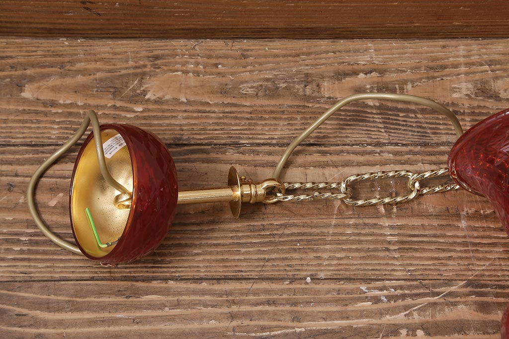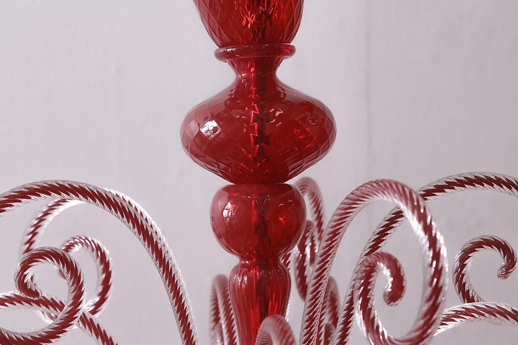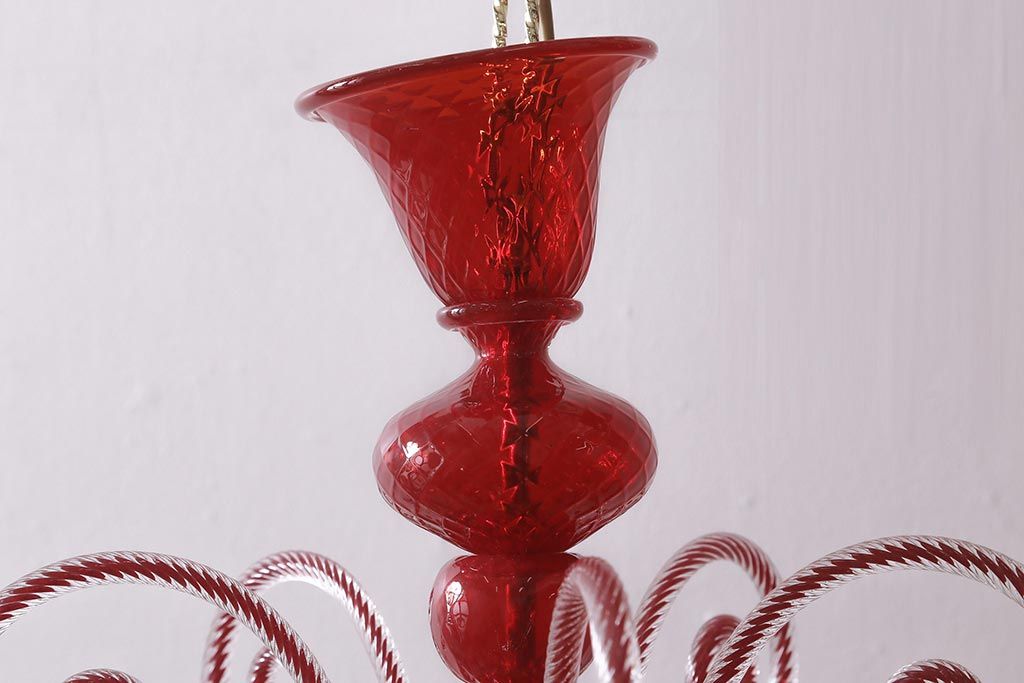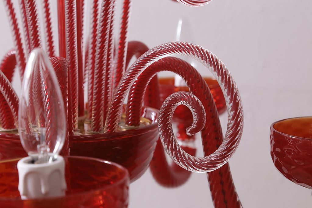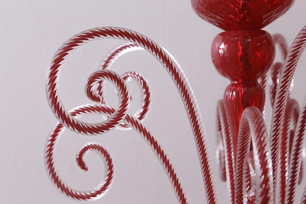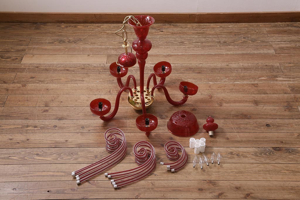 ラフジュ工房> 照明・ランプ> シャンデリア > 中古 SIGNORETTO LAMPADARI ムラノガラス(ベネチア) レッド インパクトのある5灯シャンデリア(天井照明)(R-043443)