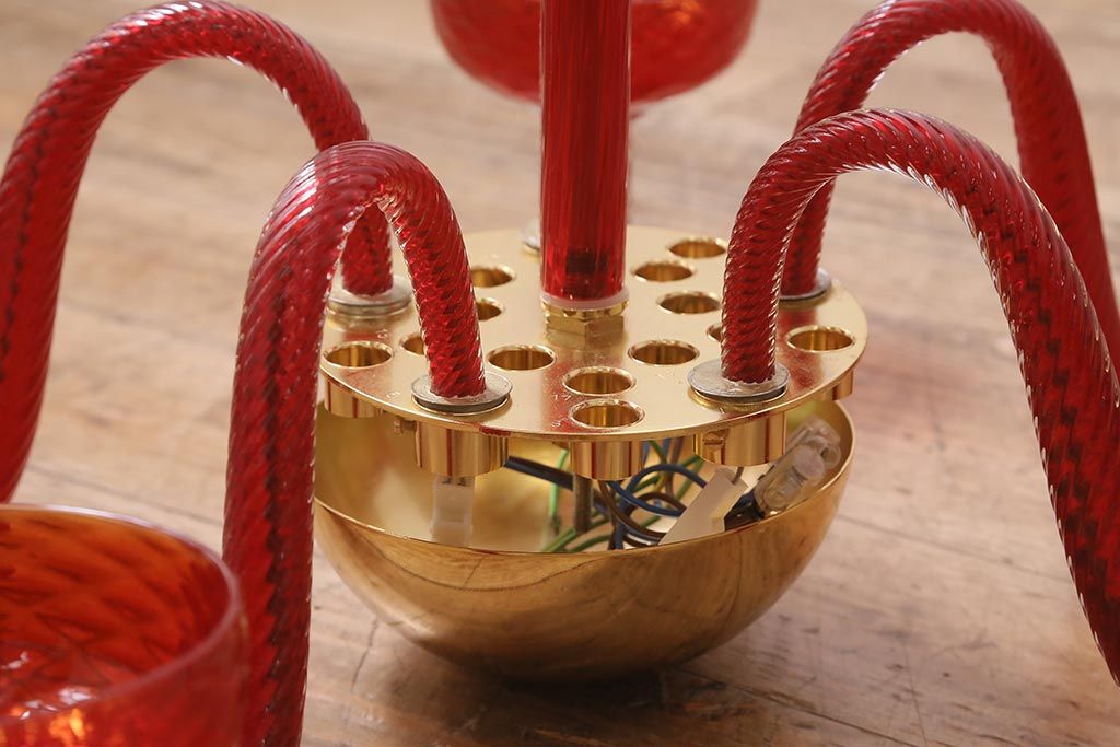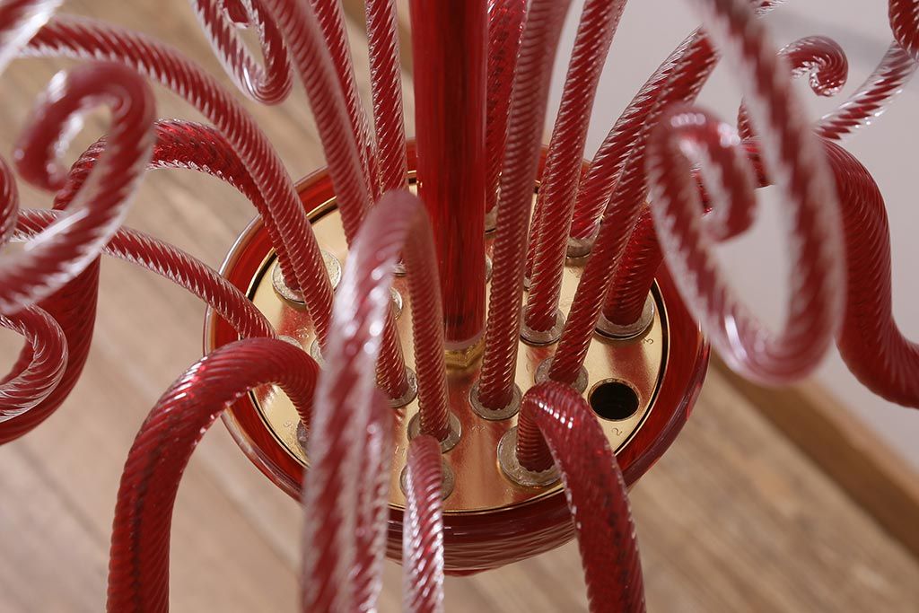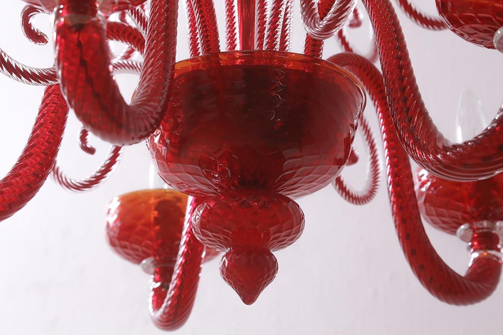 ラフジュ工房> 店長おすすめの逸品 > 中古 SIGNORETTO LAMPADARI ムラノガラス(ベネチア) レッド インパクトのある5灯シャンデリア(天井照明)(R-043443)