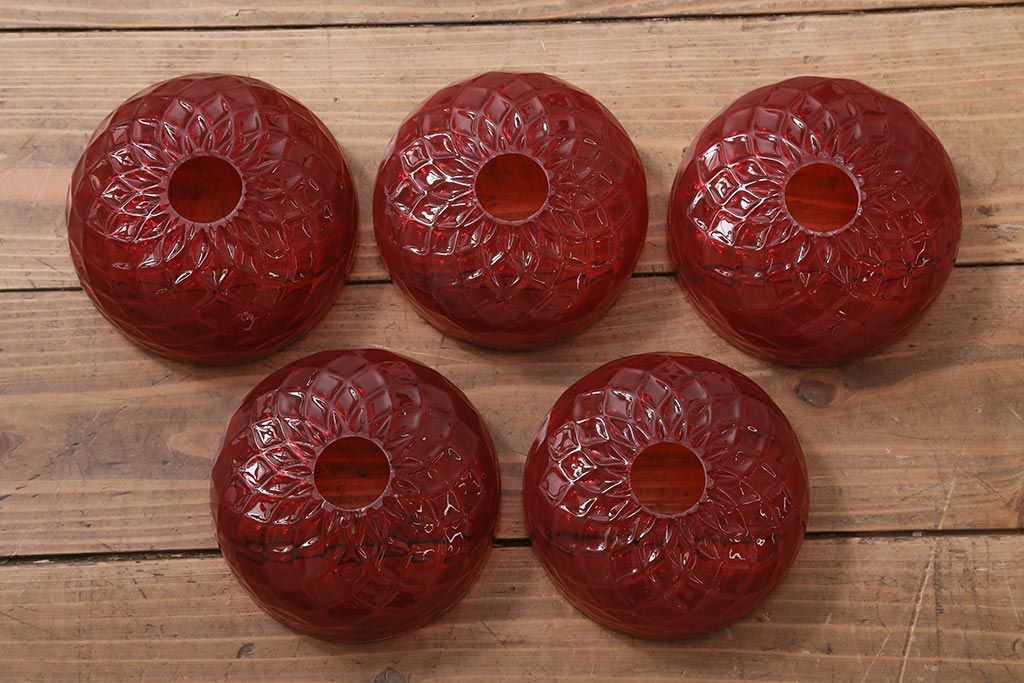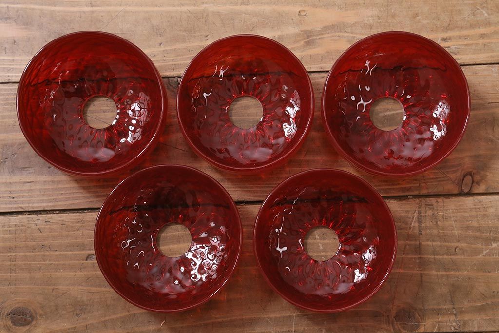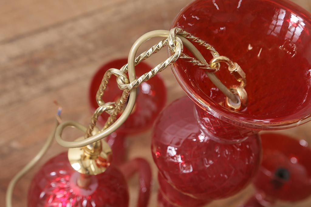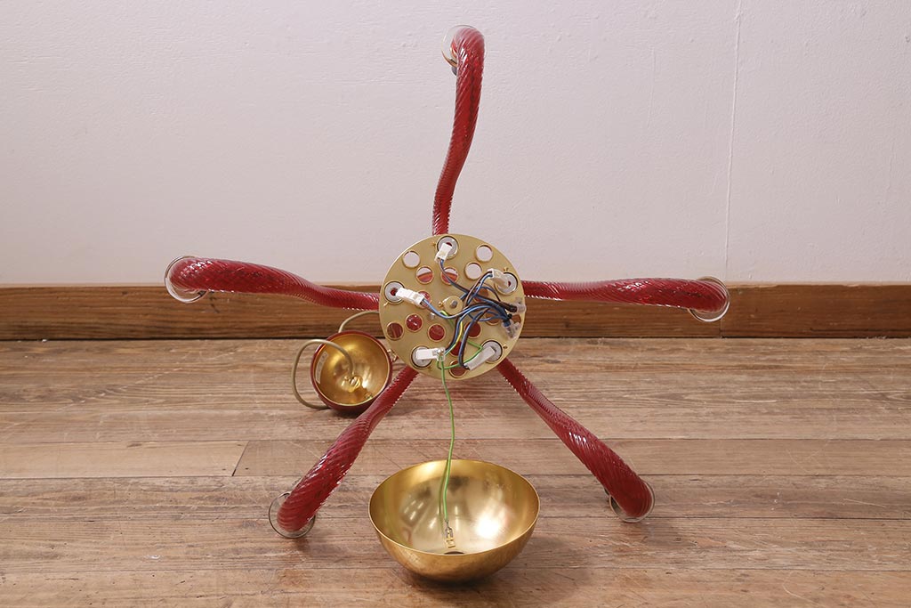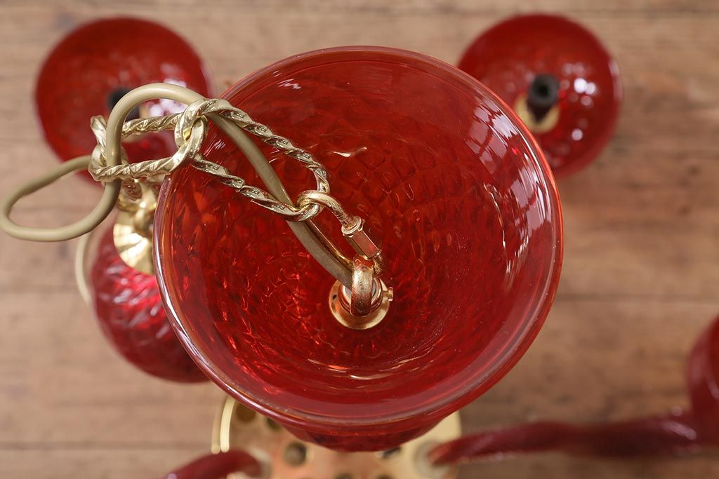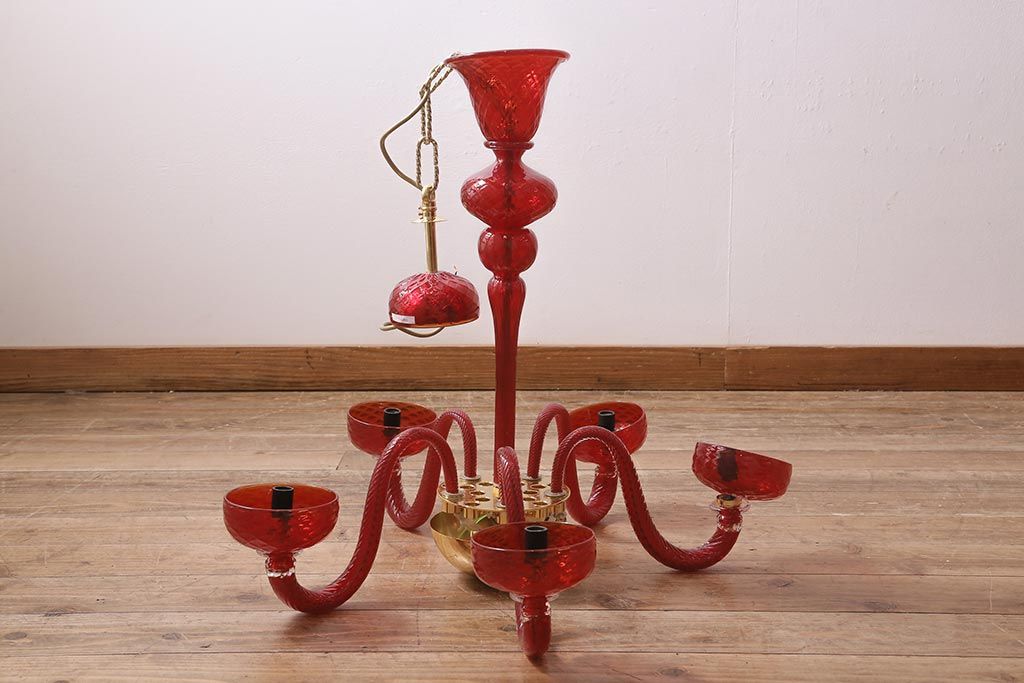 中古 SIGNORETTO LAMPADARI ムラノガラス(ベネチア) レッド インパクトのある5灯シャンデリア(天井照明)(R-043443)