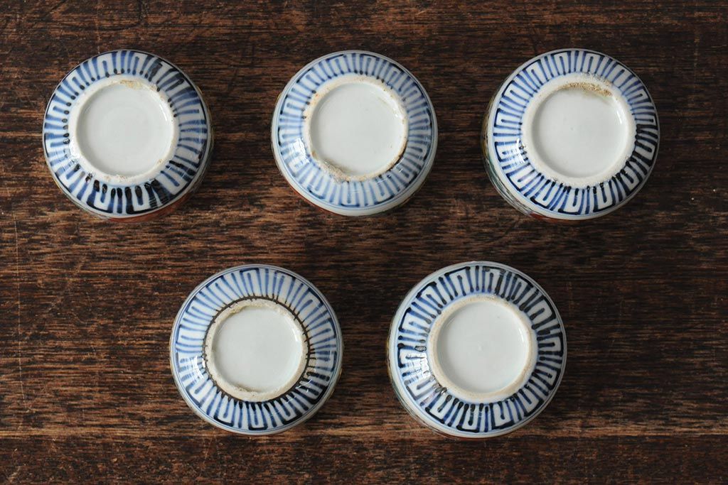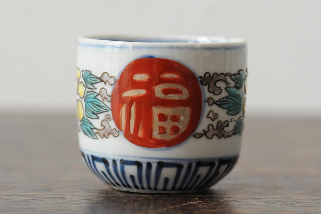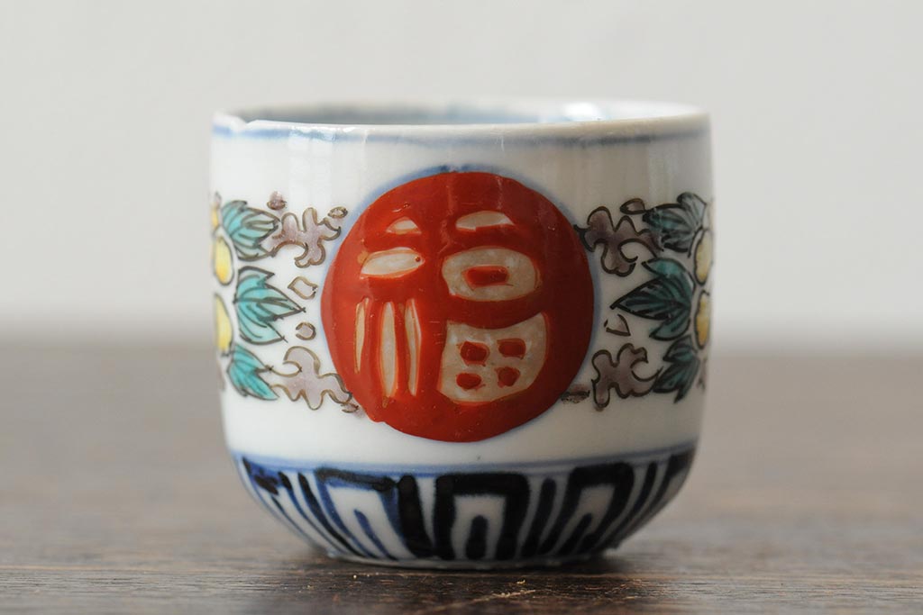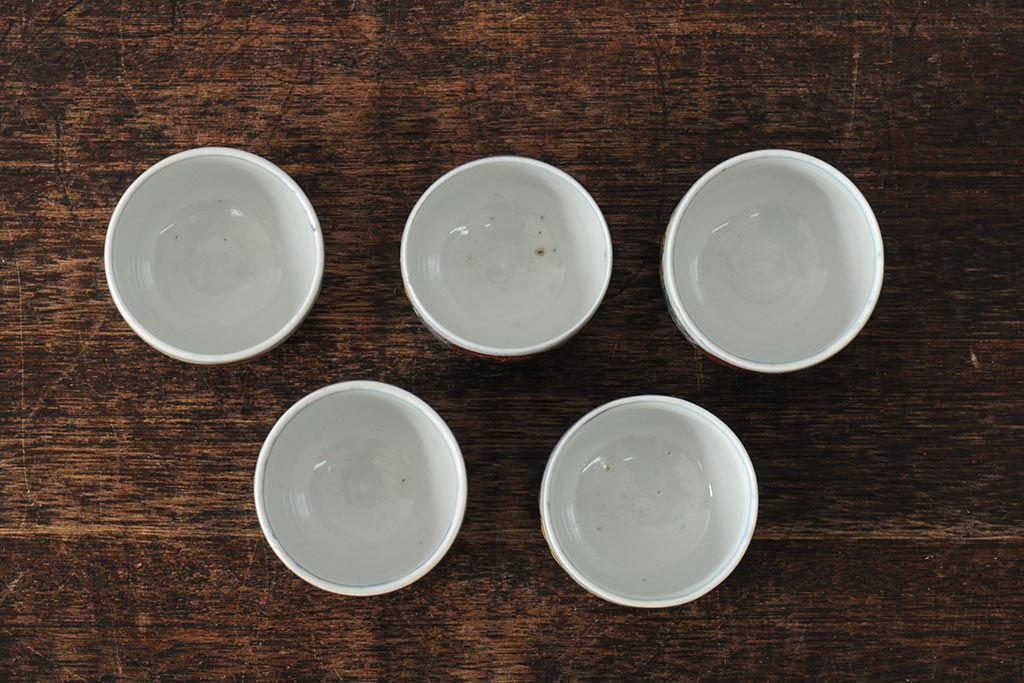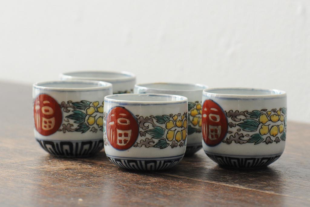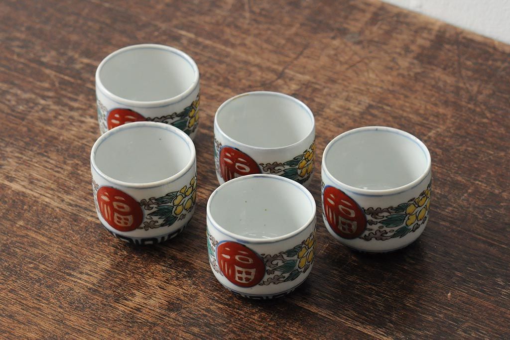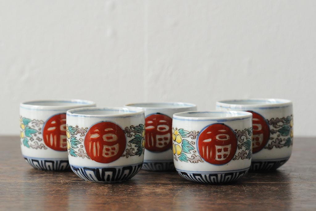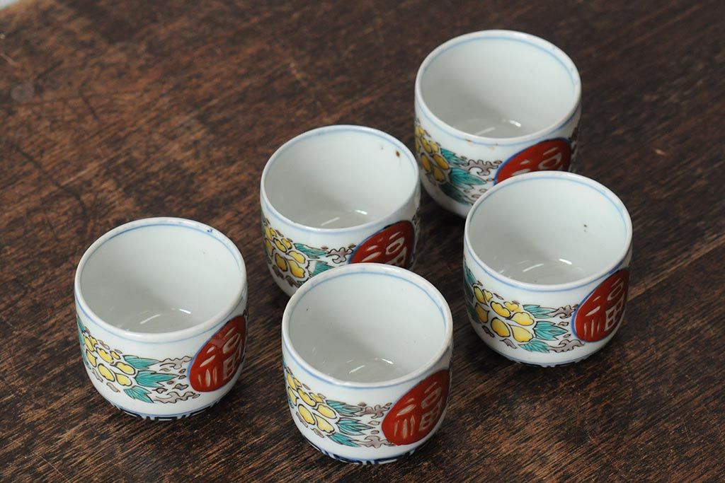 ラフジュ工房> 和食器・茶道具 > アンティーク雑貨 江戸期 古伊万里 丸福色絵猪口5個(酒器向付)(R-043512)